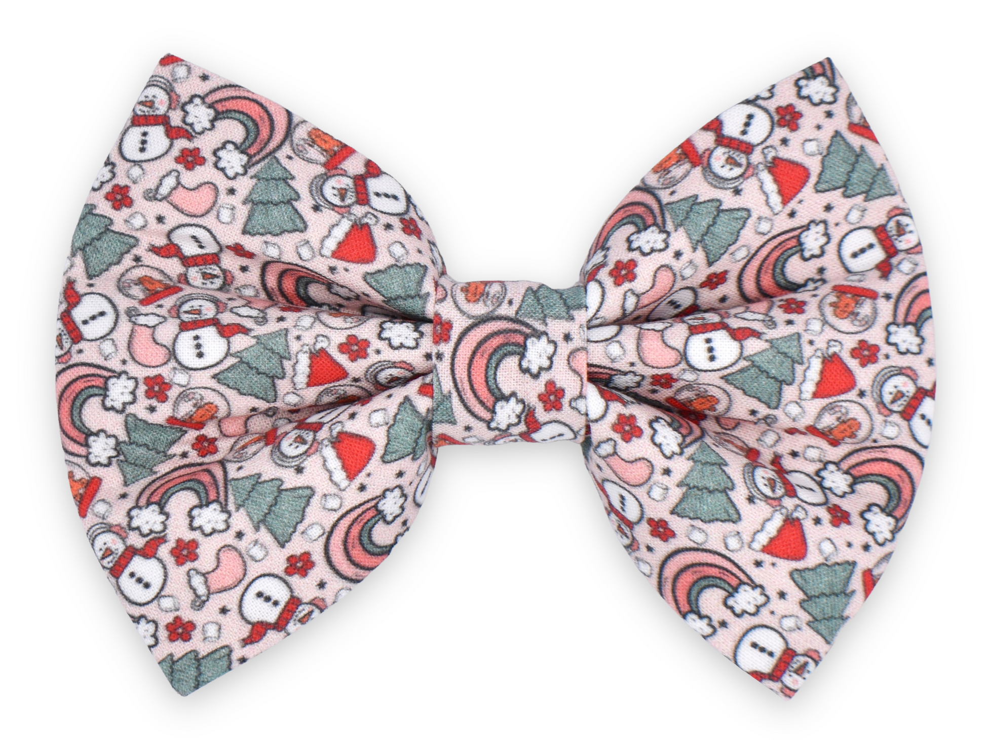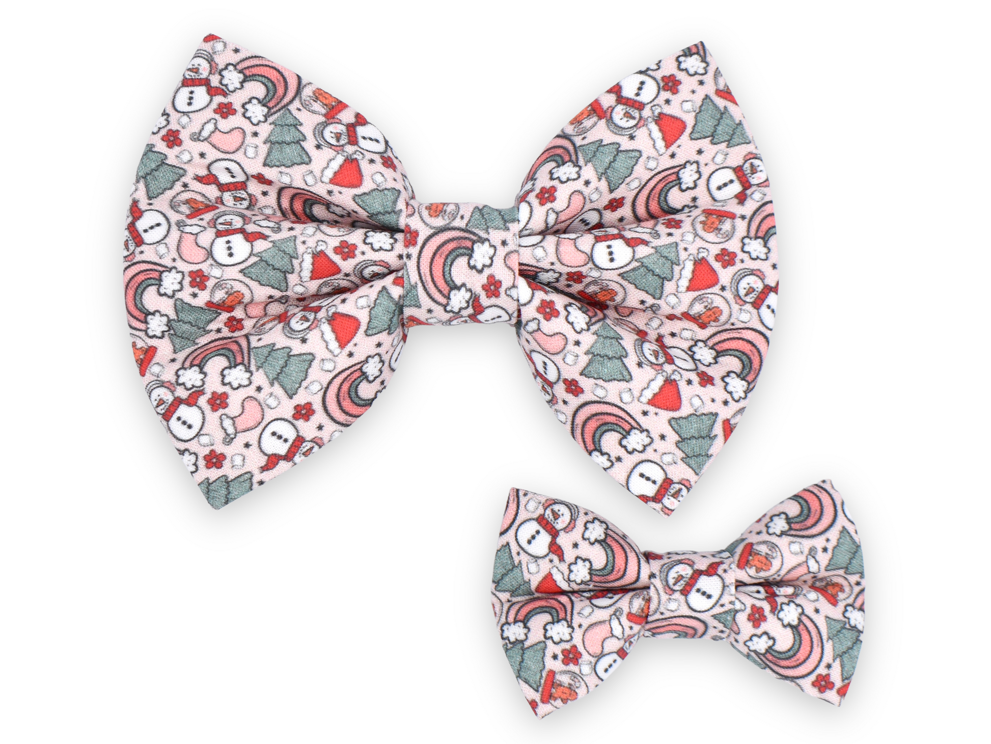 Our original style bow tie! This style features two elastic straps stitched to the backside of the bow tie for your pet’s collar to slide through. The elastic straps are triple-stitched to the bow tie for extra security. This style requires a collar for wear.