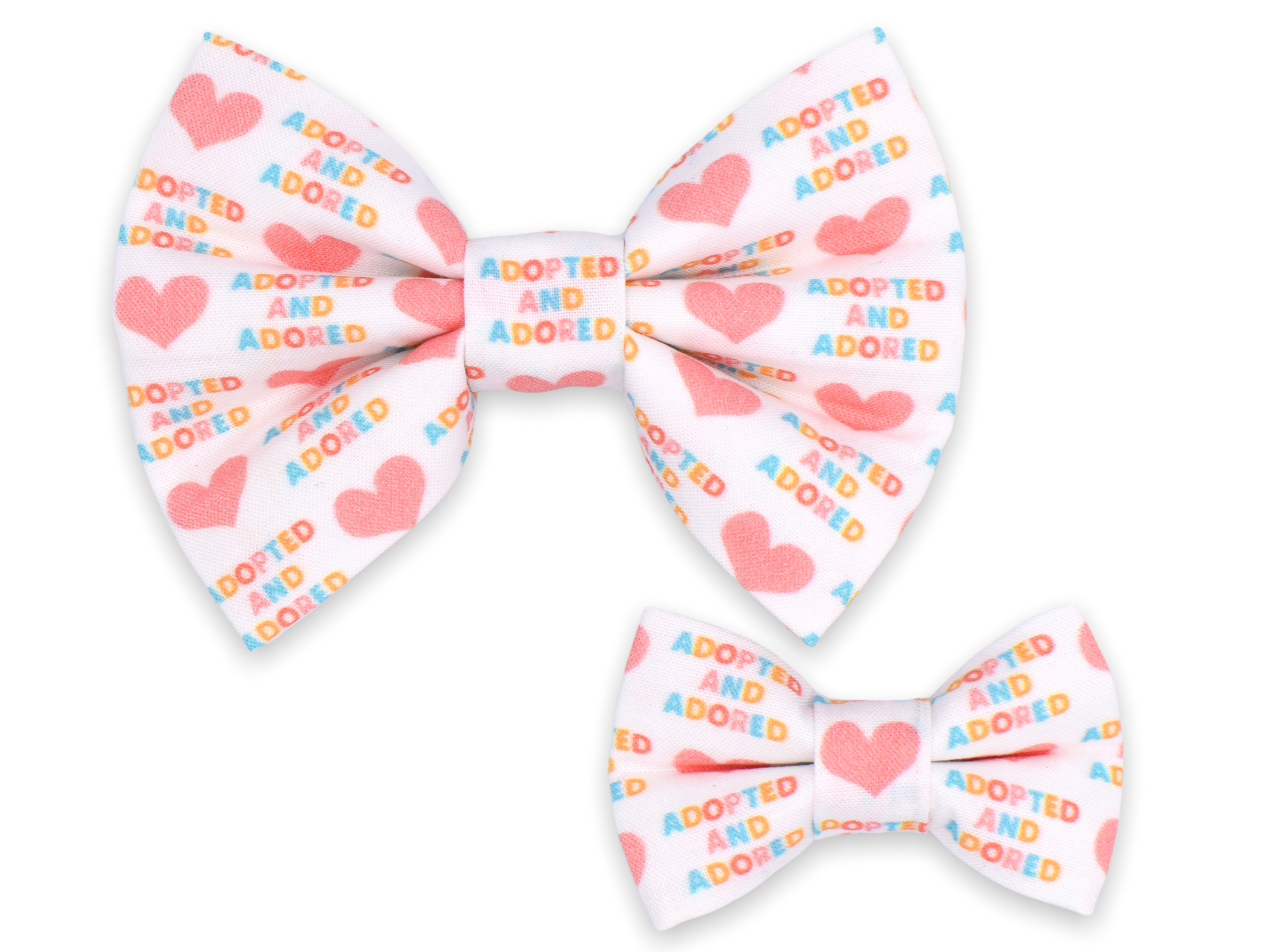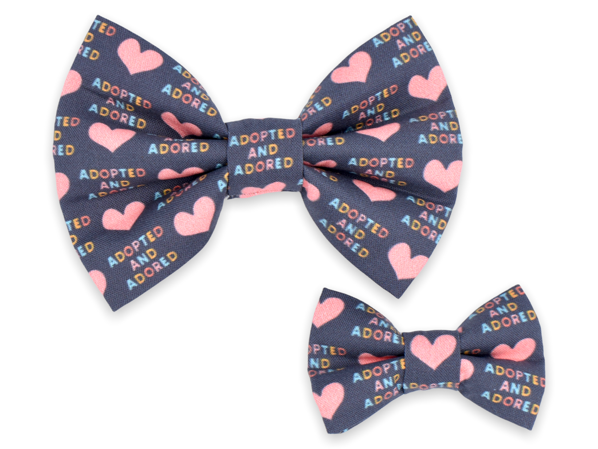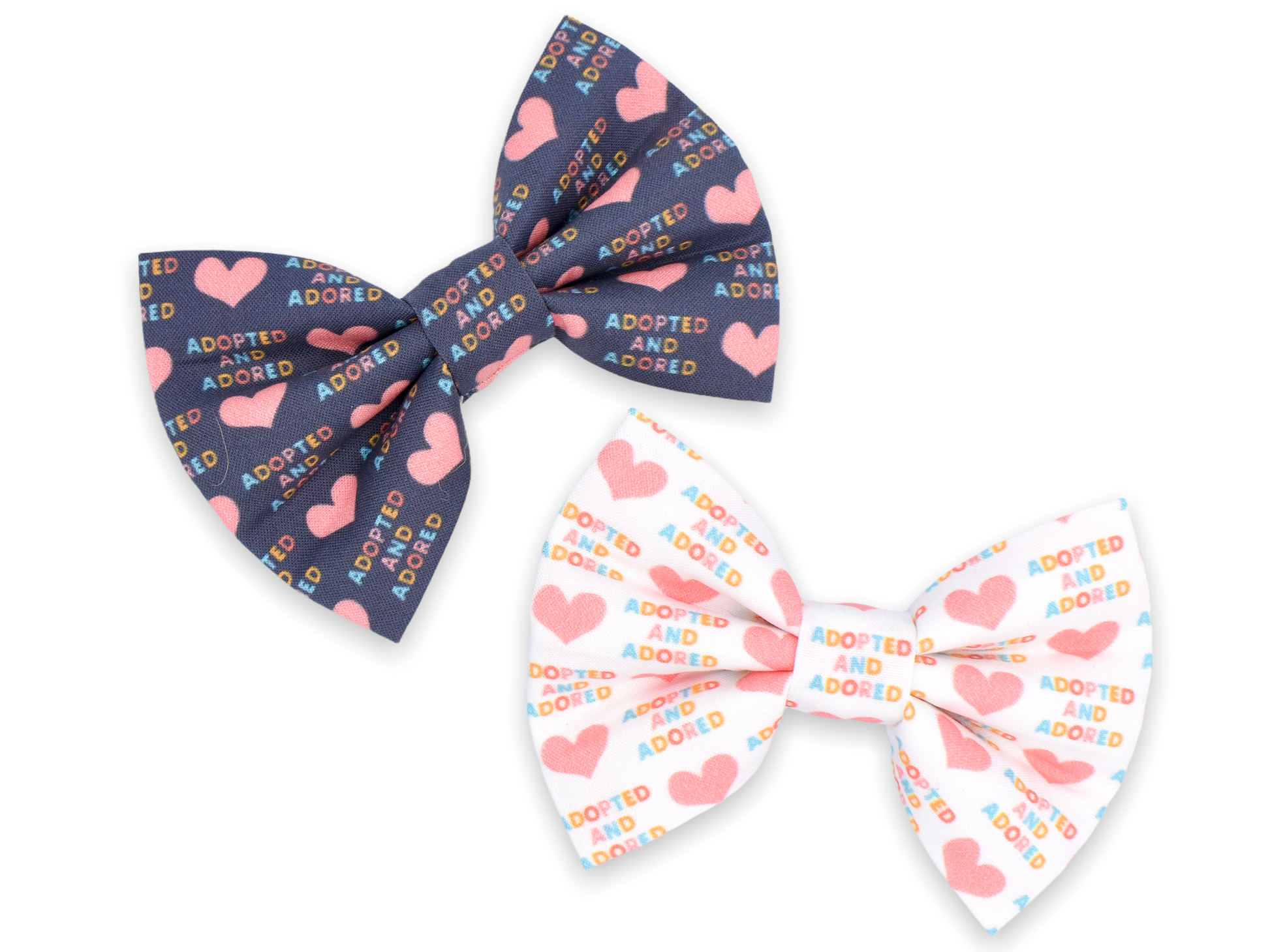 Our original style bow tie! This style features two elastic straps stitched to the backside of the bow tie for your pet’s collar to slide through. The elastic straps are triple-stitched to the bow tie for extra security. This style requires a collar for wear.
