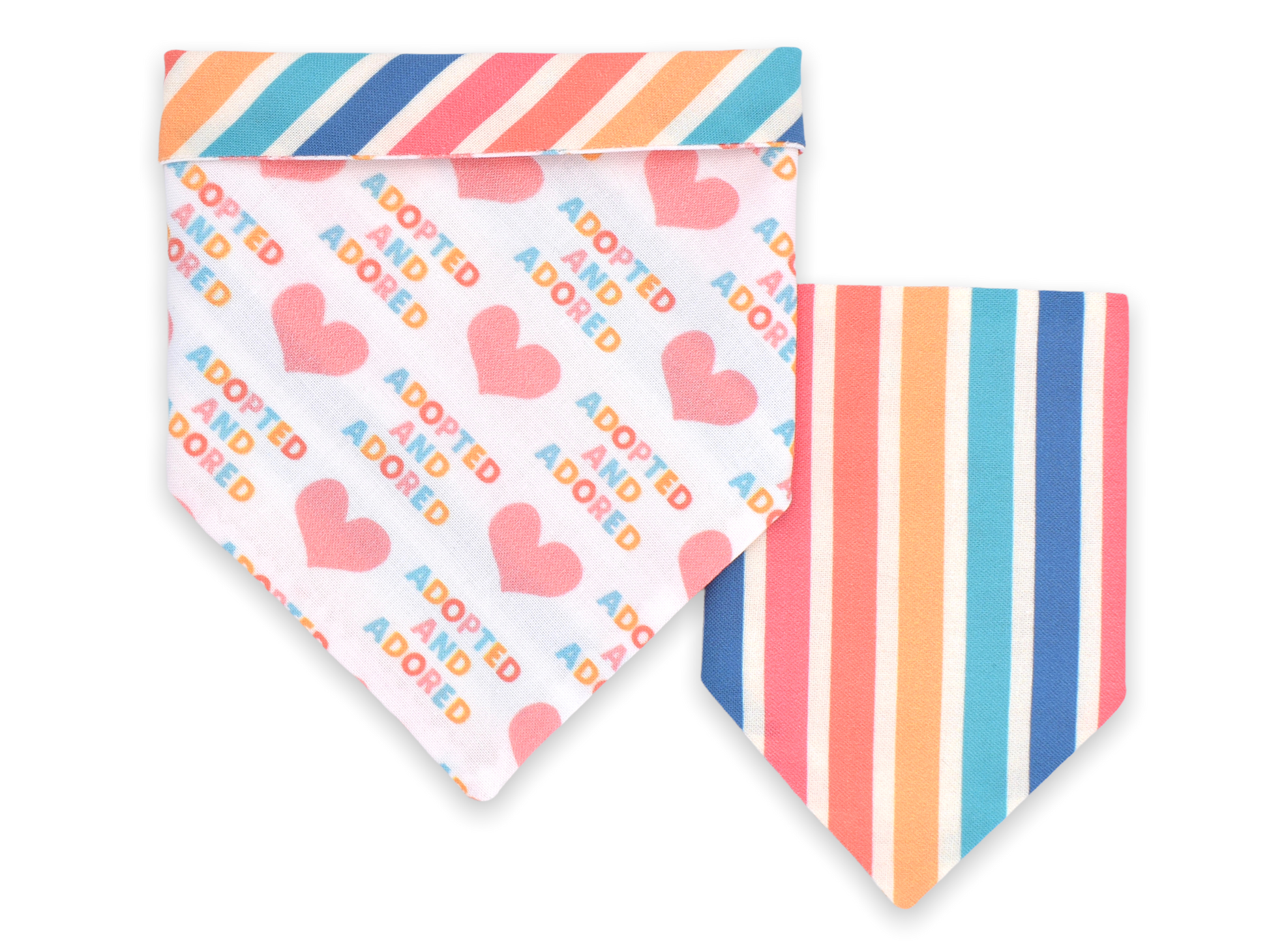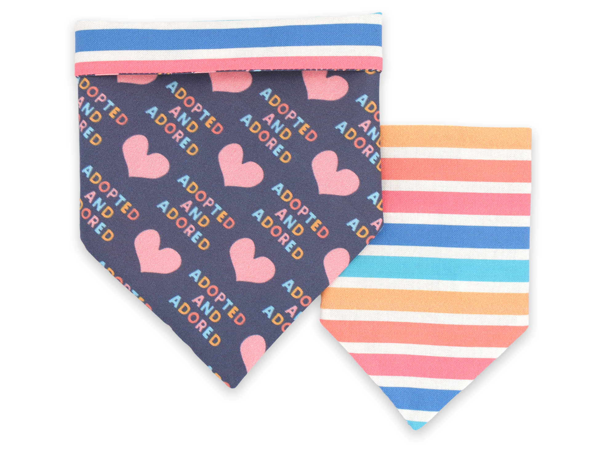 This style is dual-sided with a collar or theme-coordinated pattern on the reverse side, offering a two-for-one style option! This style can be worn by slipping your pet’s collar through the openings at the top of the bandana, and then clipping the collar around your pet’s neck. This style requires a collar for wear.