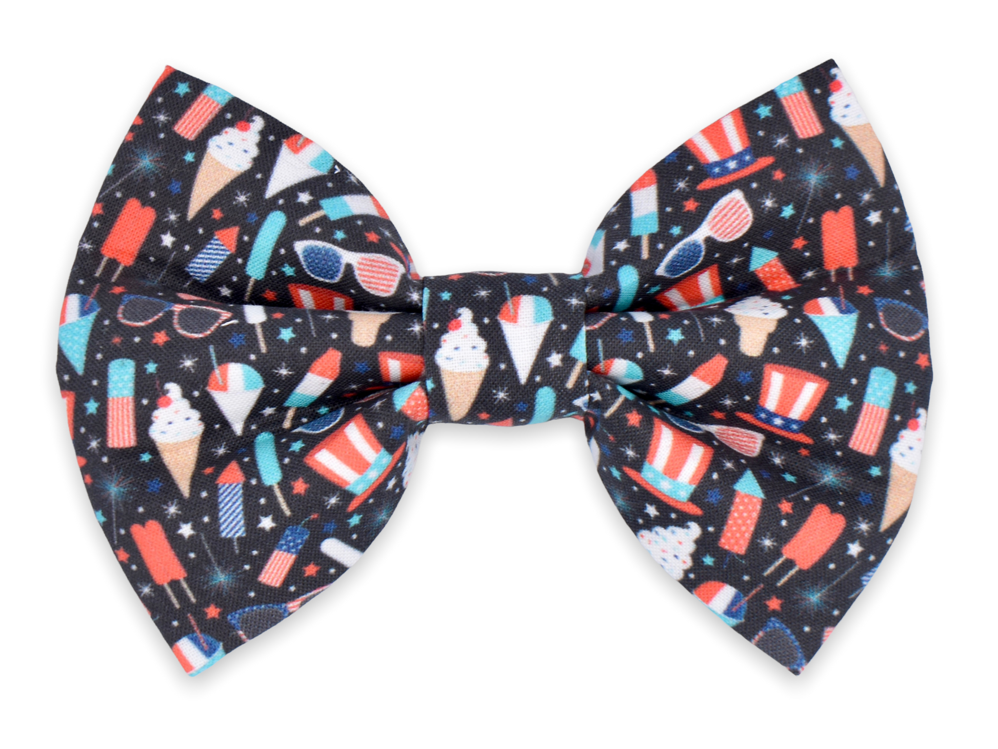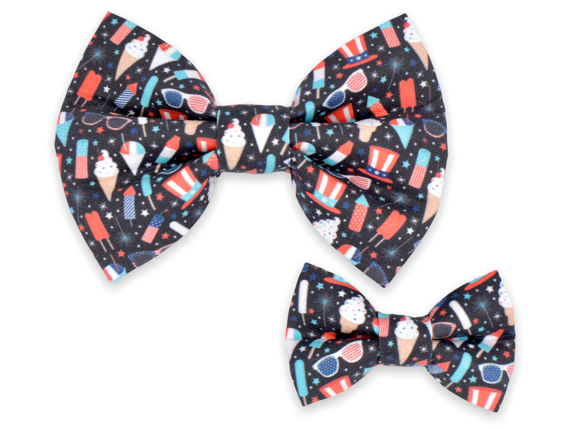 Our original style bow tie! This style features two elastic straps stitched to the backside of the bow tie for your pet’s collar to slide through. The elastic straps are triple-stitched to the bow tie for extra security. This style requires a collar for wear.