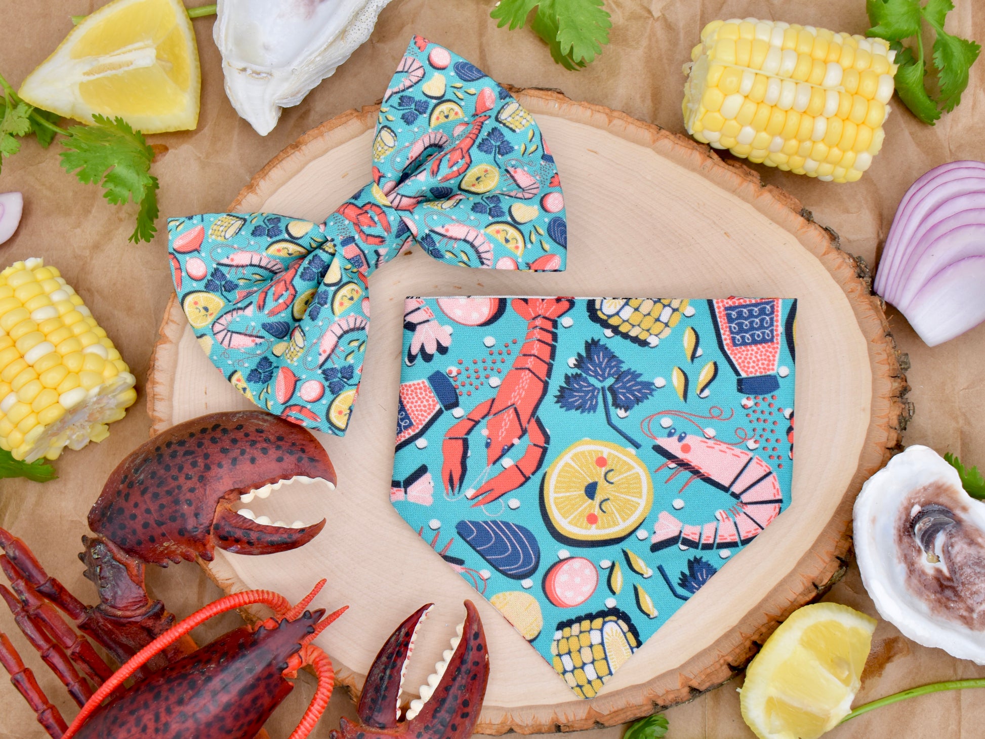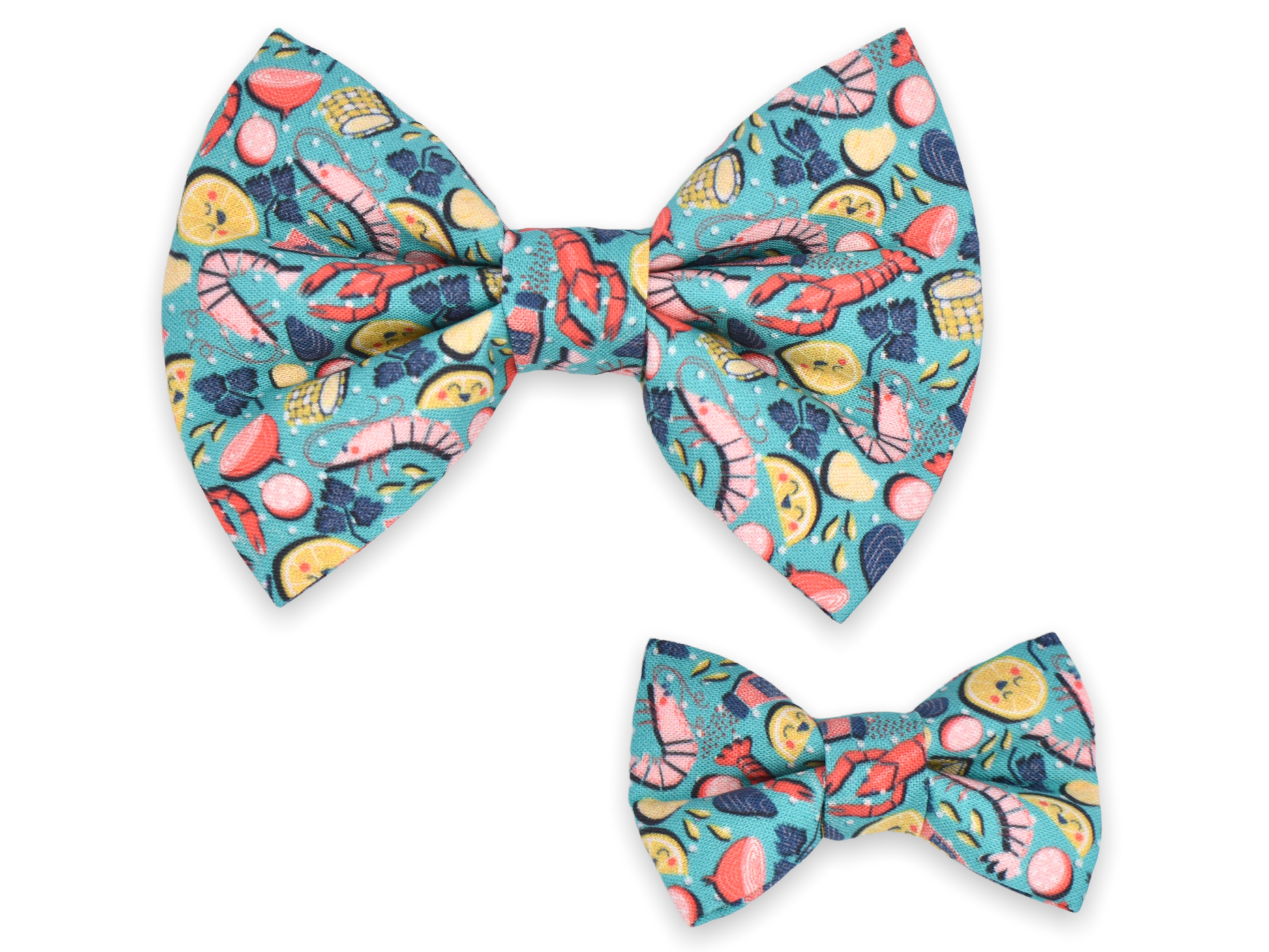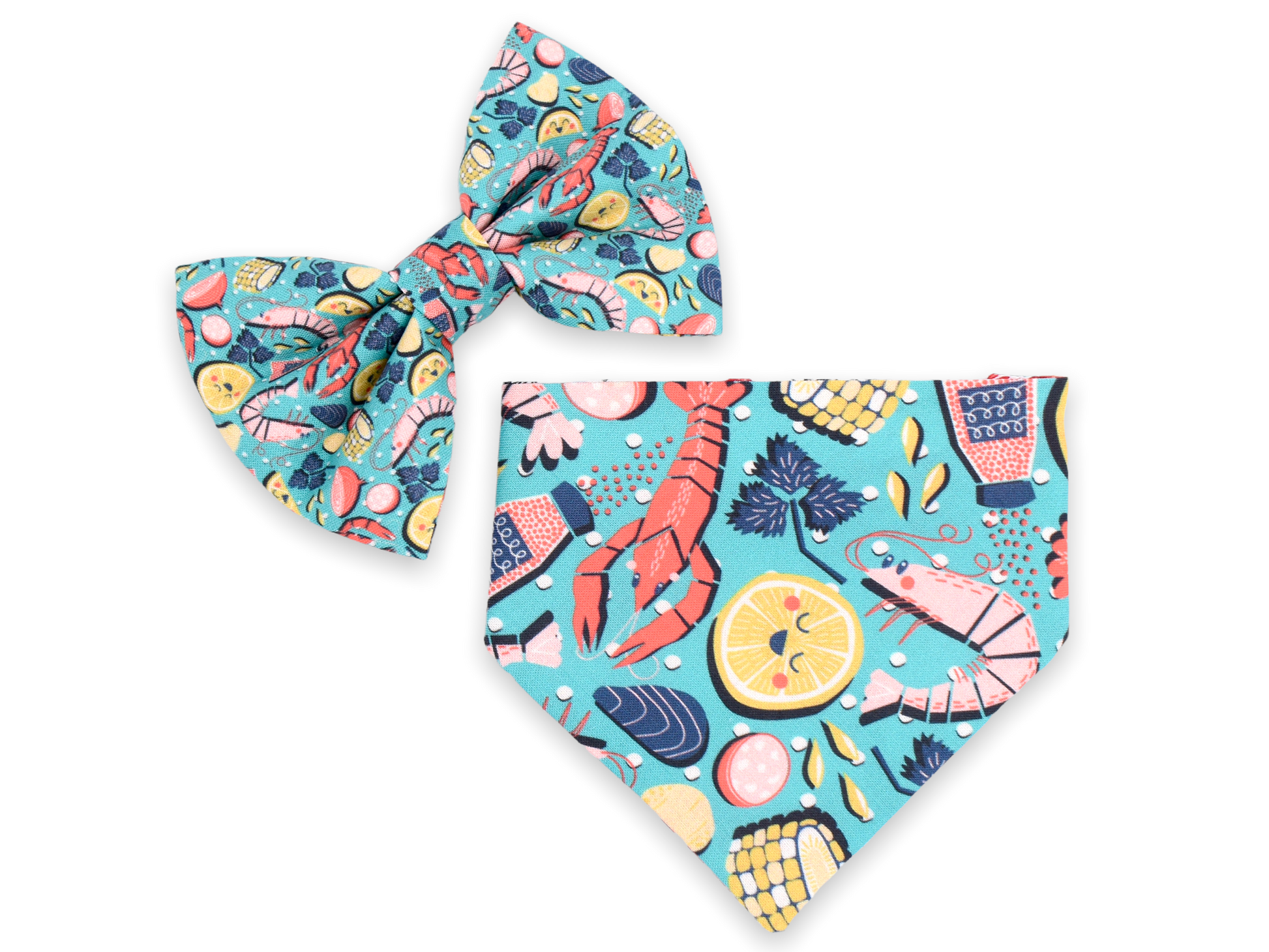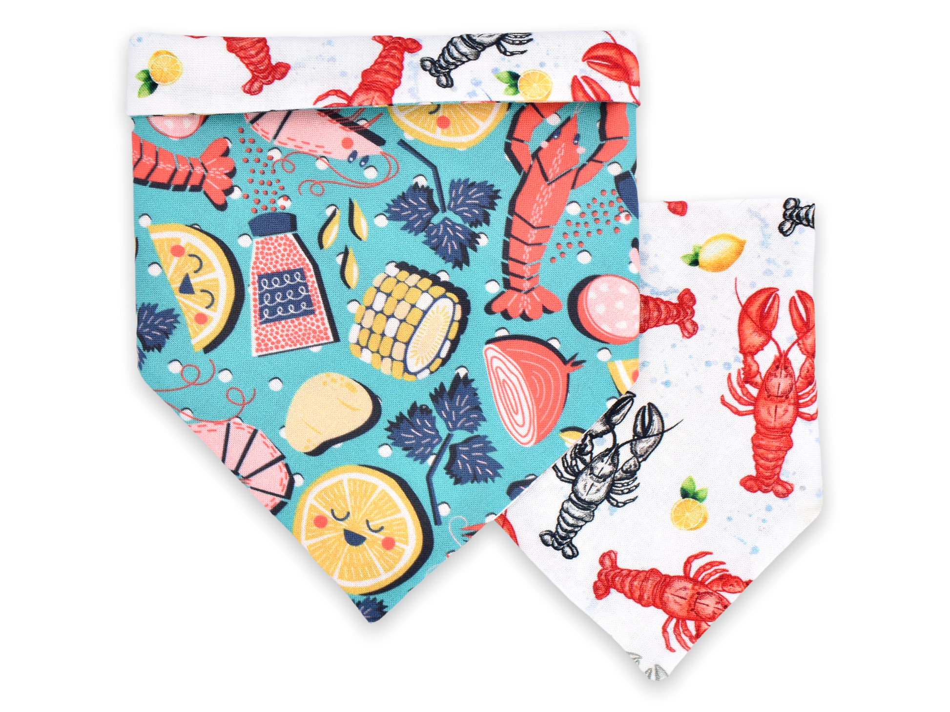 This style is dual-sided with a collar or theme-coordinated pattern on the reverse side, offering a two-for-one style option! This style can be worn by slipping your pet’s collar through the openings at the top of the bandana, and then clipping the collar around your pet’s neck. This style requires a collar for wear.