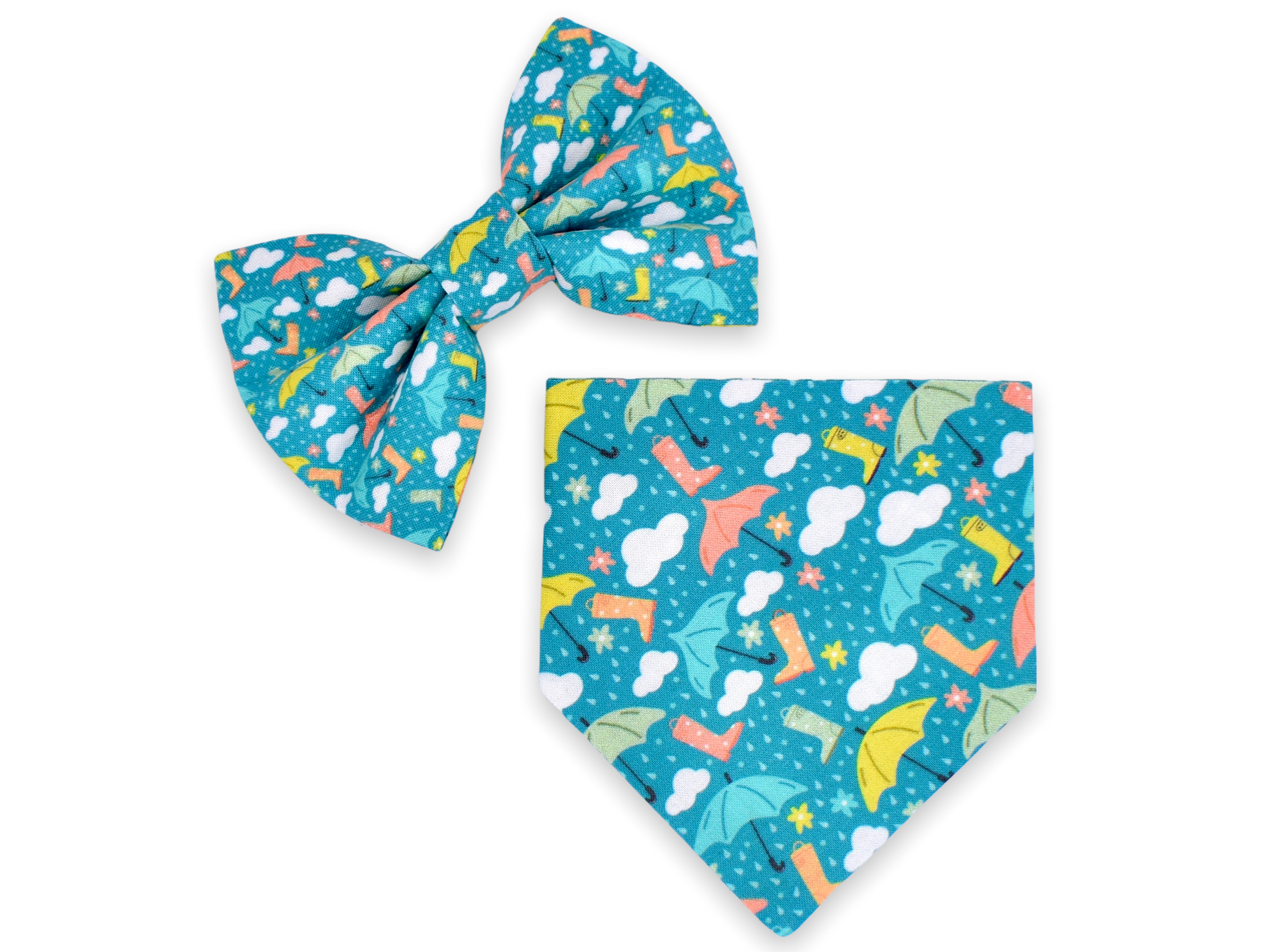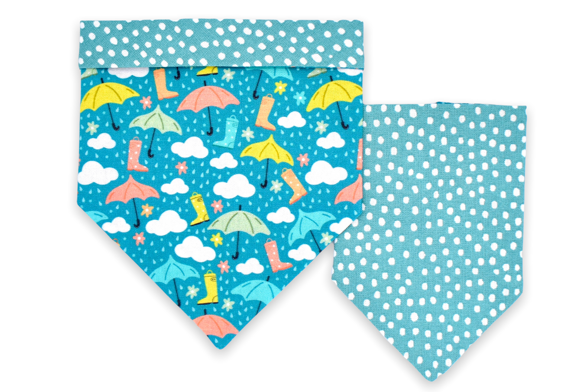 This style is dual-sided with a collar or theme-coordinated pattern on the reverse side, offering a two-for-one style option! This style can be worn by slipping your pet’s collar through the openings at the top of the bandana, and then clipping the collar around your pet’s neck. This style requires a collar for wear.