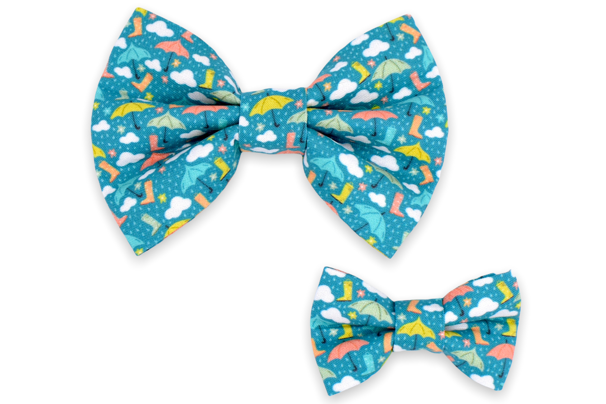 Our original style bow tie! This style features two elastic straps stitched to the backside of the bow tie for your pet’s collar to slide through. The elastic straps are triple-stitched to the bow tie for extra security. This style requires a collar for wear.