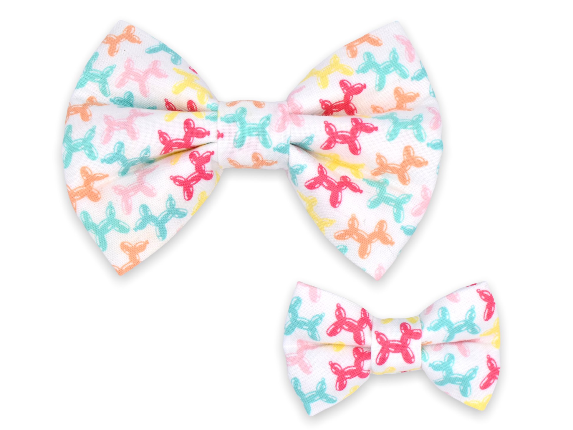 Our original style bow tie! This style features two elastic straps stitched to the backside of the bow tie for your pet’s collar to slide through. The elastic straps are triple-stitched to the bow tie for extra security. This style requires a collar for wear.