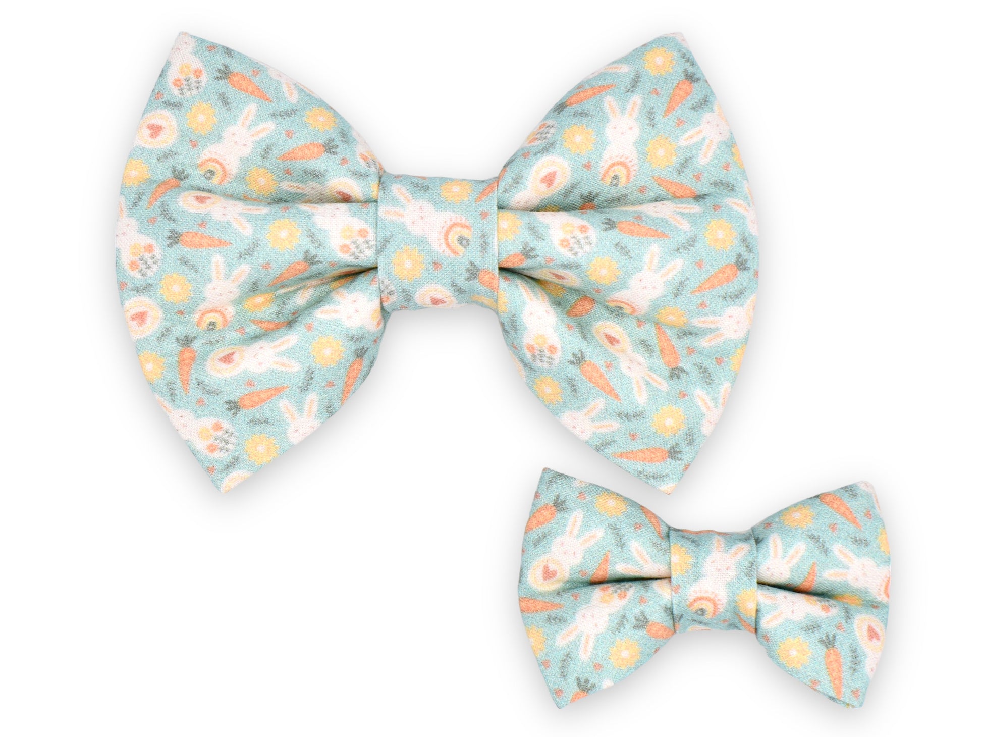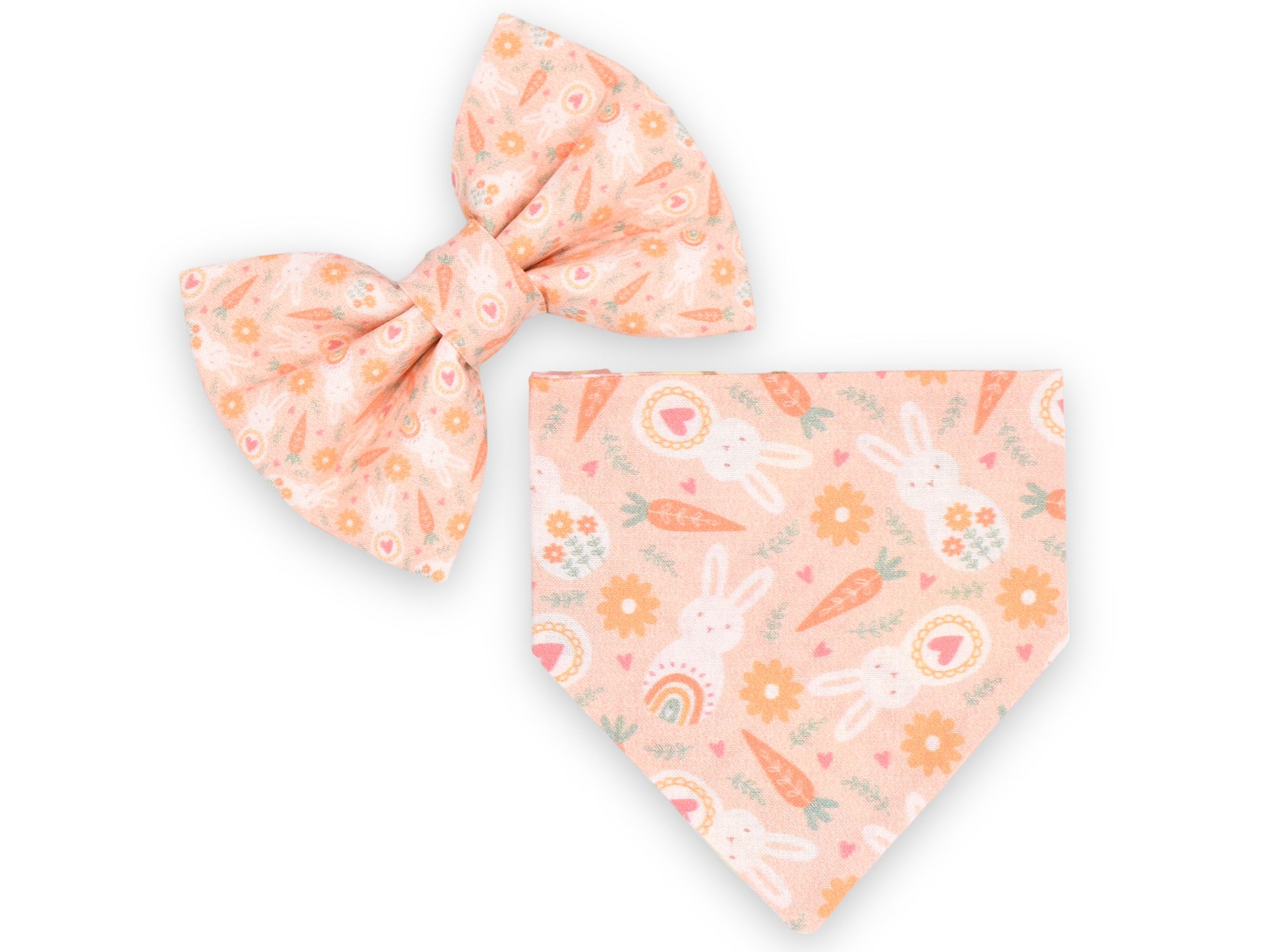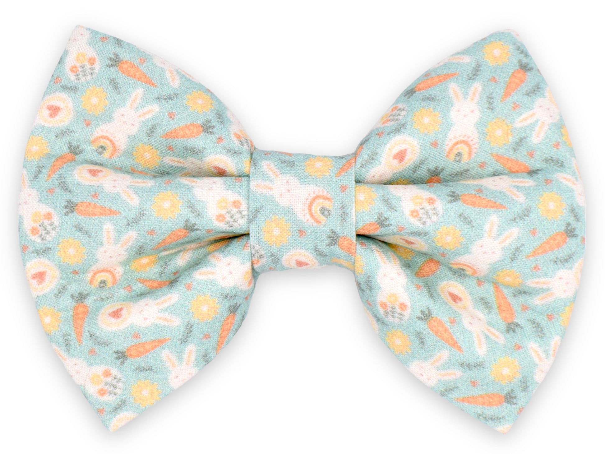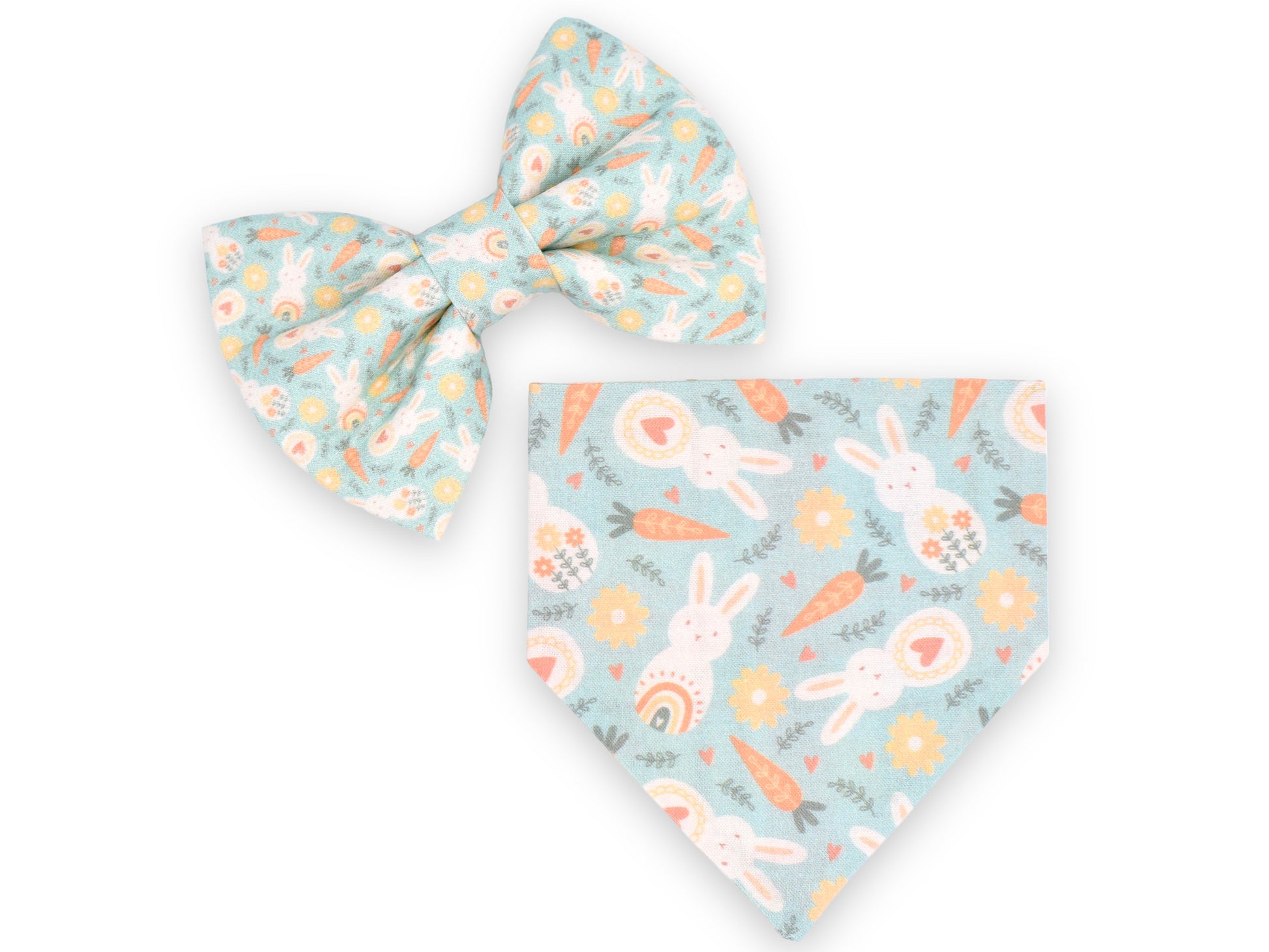 Accessories are not intended for rough wear. Bow ties with elastic collars and scrunchie-style bandanas completely circle your pet’s neck and are not made with a breakaway function. We do not recommend leaving your pet unsupervised while wearing any accessory. Spot clean mild detergent and lay flat to dry. If ironing, cover with thin cloth and use low heat and pressure.