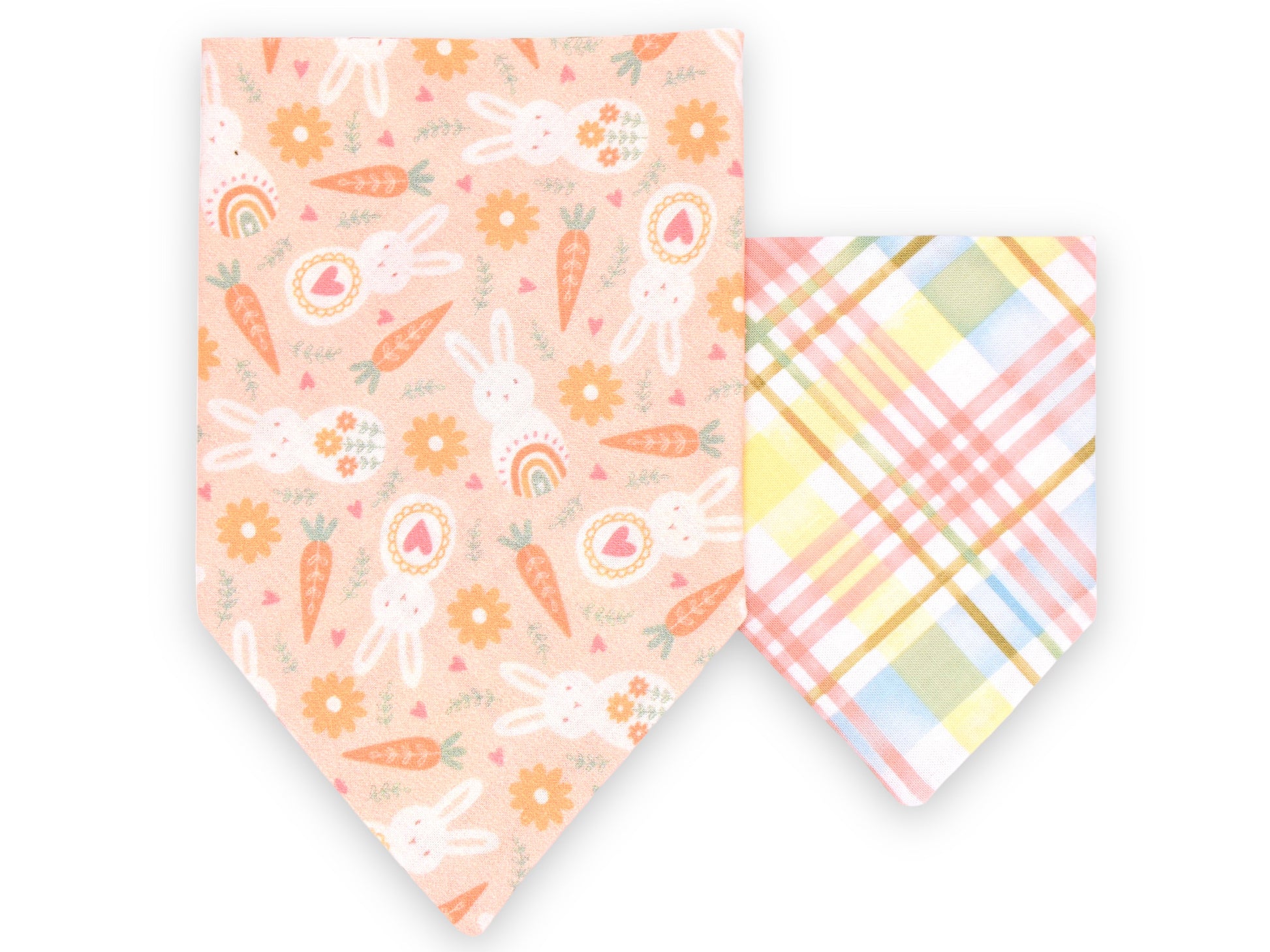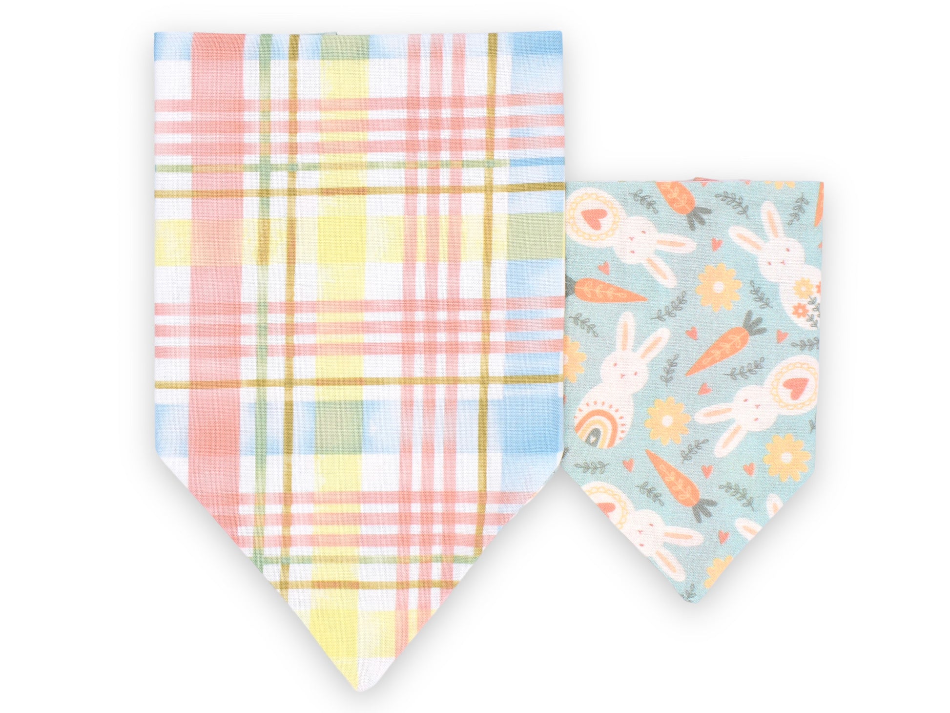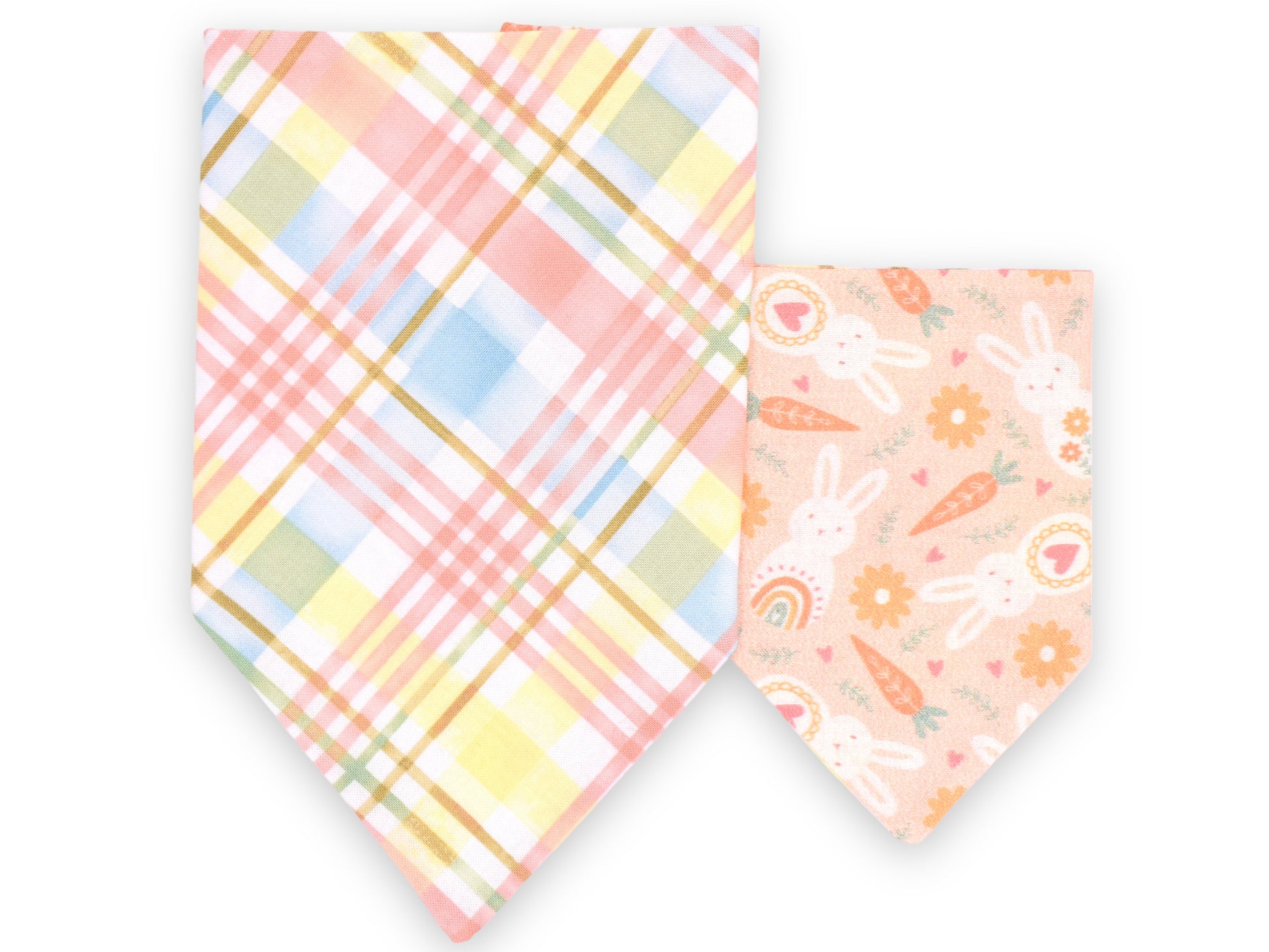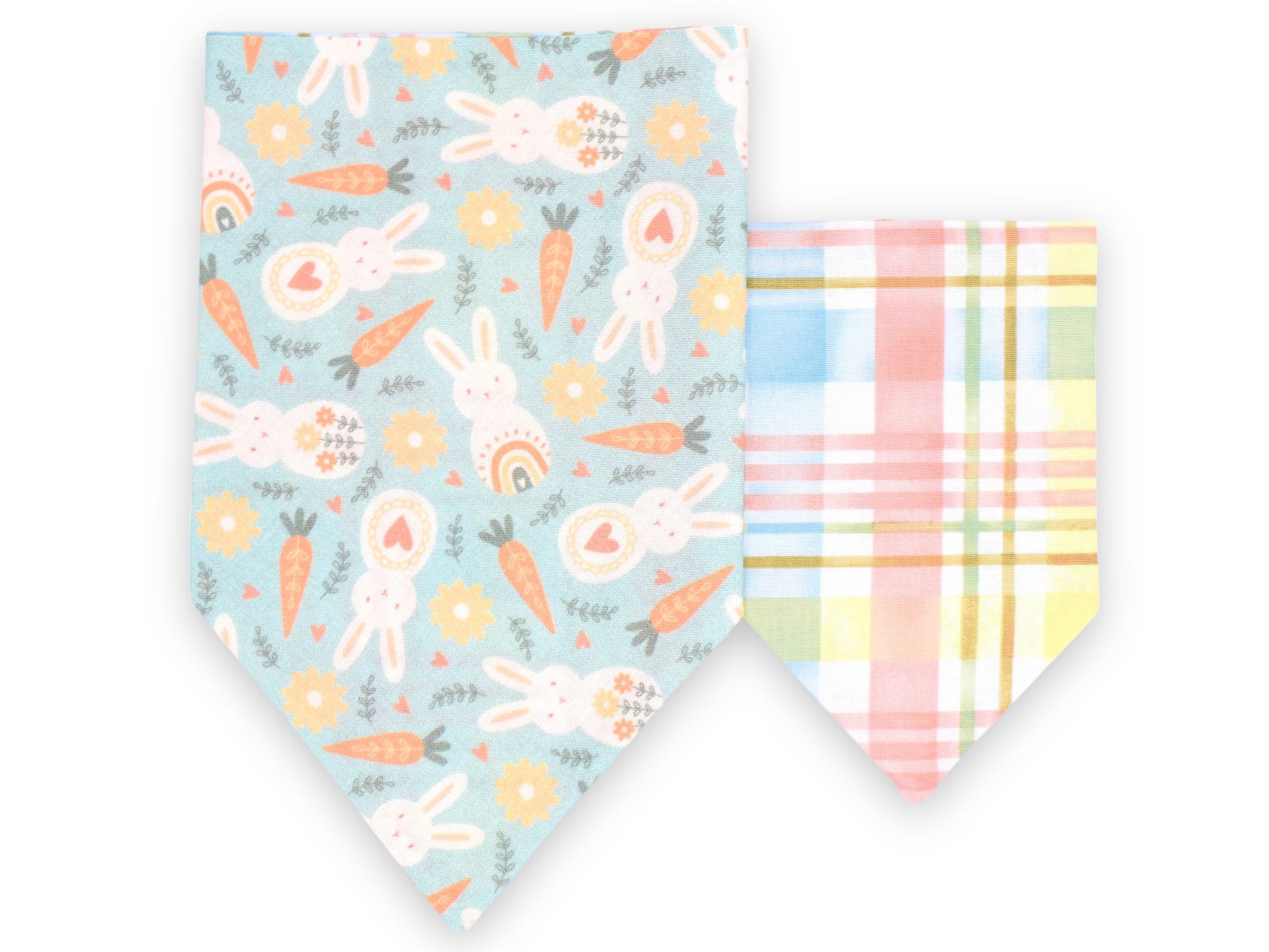This style is dual-sided with a collar or theme-coordinated pattern on the reverse side, offering a two-for-one style option! This style can be worn by slipping your pet’s collar through the openings at the top of the bandana, and then clipping the collar around your pet’s neck. This style requires a collar for wear.