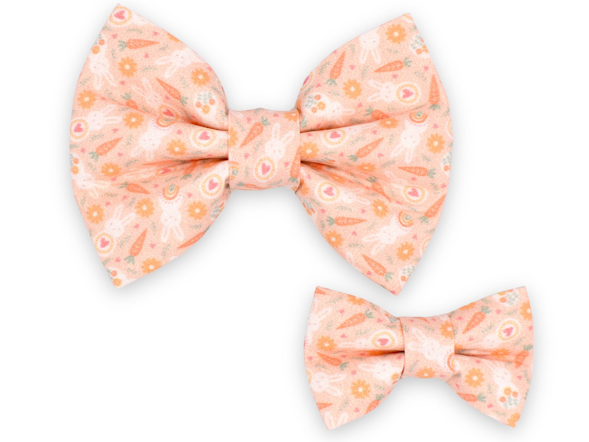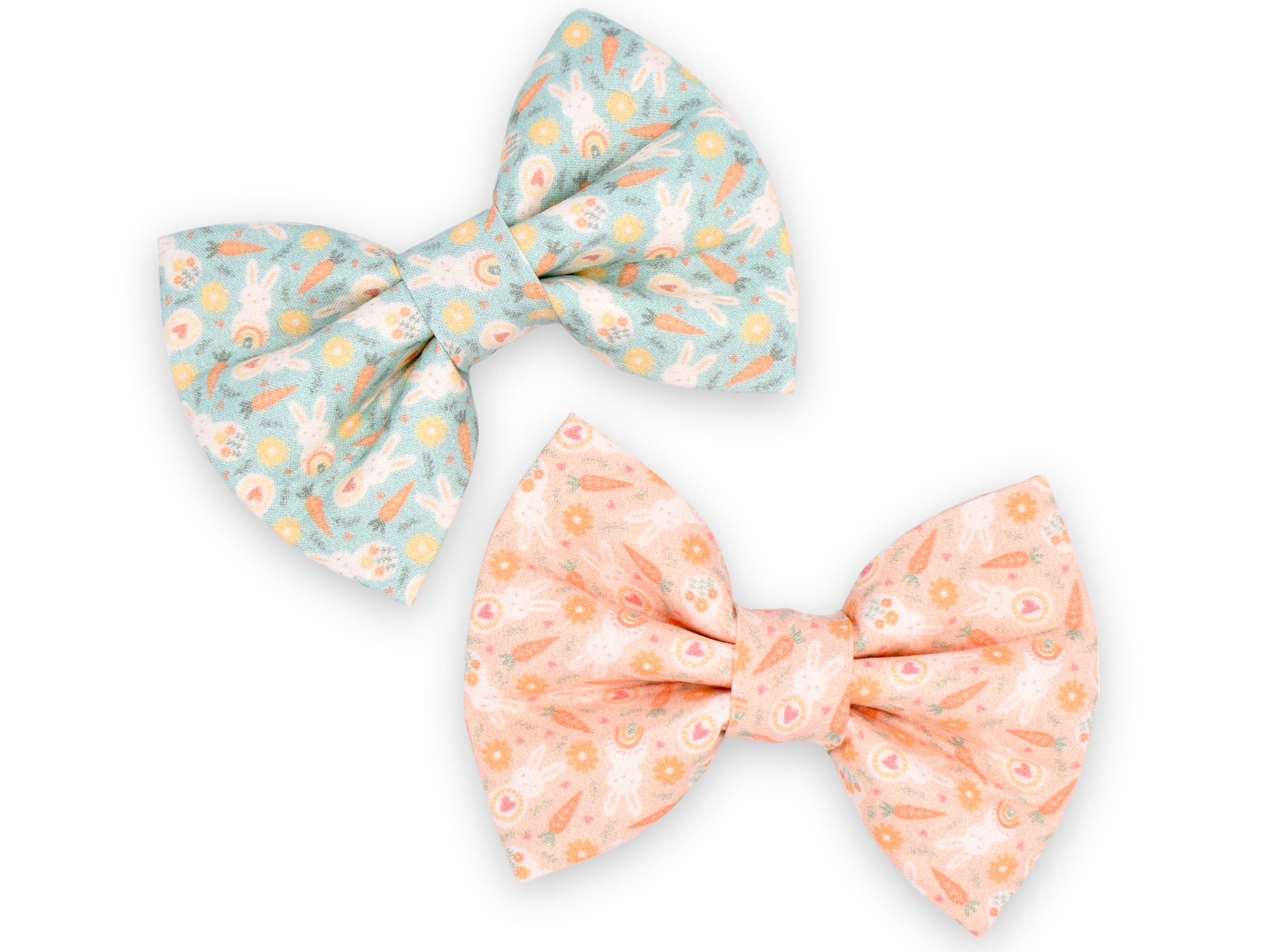 Our original style bow tie! This style features two elastic straps stitched to the backside of the bow tie for your pet’s collar to slide through. The elastic straps are triple-stitched to the bow tie for extra security. This style requires a collar for wear.