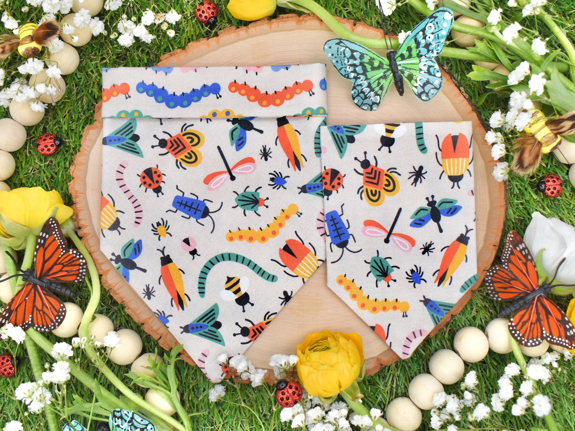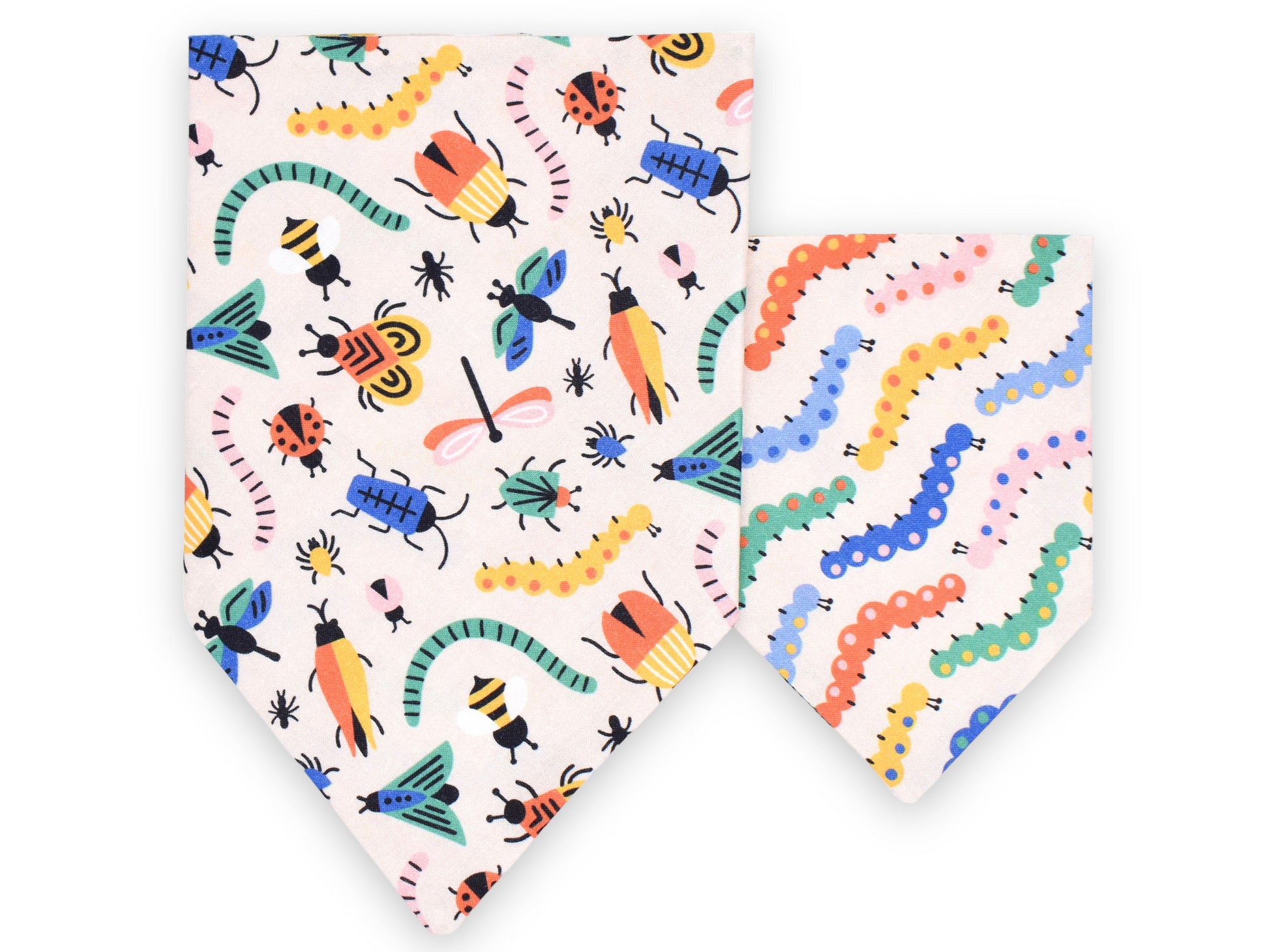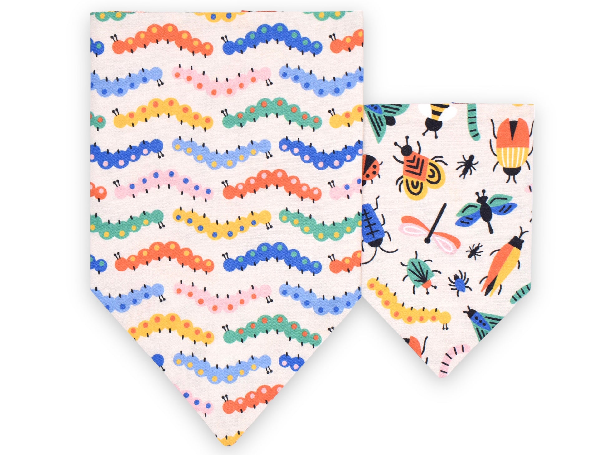 This style is dual-sided with a collar or theme-coordinated pattern on the reverse side, offering a two-for-one style option! This style can be worn by slipping your pet’s collar through the openings at the top of the bandana, and then clipping the collar around your pet’s neck. This style requires a collar for wear.