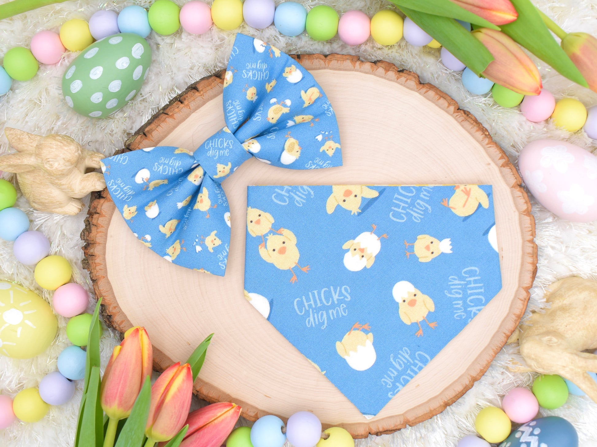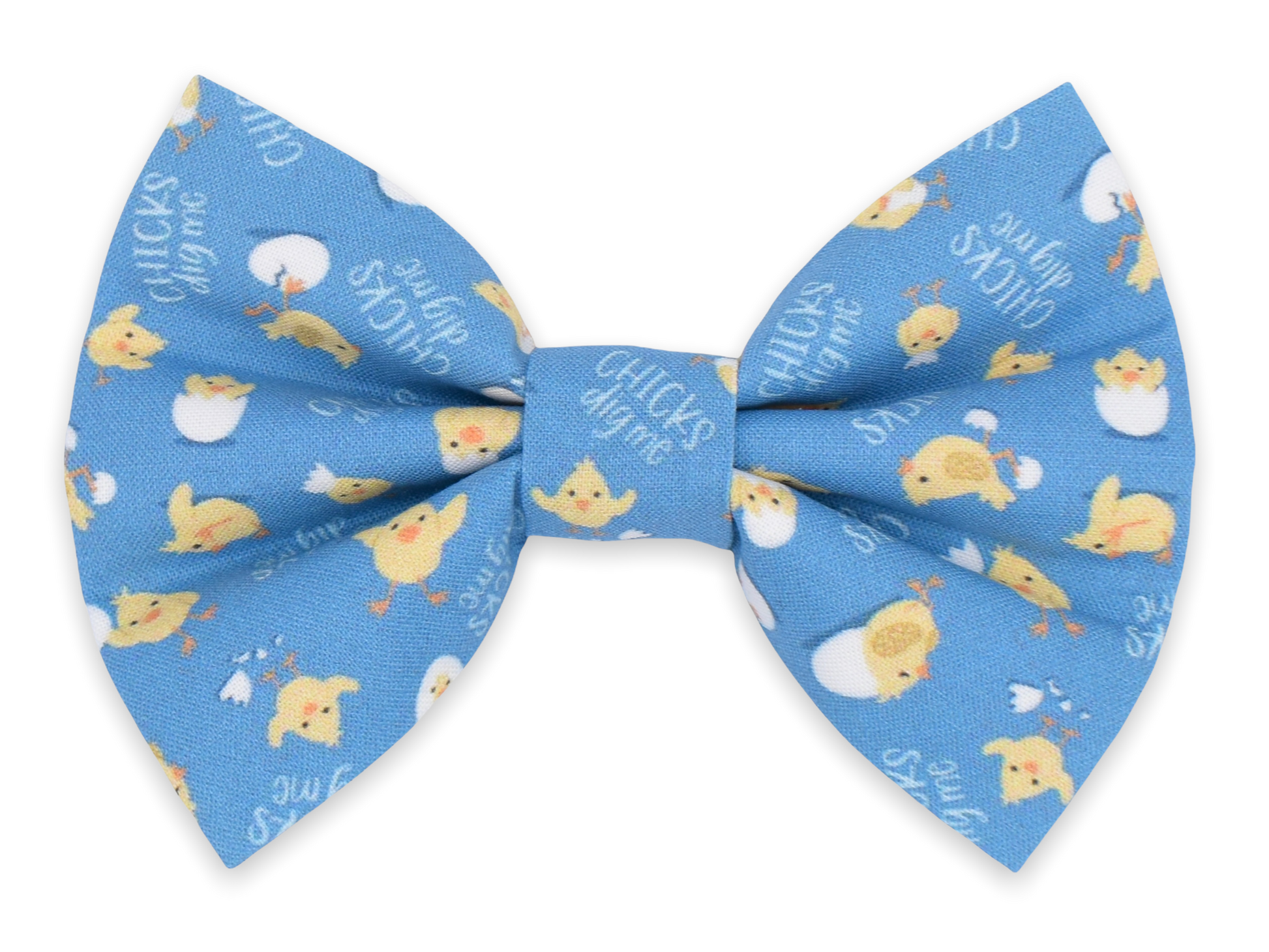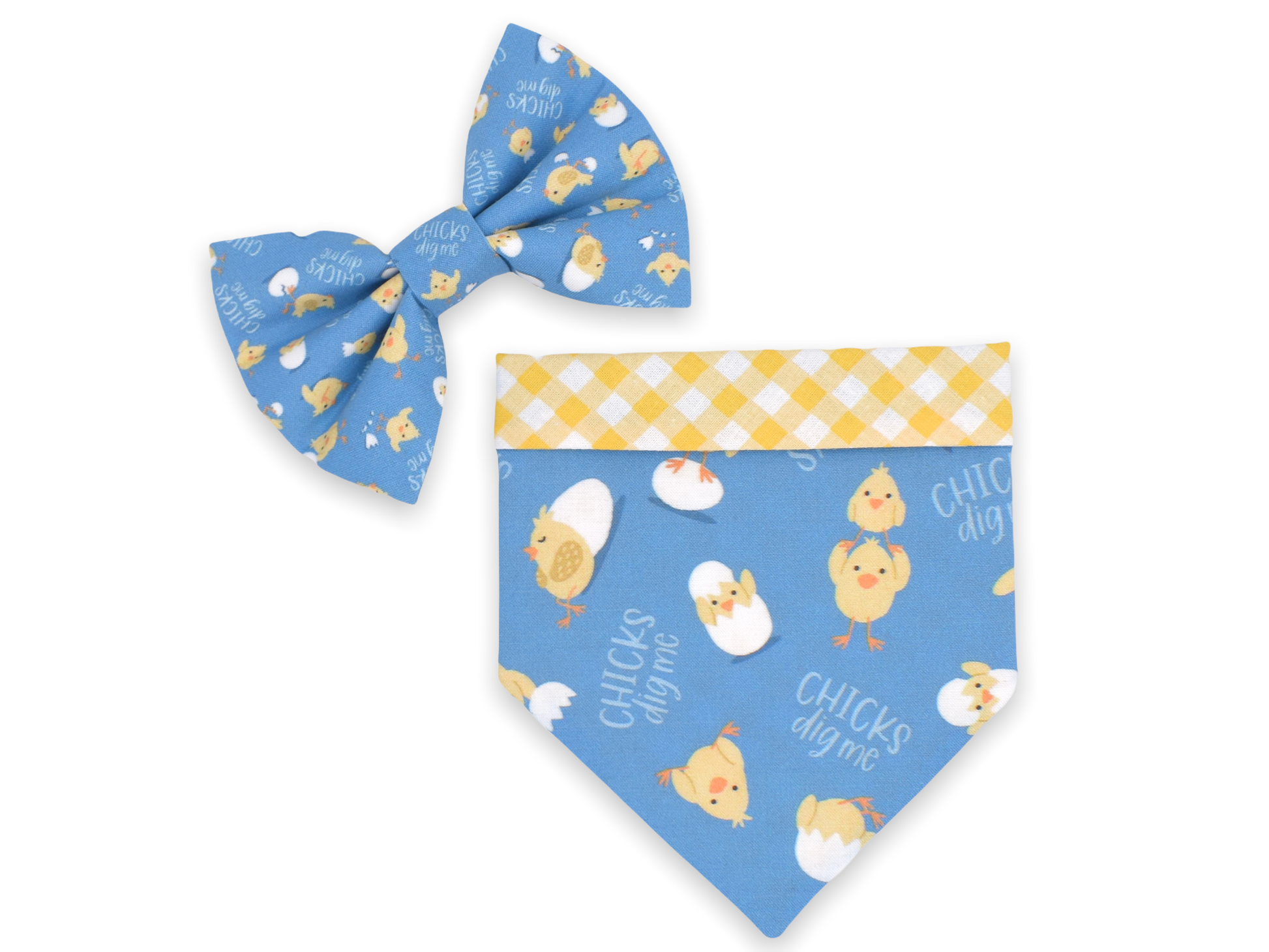 Accessories are not intended for rough wear. Bow ties with elastic collars and scrunchie-style bandanas completely circle your pet’s neck and are not made with a breakaway function. We do not recommend leaving your pet unsupervised while wearing any accessory. Spot clean mild detergent and lay flat to dry. If ironing, cover with thin cloth and use low heat and pressure.