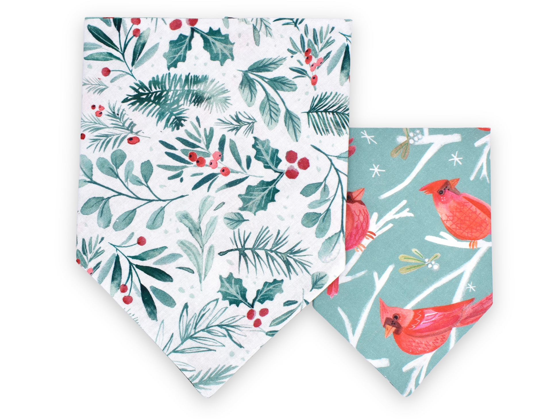 This style is dual-sided with a collar or theme-coordinated pattern on the reverse side, offering a two-for-one style option! This style can be worn by slipping your pet’s collar through the openings at the top of the bandana, and then clipping the collar around your pet’s neck. This style requires a collar for wear.