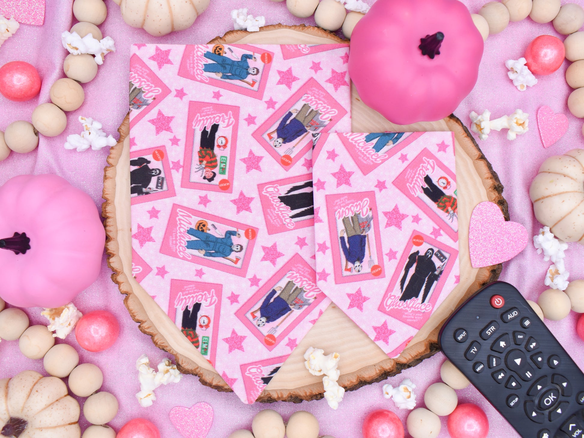 Items shown in photos are sizes Large & Small. Pattern placement will vary. This bandana features glitter accents on the reverse side. Glitter will shed naturally. Follow all care instructions to ensure the longevity of your bandana.