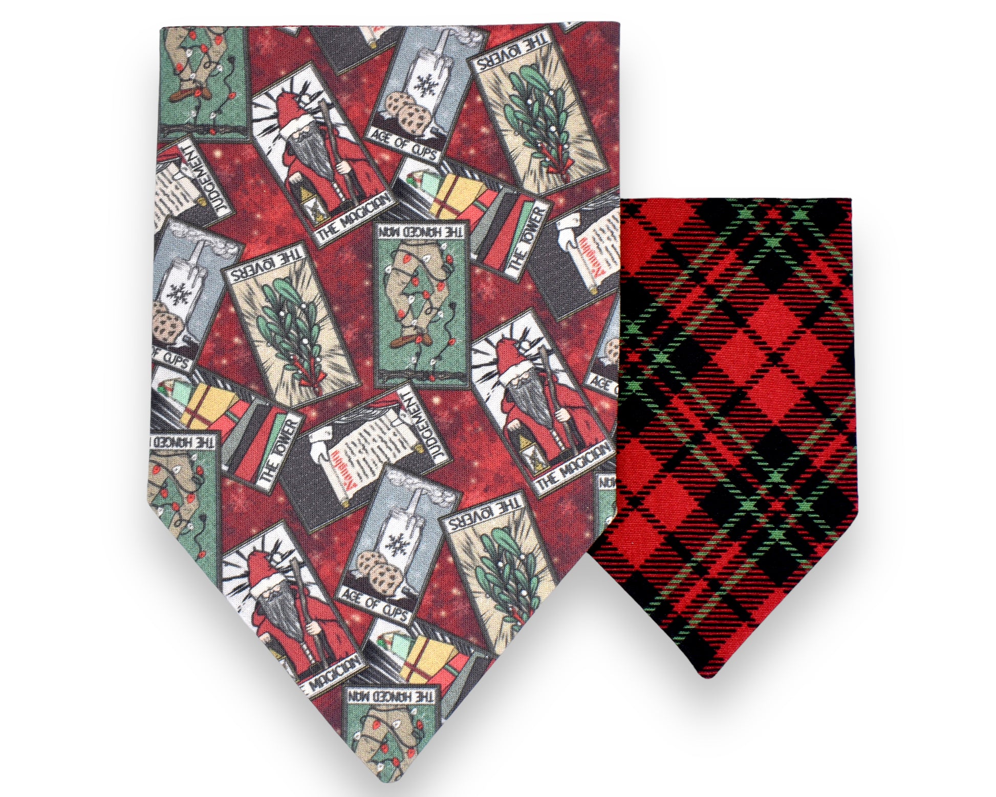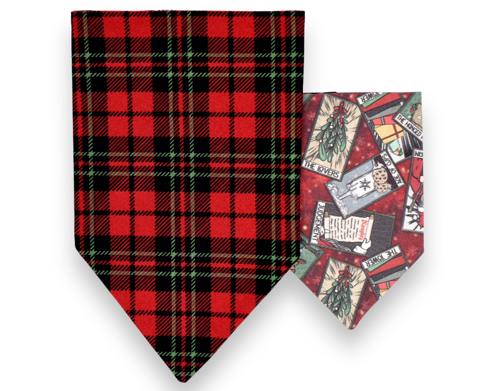 This style is dual-sided with a collar or theme-coordinated pattern on the reverse side, offering a two-for-one style option! This style can be worn by slipping your pet’s collar through the openings at the top of the bandana, and then clipping the collar around your pet’s neck. This style requires a collar for wear.