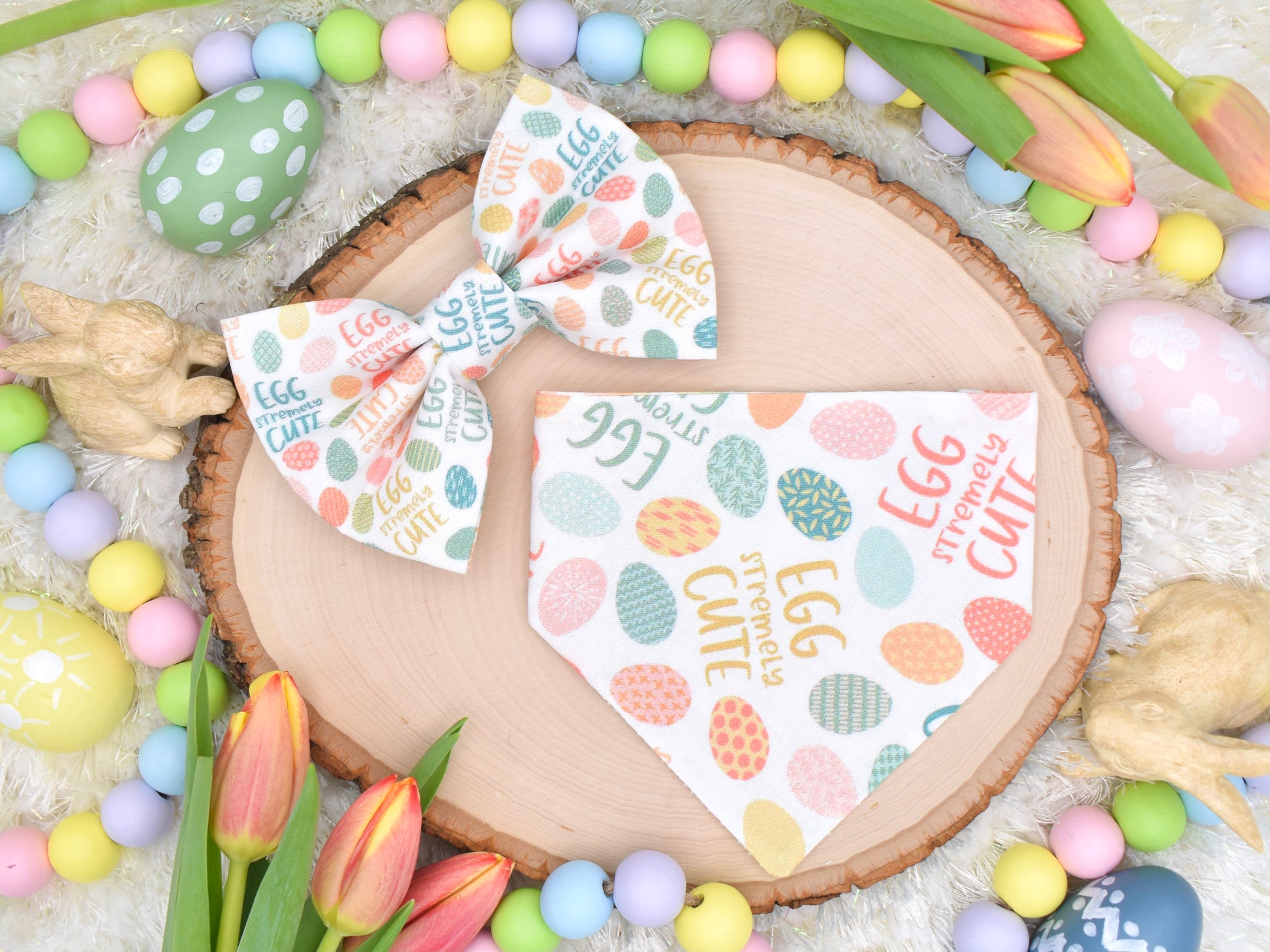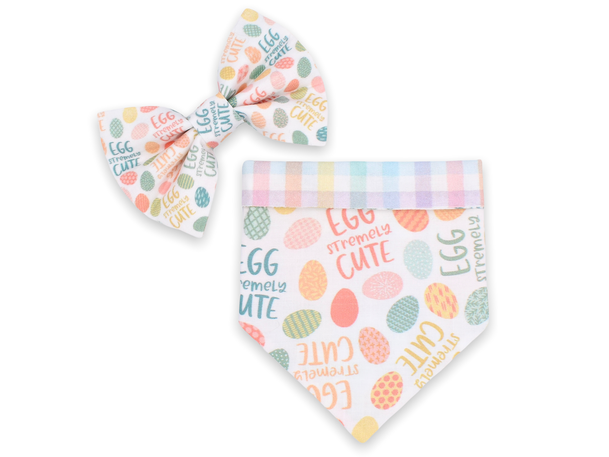Accessories are not intended for rough wear. Bow ties with elastic collars and scrunchie-style bandanas completely circle your pet’s neck and are not made with a breakaway function. We do not recommend leaving your pet unsupervised while wearing any accessory. Spot clean mild detergent and lay flat to dry. If ironing, cover with thin cloth and use low heat and pressure.