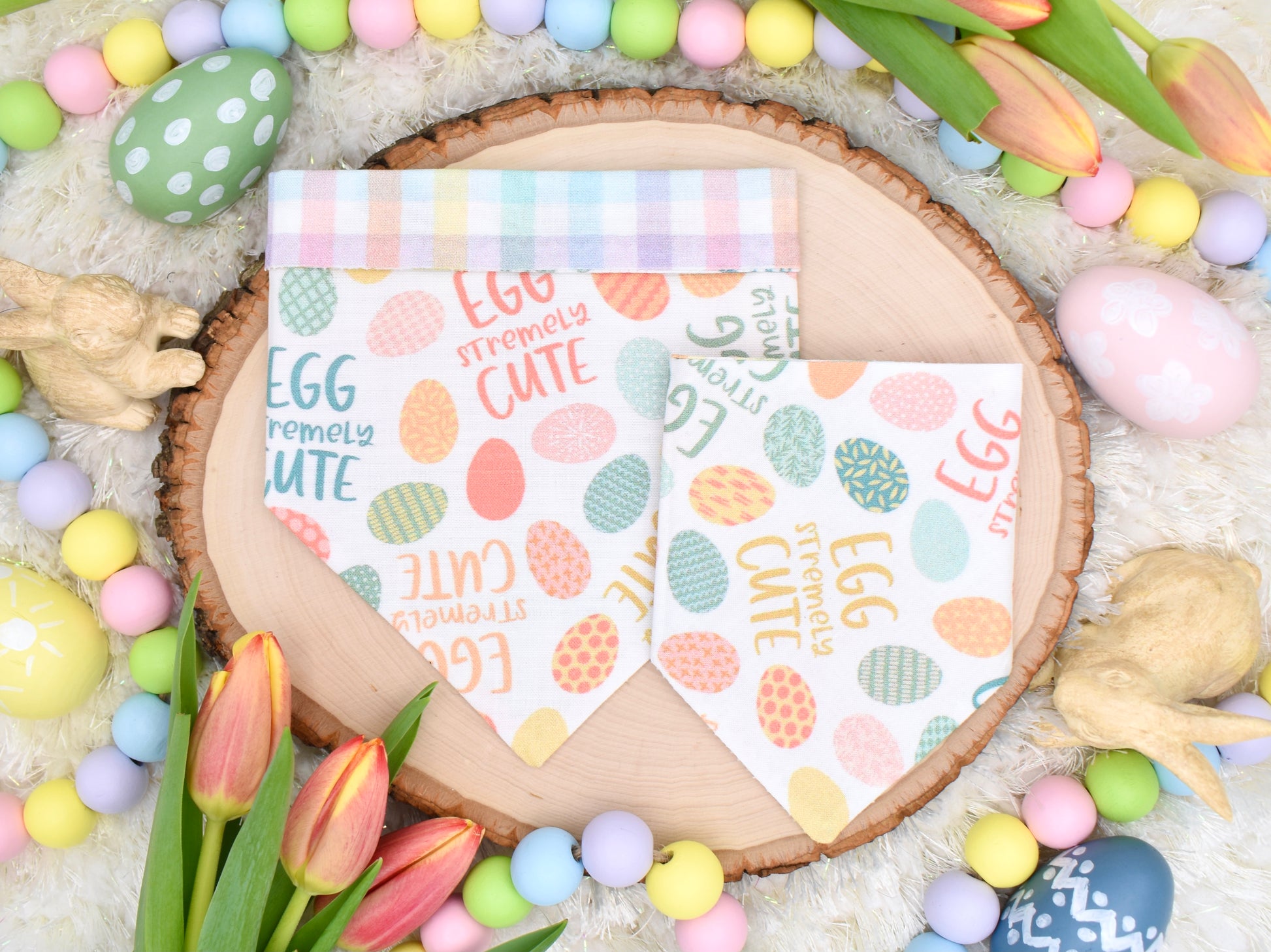 This style is dual-sided with a collar or theme-coordinated pattern on the reverse side, offering a two-for-one style option! This style can be worn by slipping your pet’s collar through the openings at the top of the bandana, and then clipping the collar around your pet’s neck. This style requires a collar for wear.