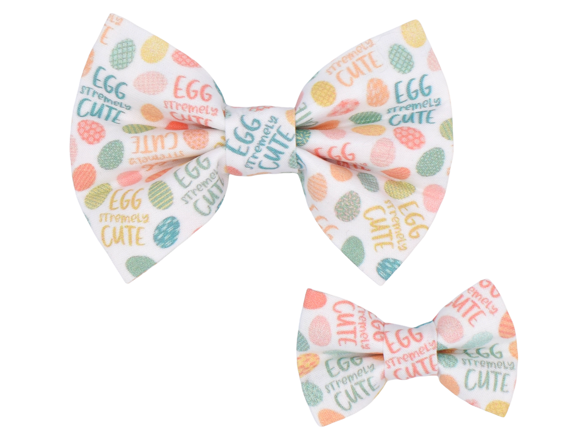Our original style bow tie! This style features two elastic straps stitched to the backside of the bow tie for your pet’s collar to slide through. The elastic straps are triple-stitched to the bow tie for extra security. This style requires a collar for wear.