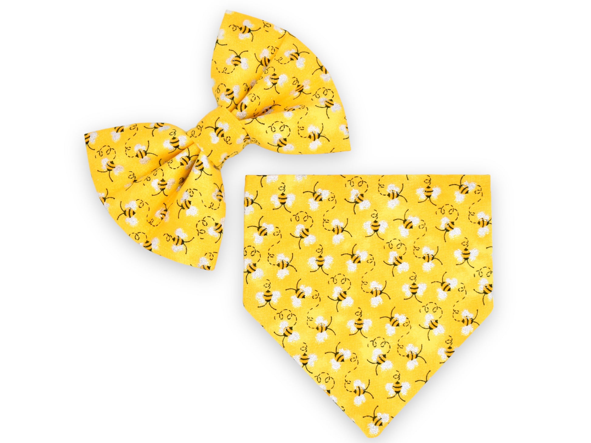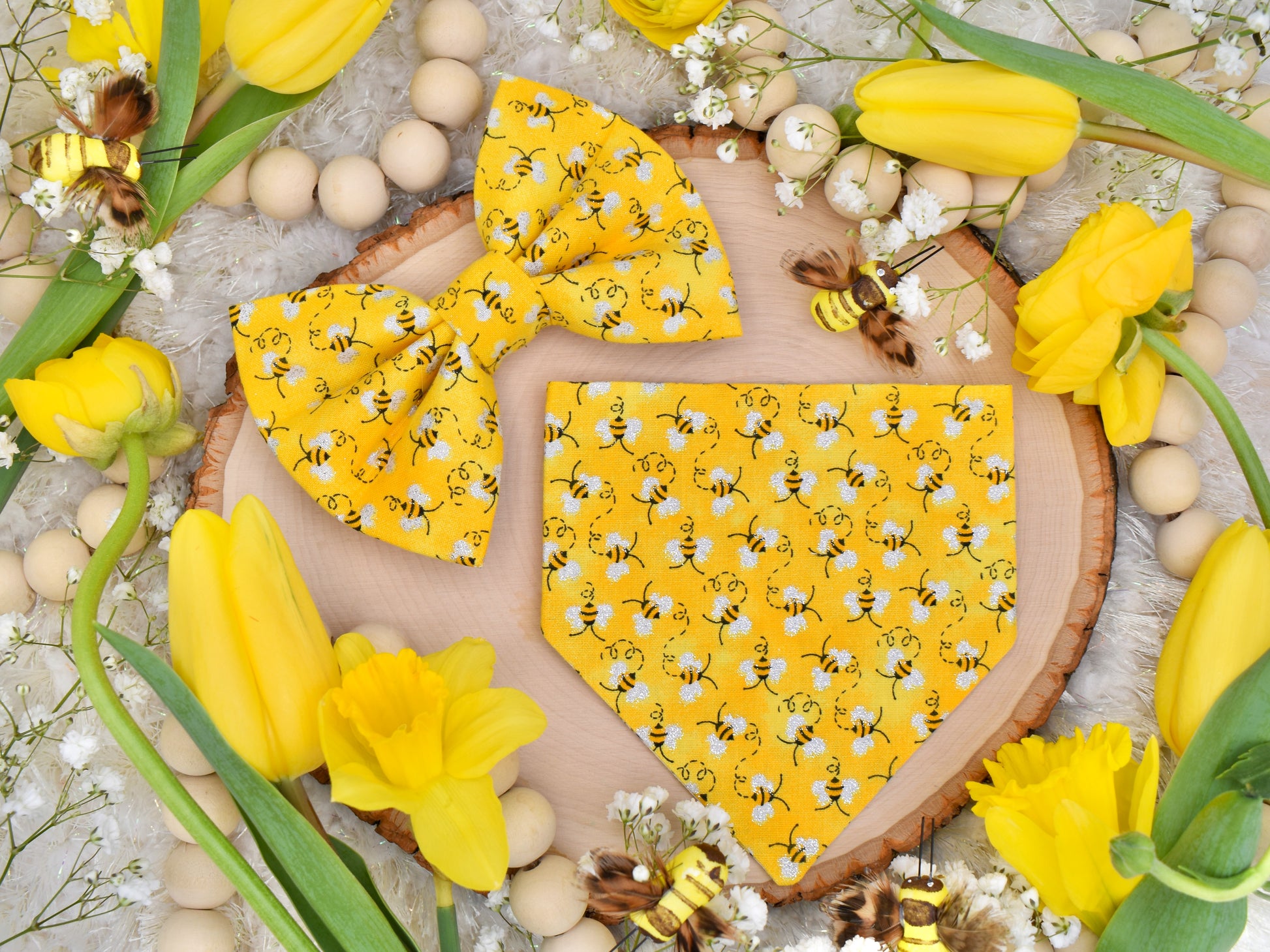 Accessories are not intended for rough wear. Bow ties with elastic collars and scrunchie-style bandanas completely circle your pet’s neck and are not made with a breakaway function. We do not recommend leaving your pet unsupervised while wearing any accessory. Spot clean mild detergent and lay flat to dry. If ironing, cover with thin cloth and use low heat and pressure.