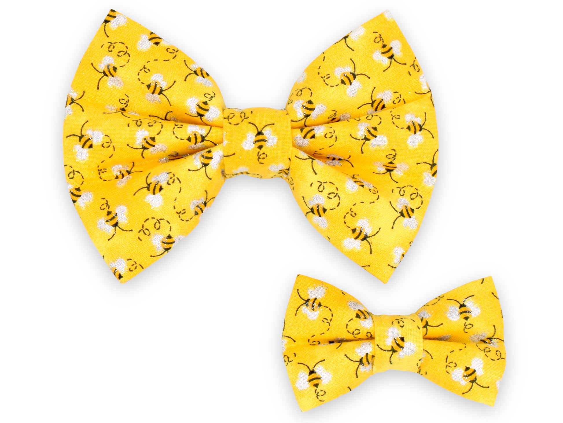 Our original style bow tie! This style features two elastic straps stitched to the backside of the bow tie for your pet’s collar to slide through. The elastic straps are triple-stitched to the bow tie for extra security. This style requires a collar for wear.