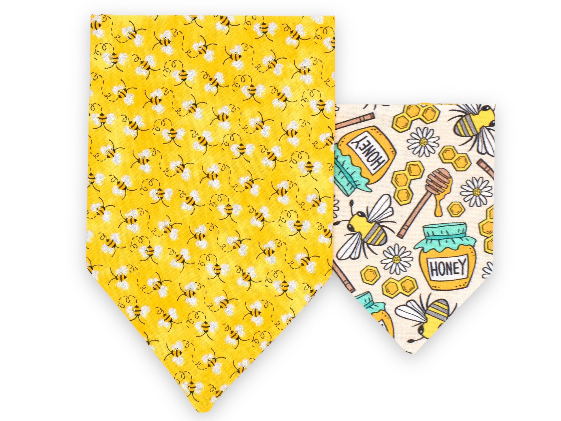 This style is dual-sided with a collar or theme-coordinated pattern on the reverse side, offering a two-for-one style option! This style can be worn by slipping your pet’s collar through the openings at the top of the bandana, and then clipping the collar around your pet’s neck. This style requires a collar for wear.