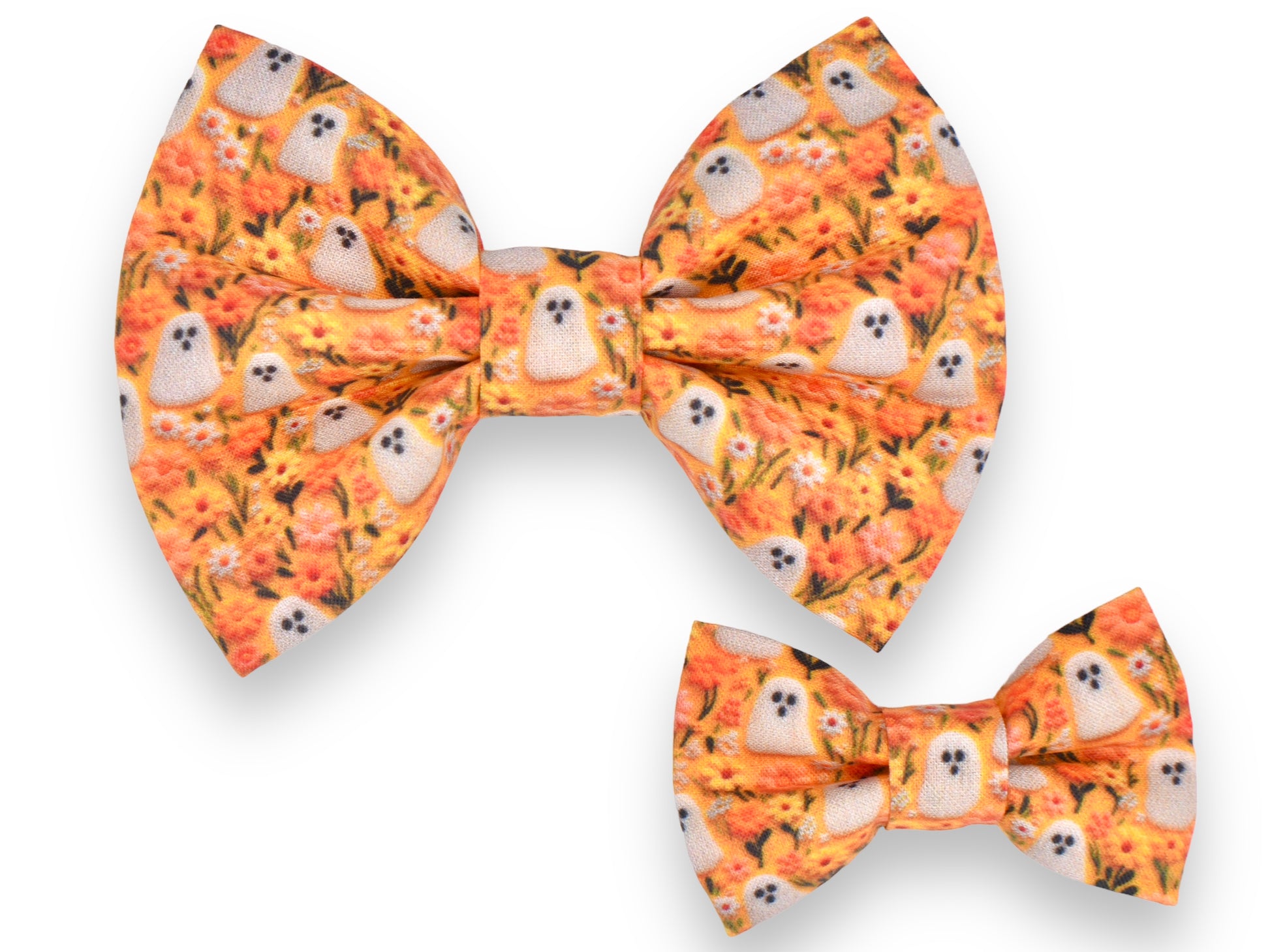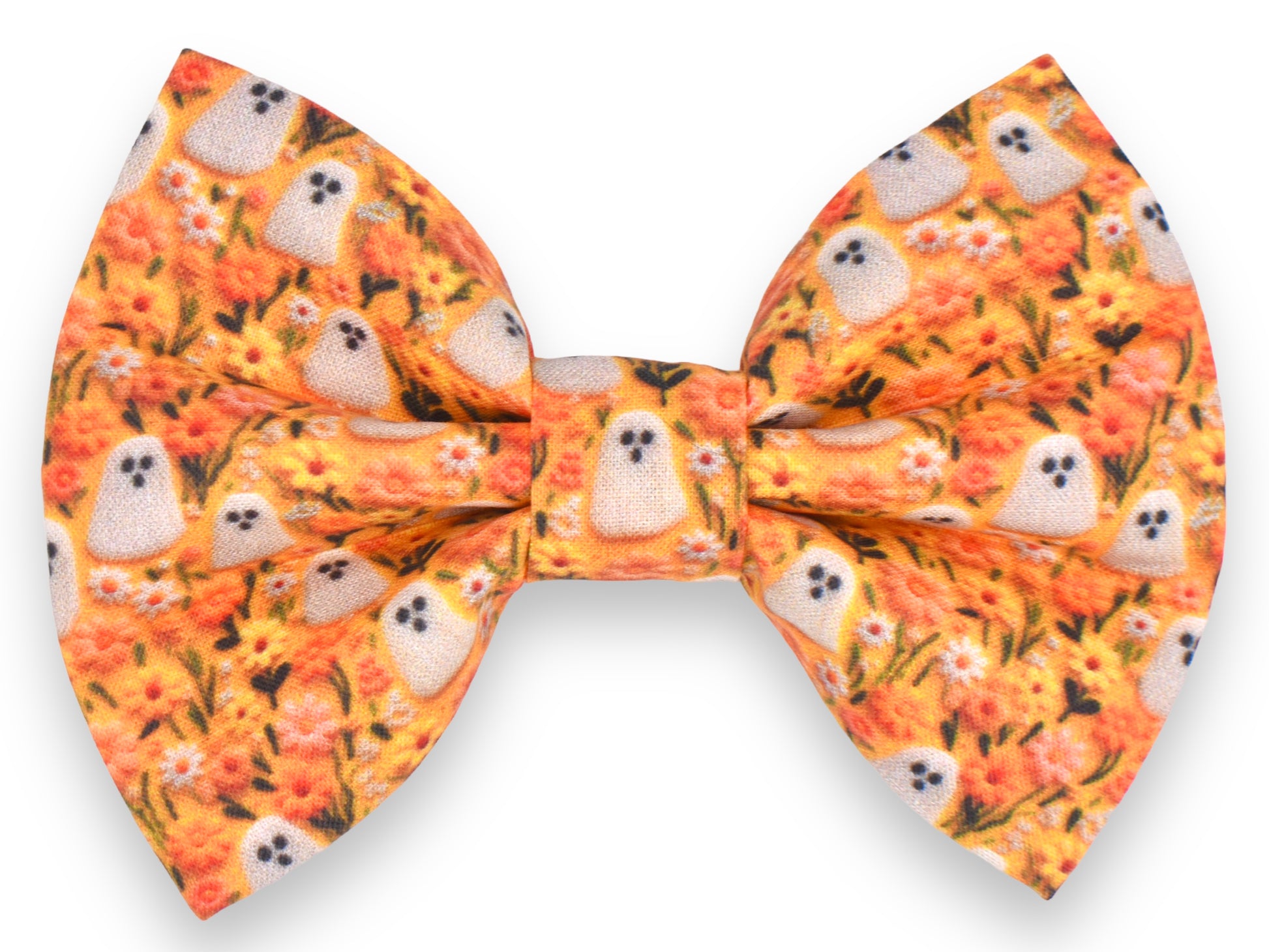 Our original style bow tie! This style features two elastic straps stitched to the backside of the bow tie for your pet’s collar to slide through. The elastic straps are triple-stitched to the bow tie for extra security. This style requires a collar for wear.