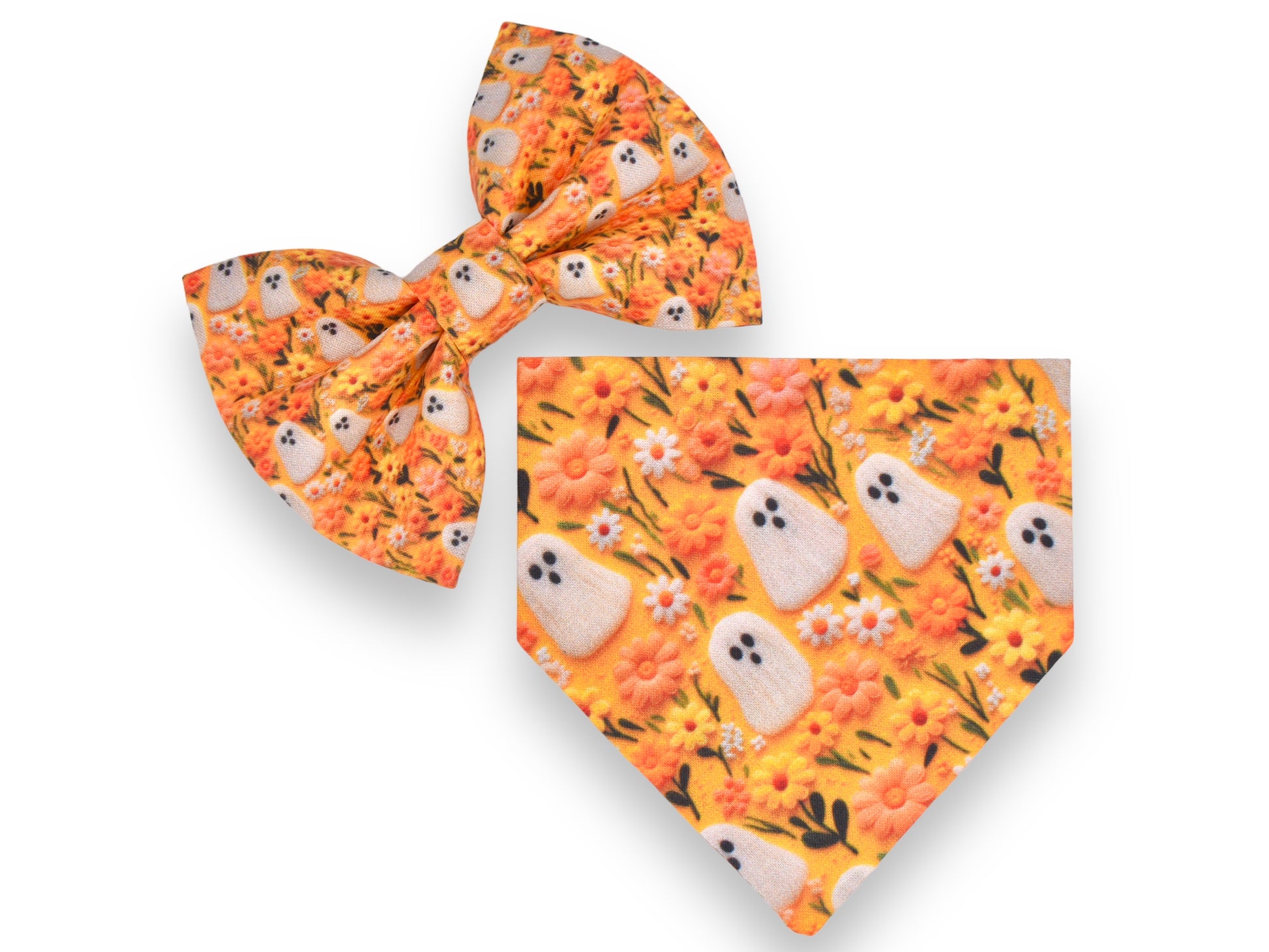 Accessories are not intended for rough wear. Bow ties with elastic collars and scrunchie-style bandanas completely circle your pet’s neck and are not made with a breakaway function. We do not recommend leaving your pet unsupervised while wearing any accessory. Spot clean mild detergent and lay flat to dry. If ironing, cover with thin cloth and use low heat and pressure.