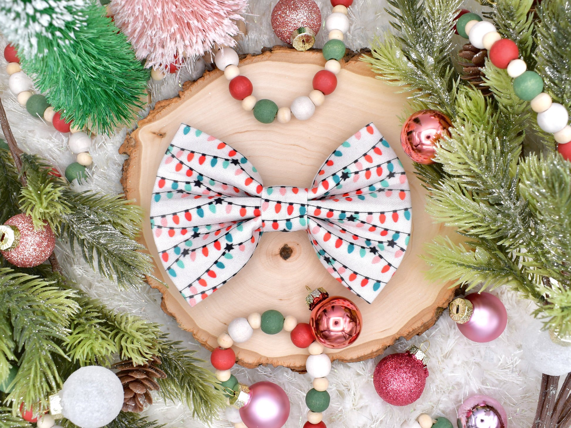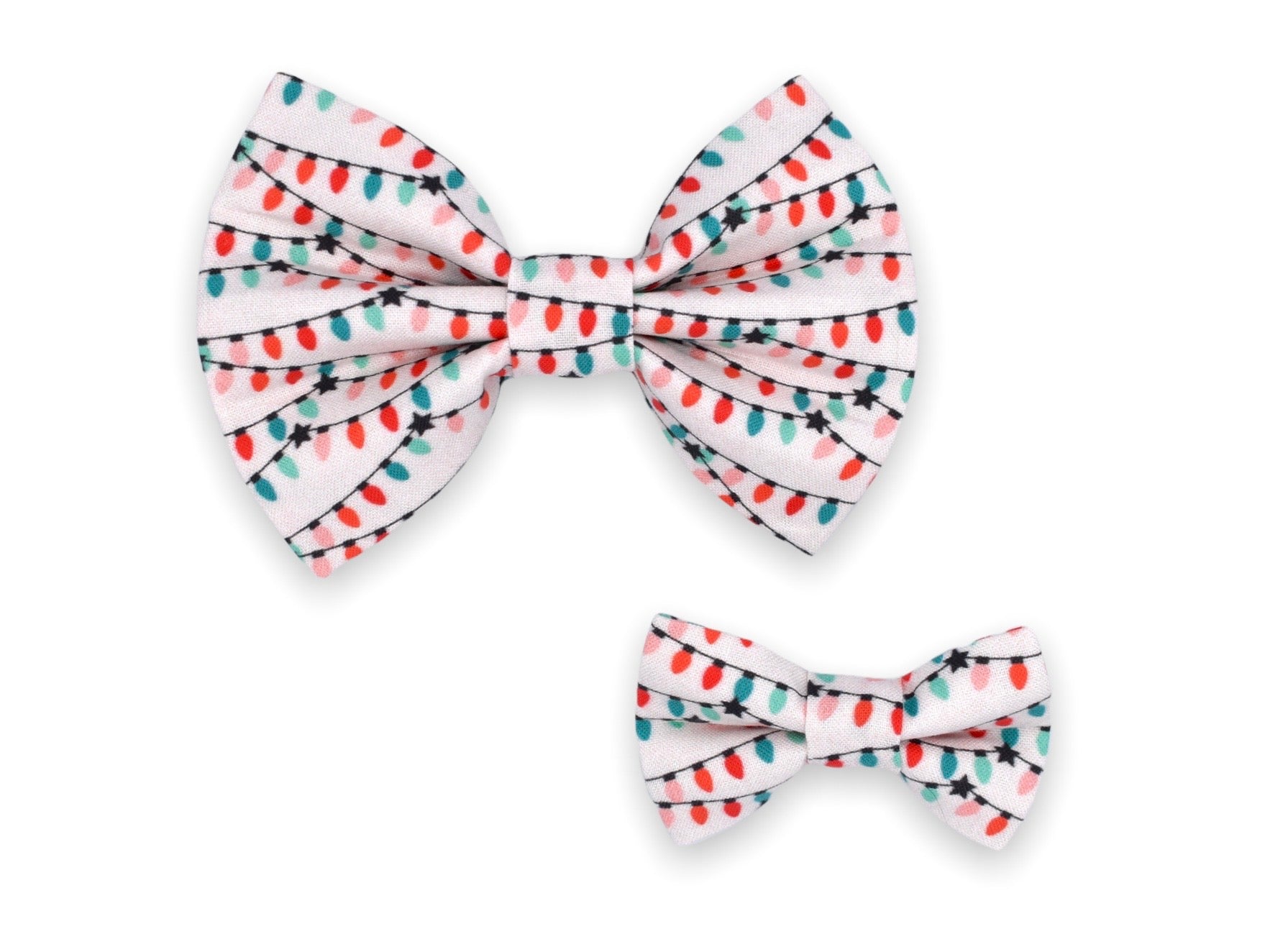 Our original style bow tie! This style features two elastic straps stitched to the backside of the bow tie for your pet’s collar to slide through. The elastic straps are triple-stitched to the bow tie for extra security. This style requires a collar for wear.