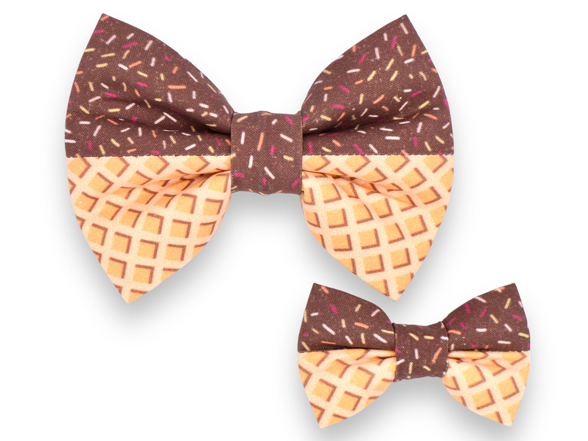 Our original style bow tie! This style features two elastic straps stitched to the backside of the bow tie for your pet’s collar to slide through. The elastic straps are triple-stitched to the bow tie for extra security. This style requires a collar for wear.