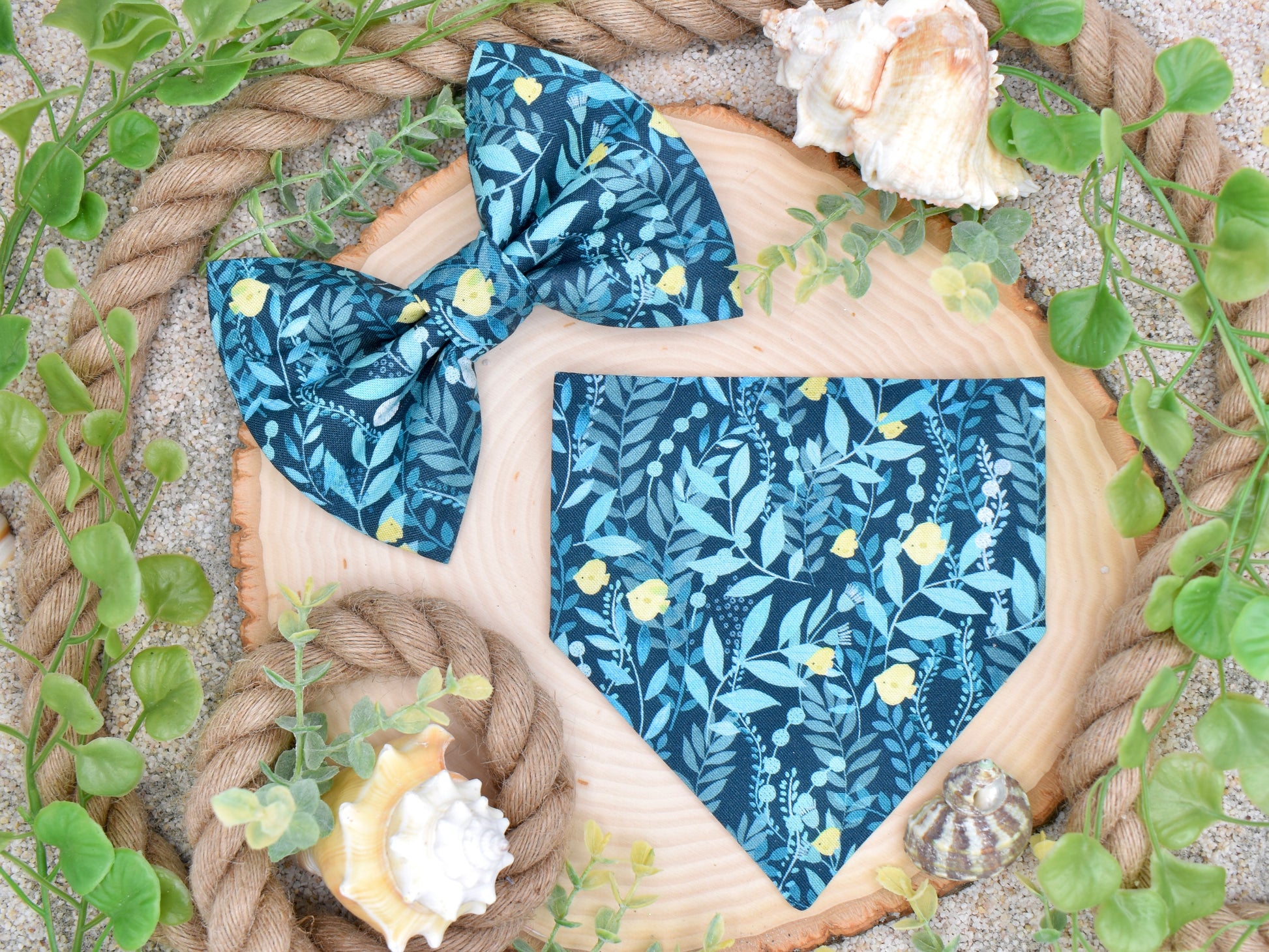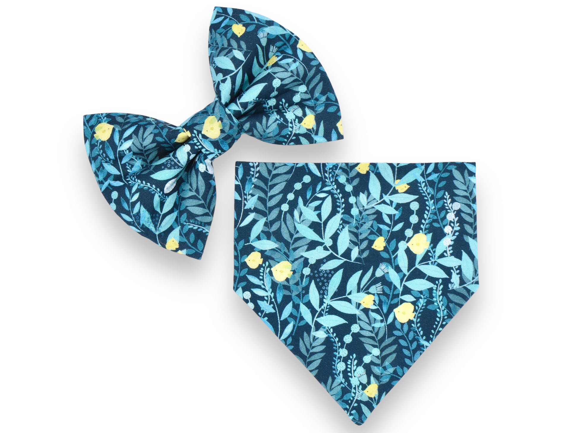 Accessories are not intended for rough wear. Bow ties with elastic collars and scrunchie-style bandanas completely circle your pet’s neck and are not made with a breakaway function. We do not recommend leaving your pet unsupervised while wearing any accessory. Spot clean mild detergent and lay flat to dry. If ironing, cover with thin cloth and use low heat and pressure.