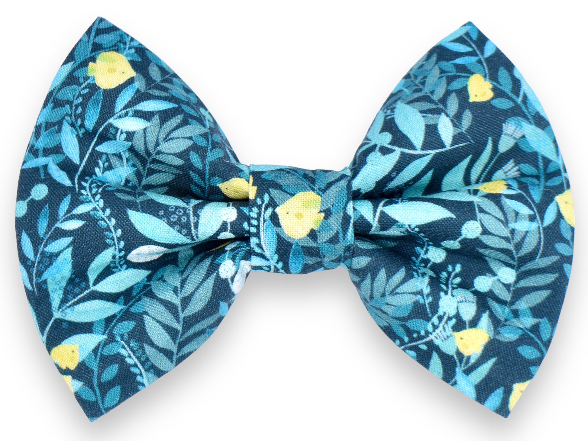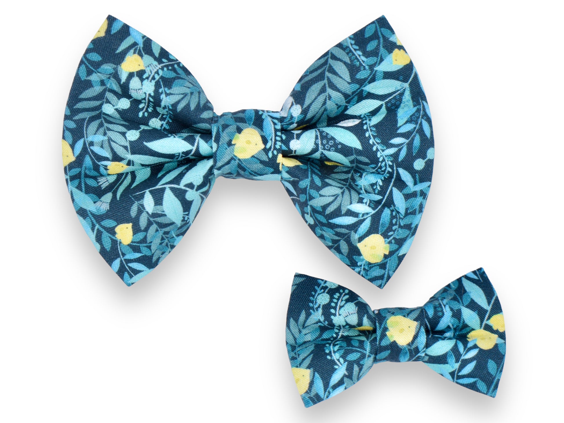 Our original style bow tie! This style features two elastic straps stitched to the backside of the bow tie for your pet’s collar to slide through. The elastic straps are triple-stitched to the bow tie for extra security. This style requires a collar for wear.