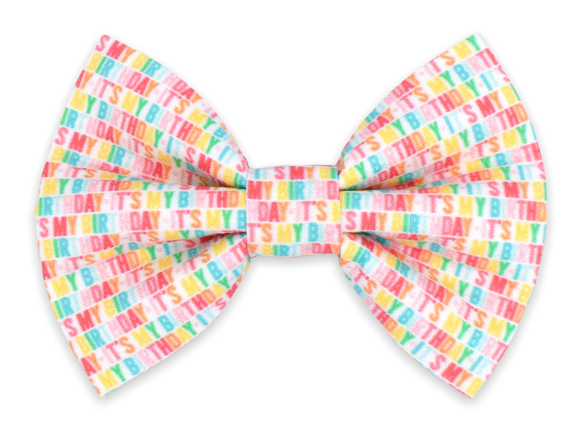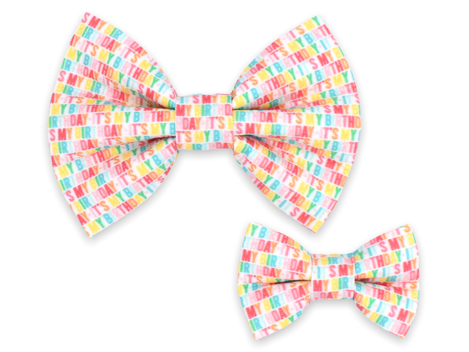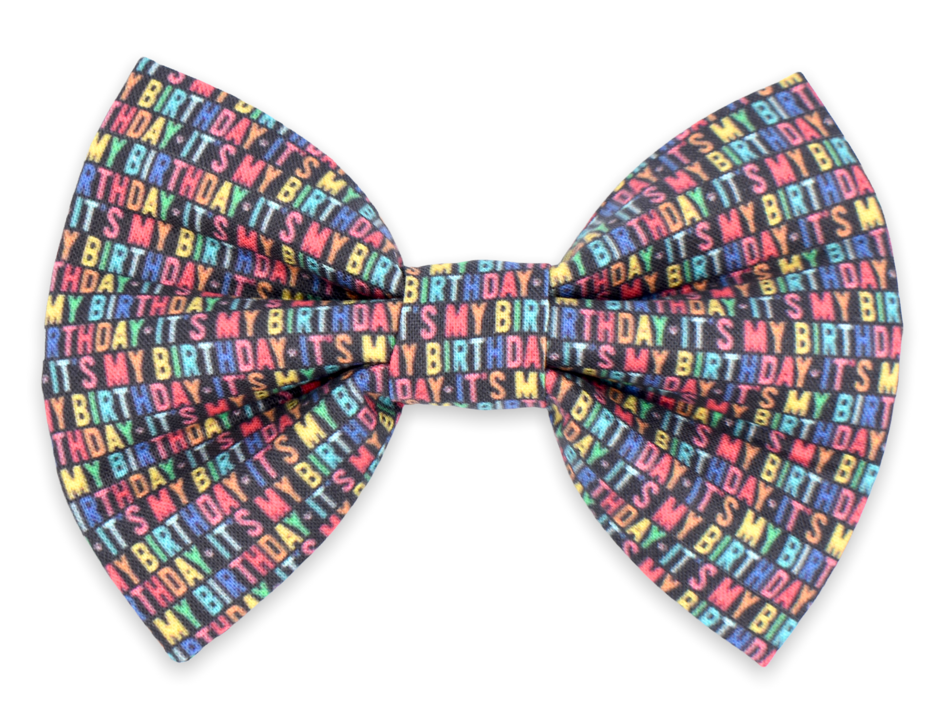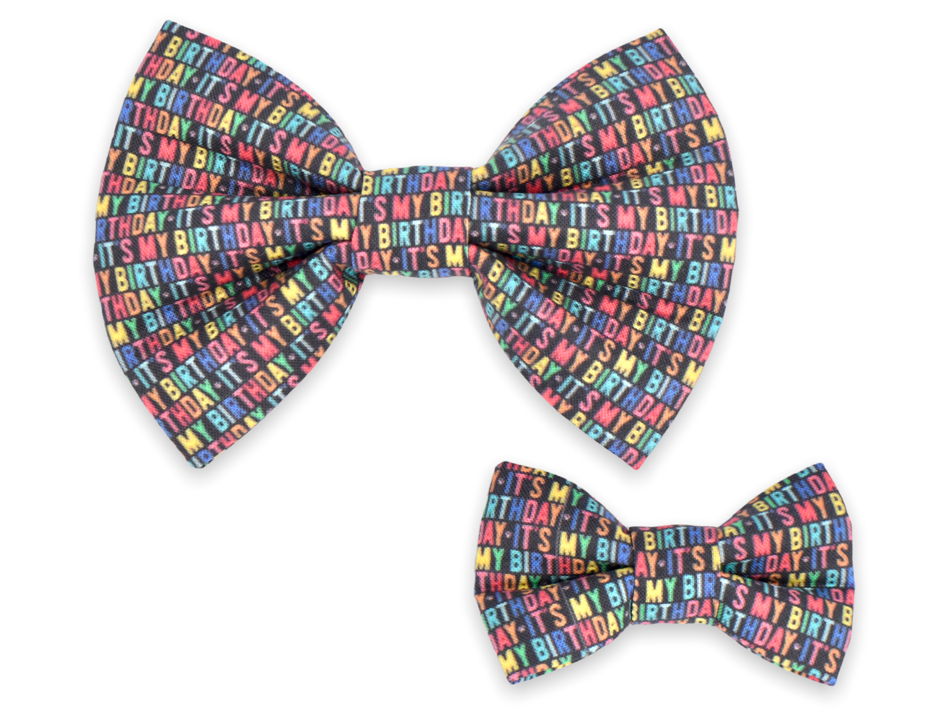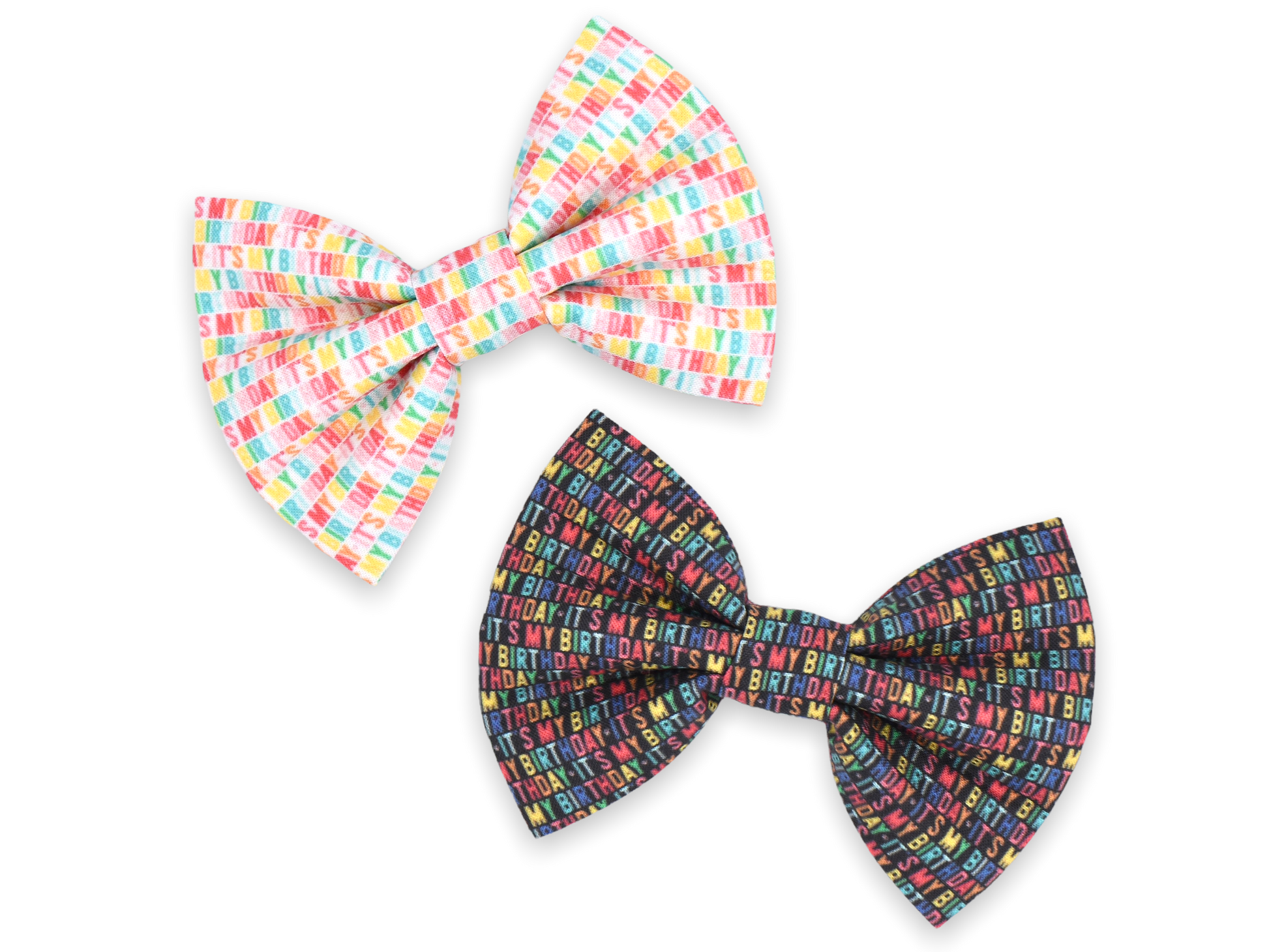 Our original style bow tie! This style features two elastic straps stitched to the backside of the bow tie for your pet’s collar to slide through. The elastic straps are triple-stitched to the bow tie for extra security. This style requires a collar for wear.