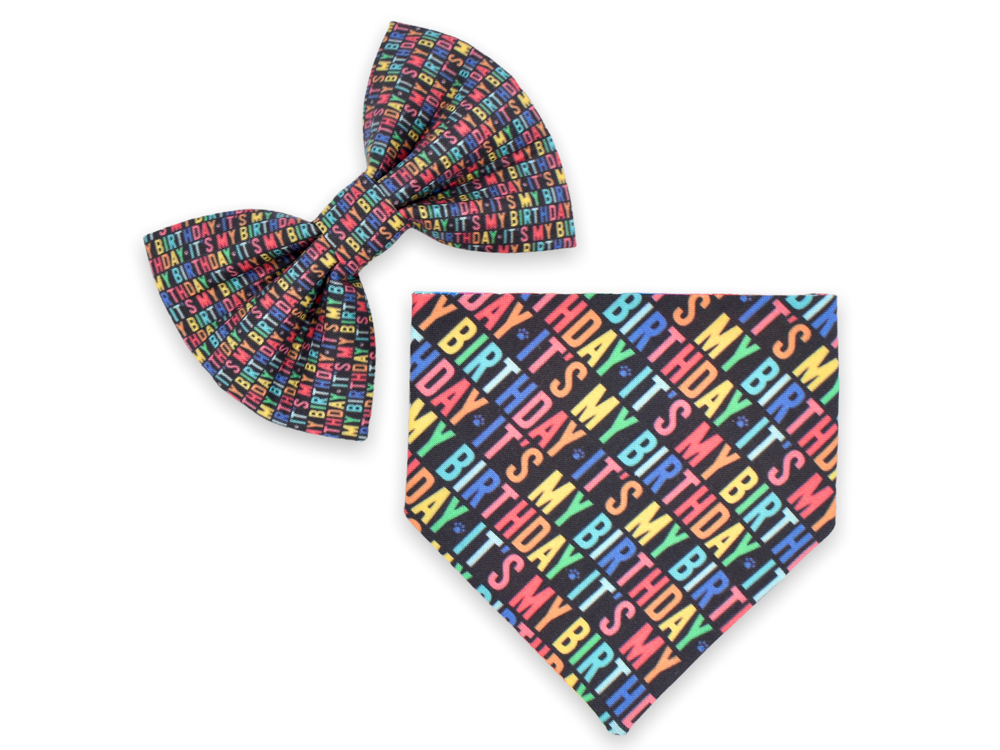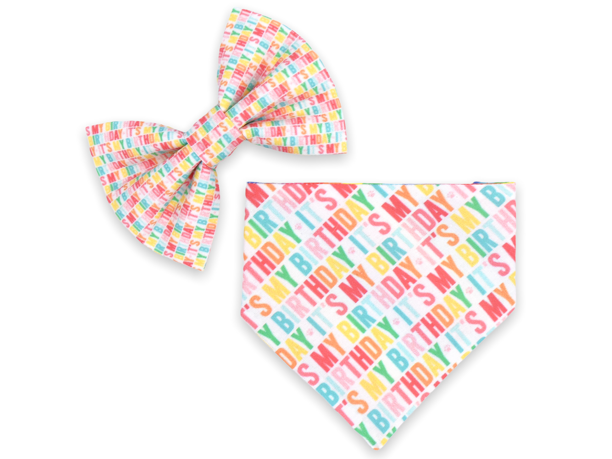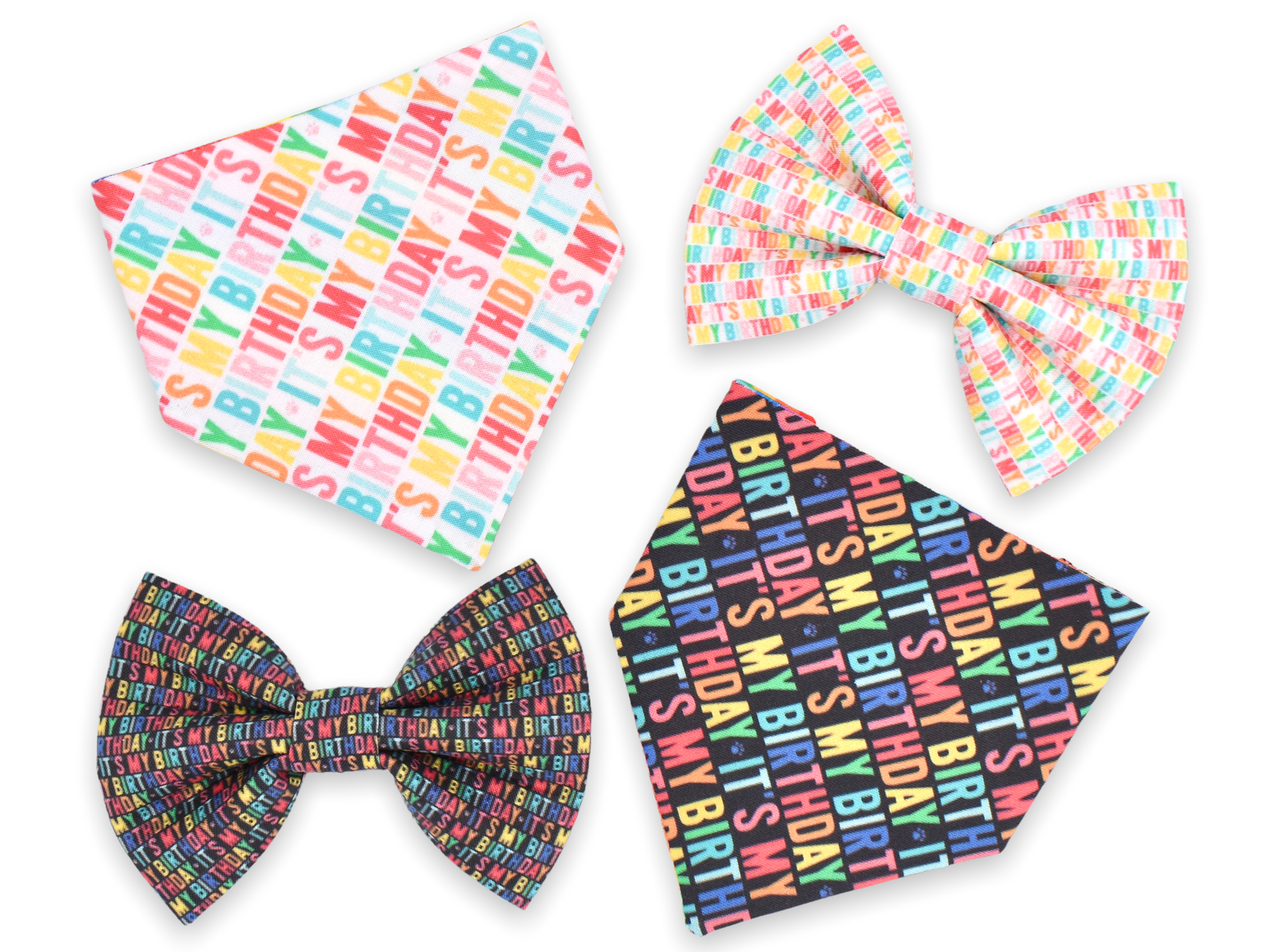 Accessories are not intended for rough wear. Bow ties with elastic collars and scrunchie-style bandanas completely circle your pet’s neck and are not made with a breakaway function. We do not recommend leaving your pet unsupervised while wearing any accessory. Spot clean mild detergent and lay flat to dry. If ironing, cover with thin cloth and use low heat and pressure.