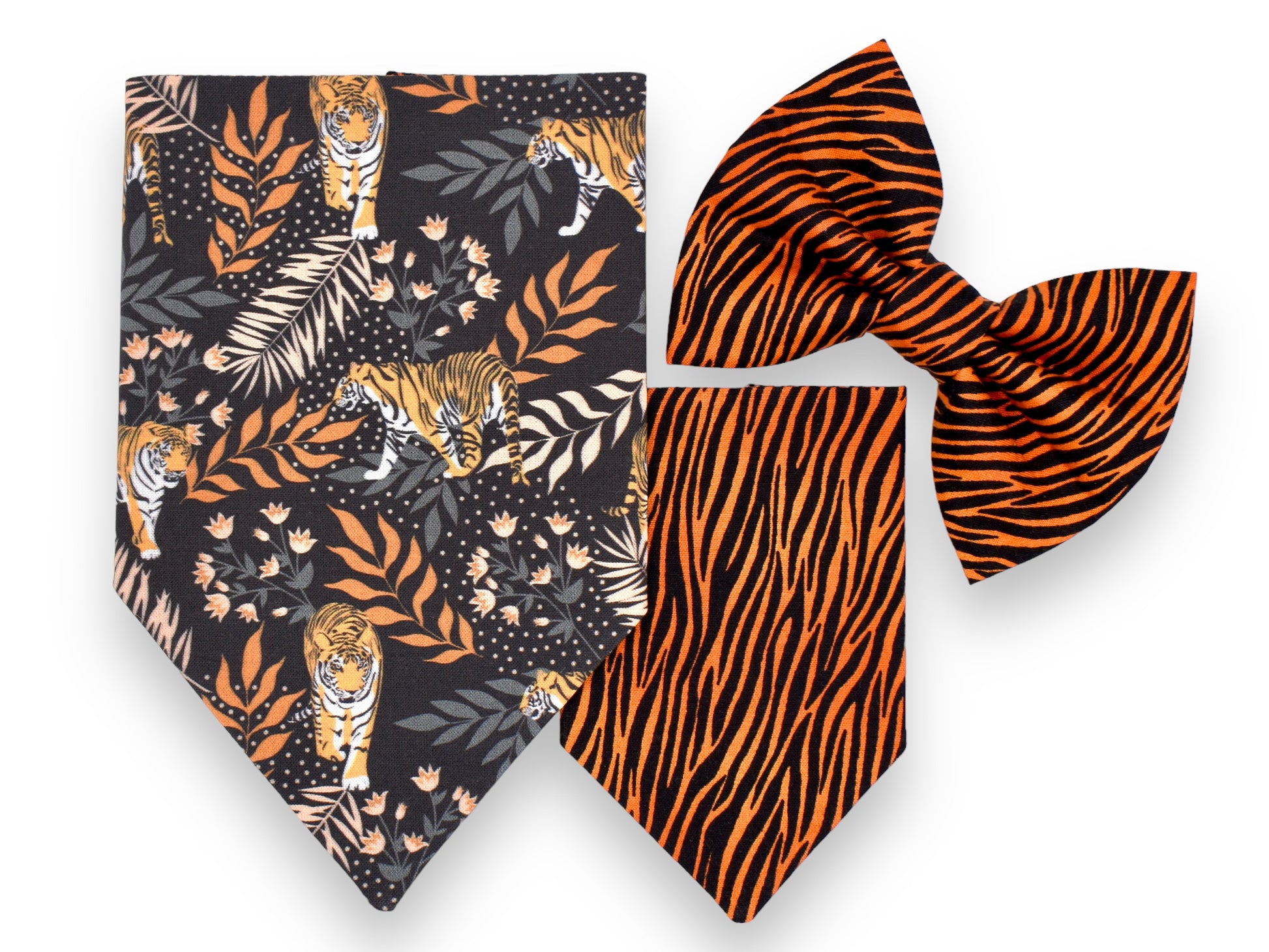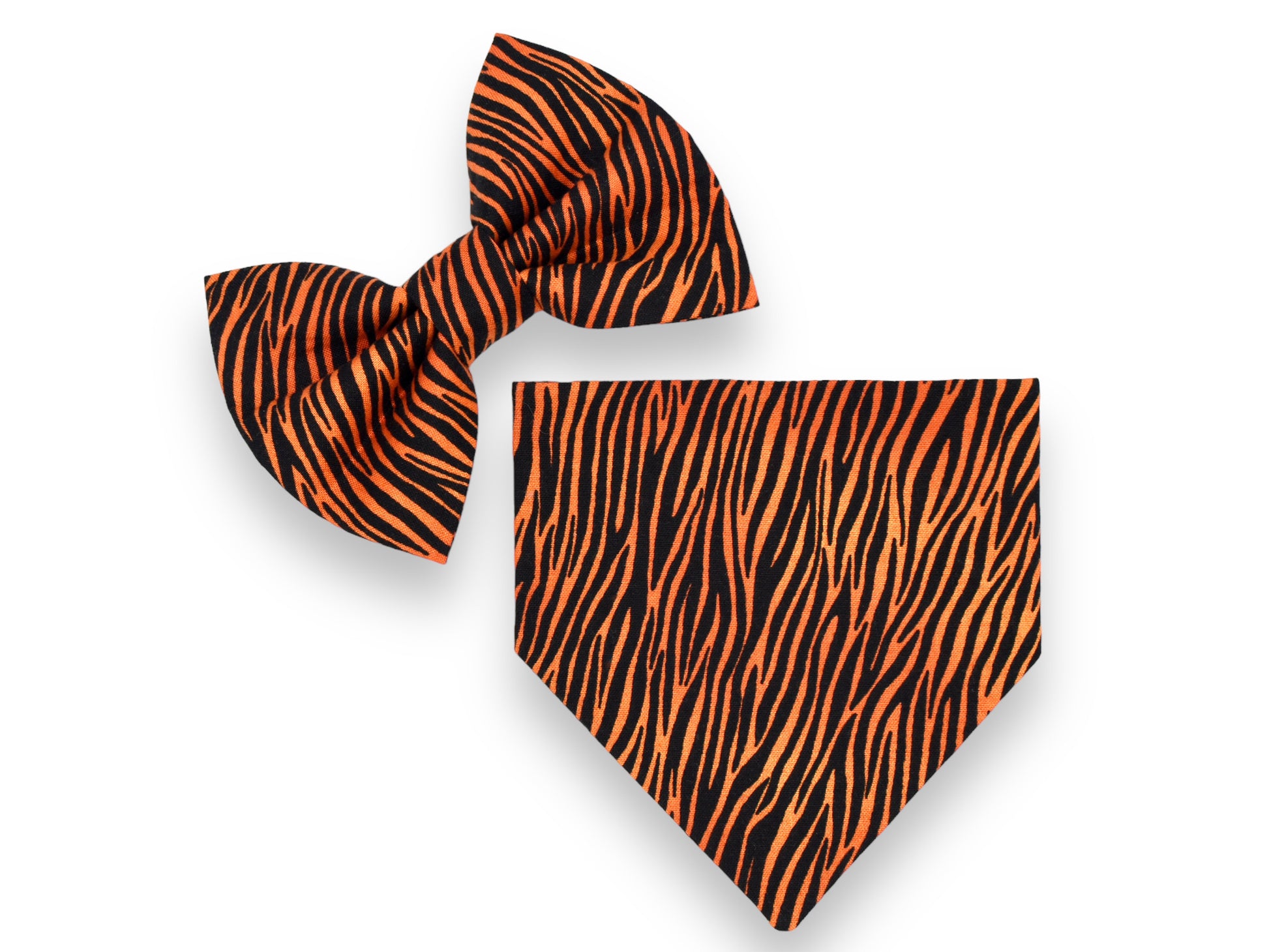 Accessories are not intended for rough wear. Bow ties with elastic collars and scrunchie-style bandanas completely circle your pet’s neck and are not made with a breakaway function. We do not recommend leaving your pet unsupervised while wearing any accessory. Spot clean mild detergent and lay flat to dry. If ironing, cover with thin cloth and use low heat and pressure.