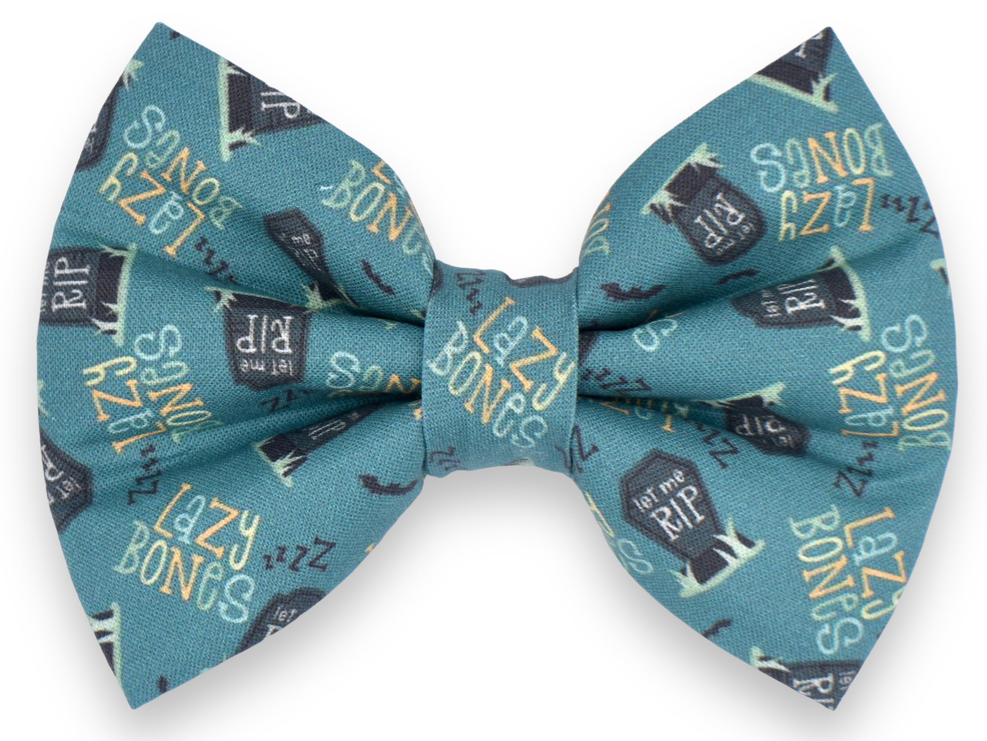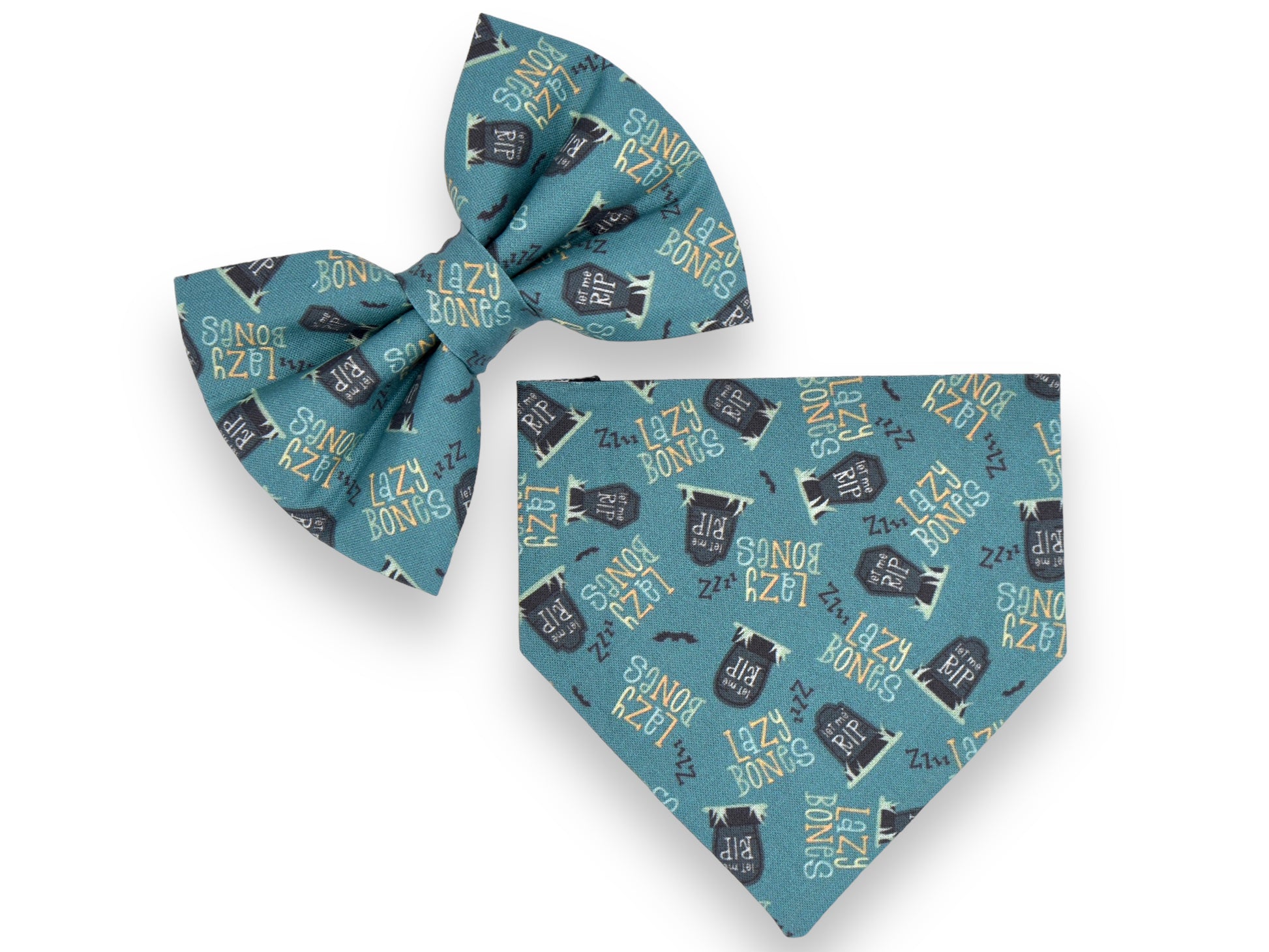 Accessories are not intended for rough wear. Bow ties with elastic collars and scrunchie-style bandanas completely circle your pet’s neck and are not made with a breakaway function. We do not recommend leaving your pet unsupervised while wearing any accessory. Spot clean mild detergent and lay flat to dry. If ironing, cover with thin cloth and use low heat and pressure.