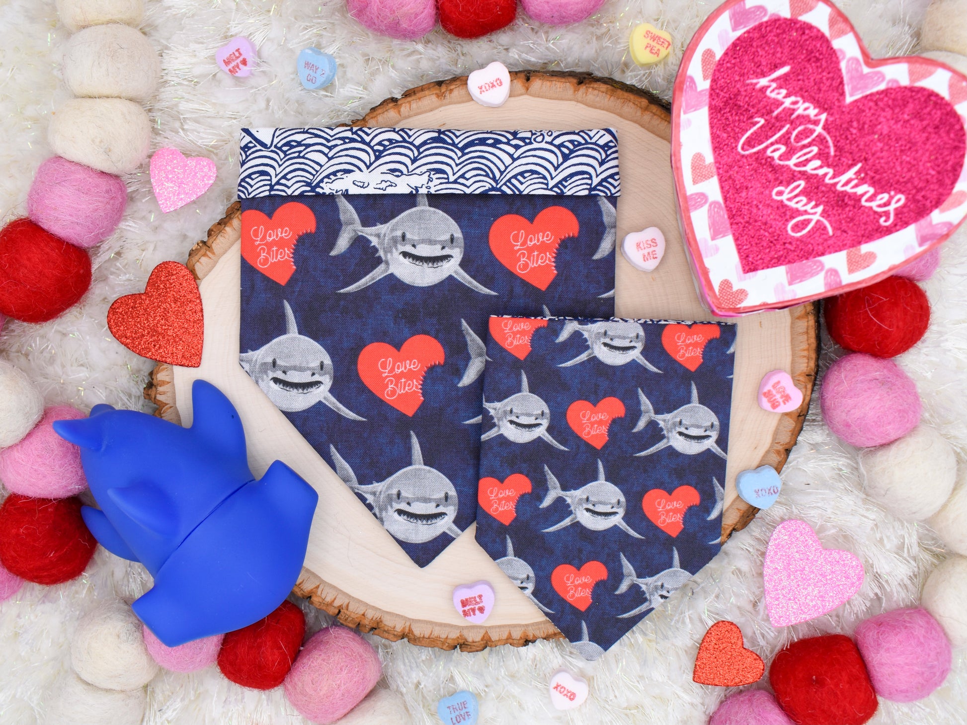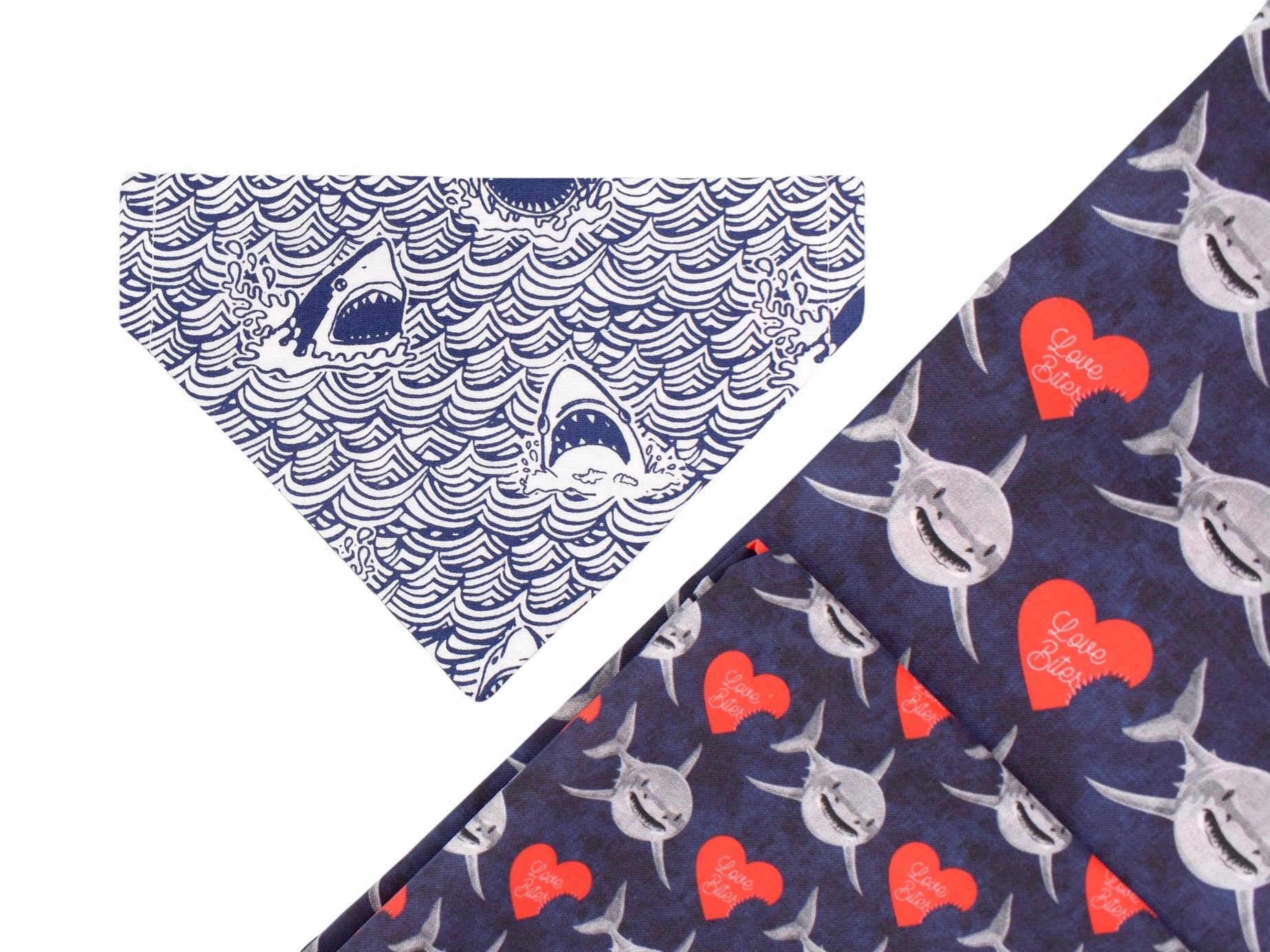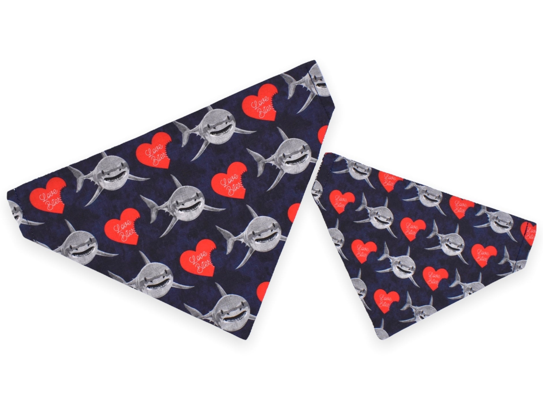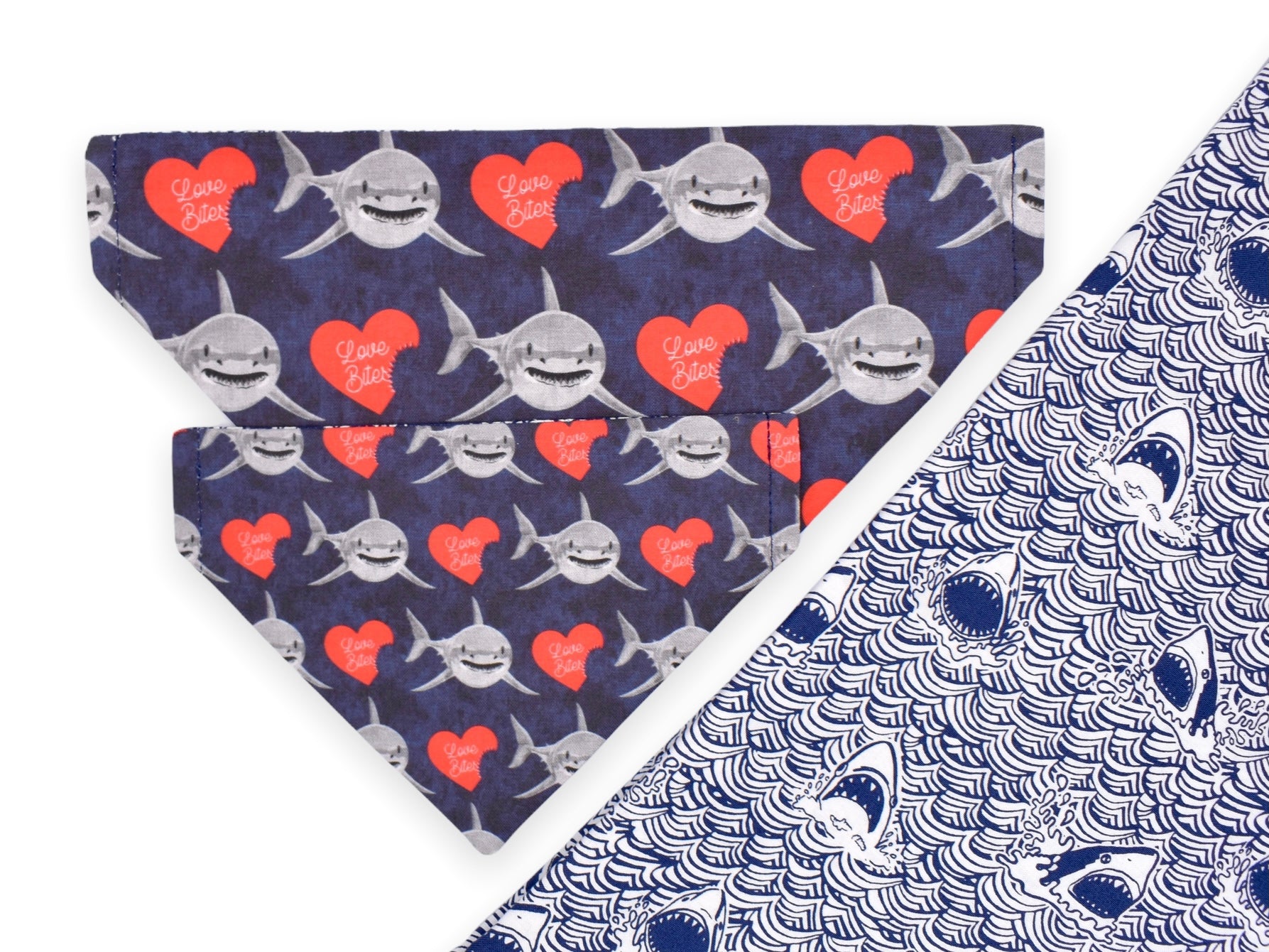 This style is dual-sided with a collar or theme-coordinated pattern on the reverse side, offering a two-for-one style option! This style can be worn by slipping your pet’s collar through the openings at the top of the bandana, and then clipping the collar around your pet’s neck. This style requires a collar for wear.