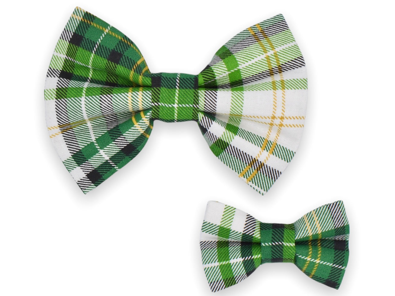 Our original style bow tie! This style features two elastic straps stitched to the backside of the bow tie for your pet’s collar to slide through. The elastic straps are triple-stitched to the bow tie for extra security. This style requires a collar for wear.