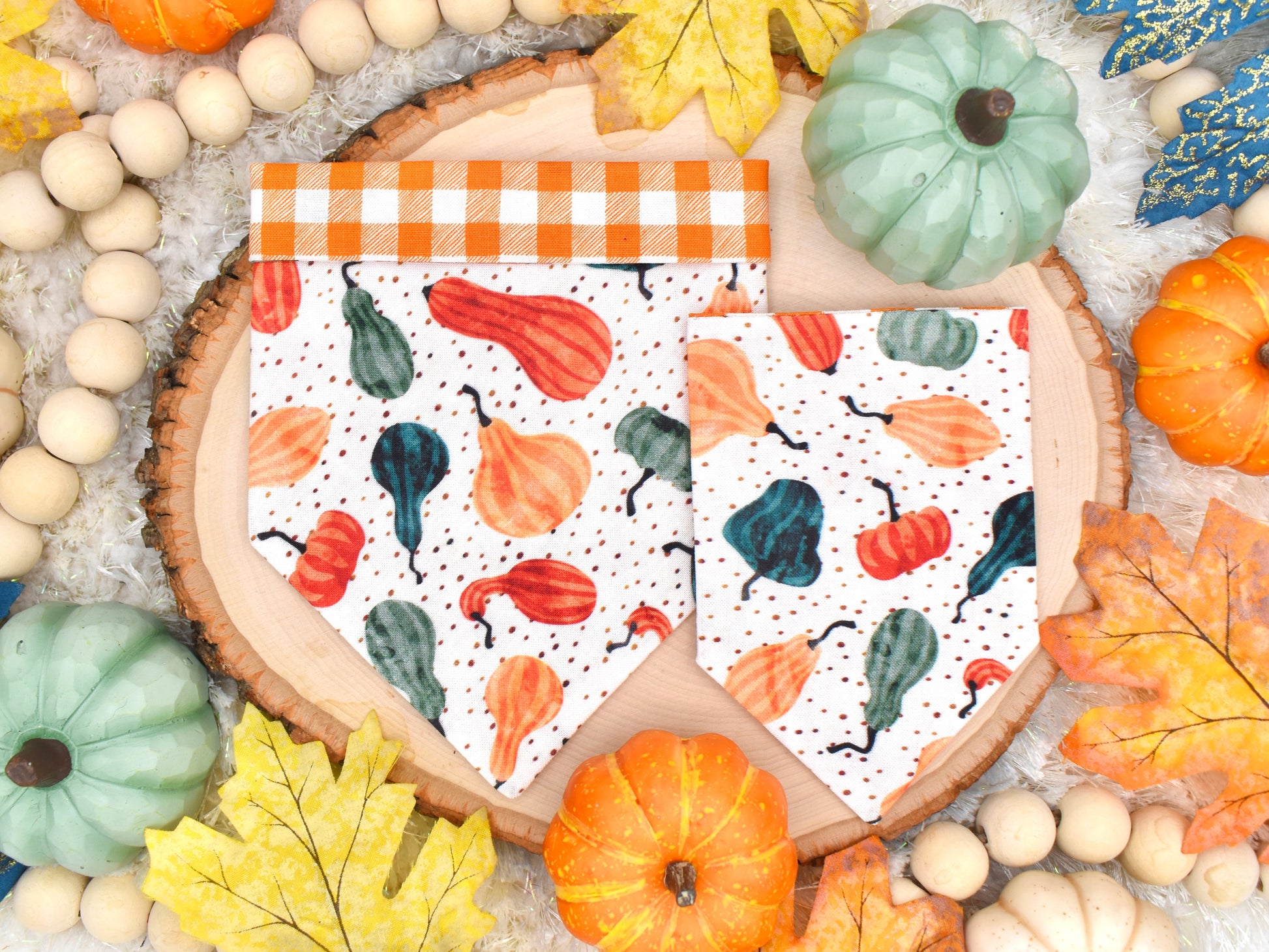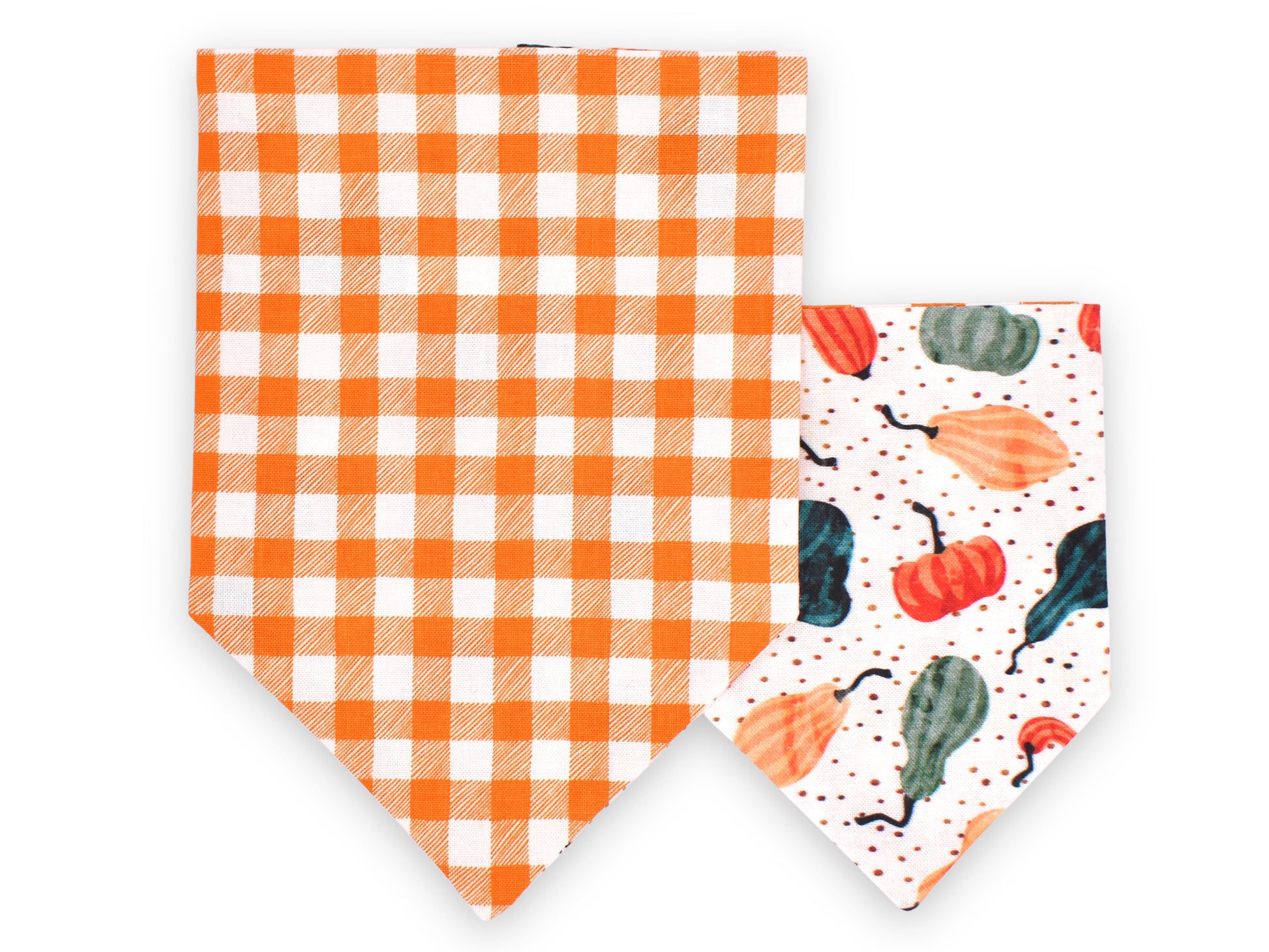 This style is dual-sided with a collar or theme-coordinated pattern on the reverse side, offering a two-for-one style option! This style can be worn by slipping your pet’s collar through the openings at the top of the bandana, and then clipping the collar around your pet’s neck. This style requires a collar for wear.