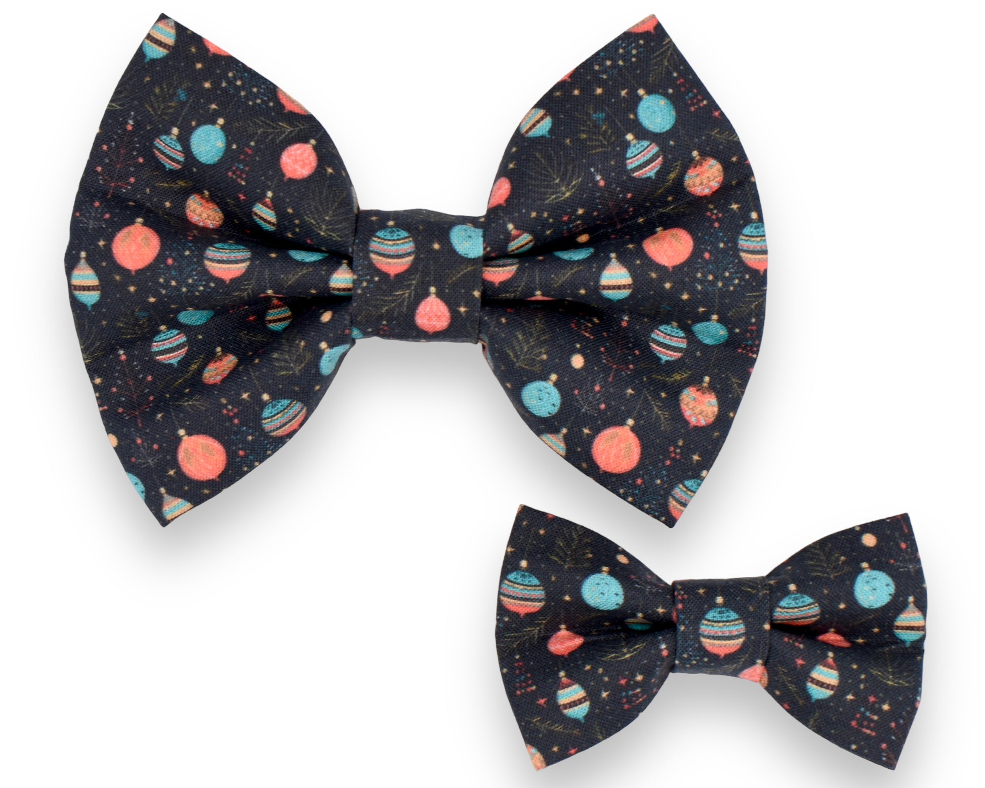 Our original style bow tie! This style features two elastic straps stitched to the backside of the bow tie for your pet’s collar to slide through. The elastic straps are triple-stitched to the bow tie for extra security. This style requires a collar for wear.