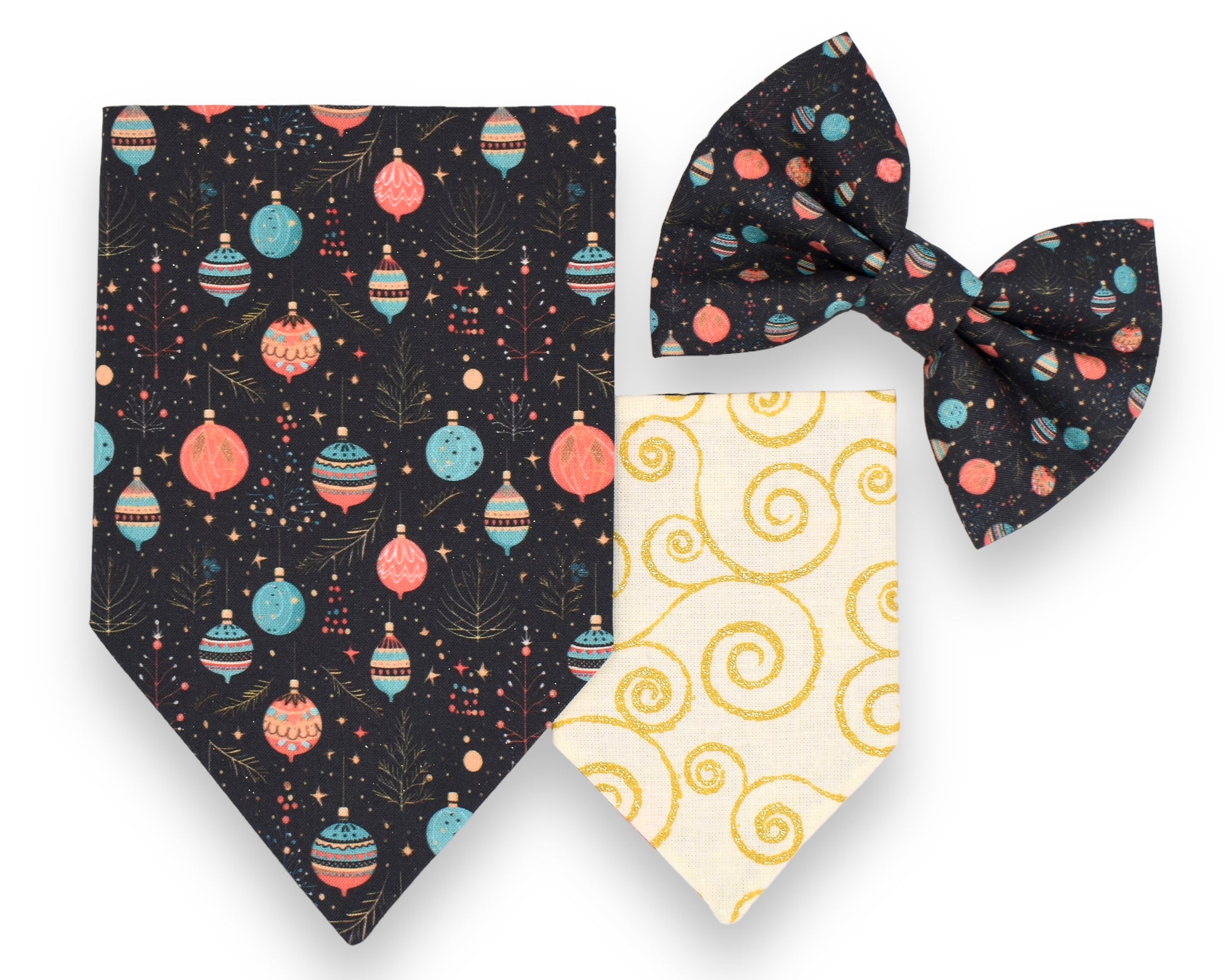 Items shown in photos are sizes Large & Small. Pattern placement will vary. This bandana features glitter accents on the reverse side. Glitter will shed naturally. Follow all care instructions to ensure the longevity of your accessories.