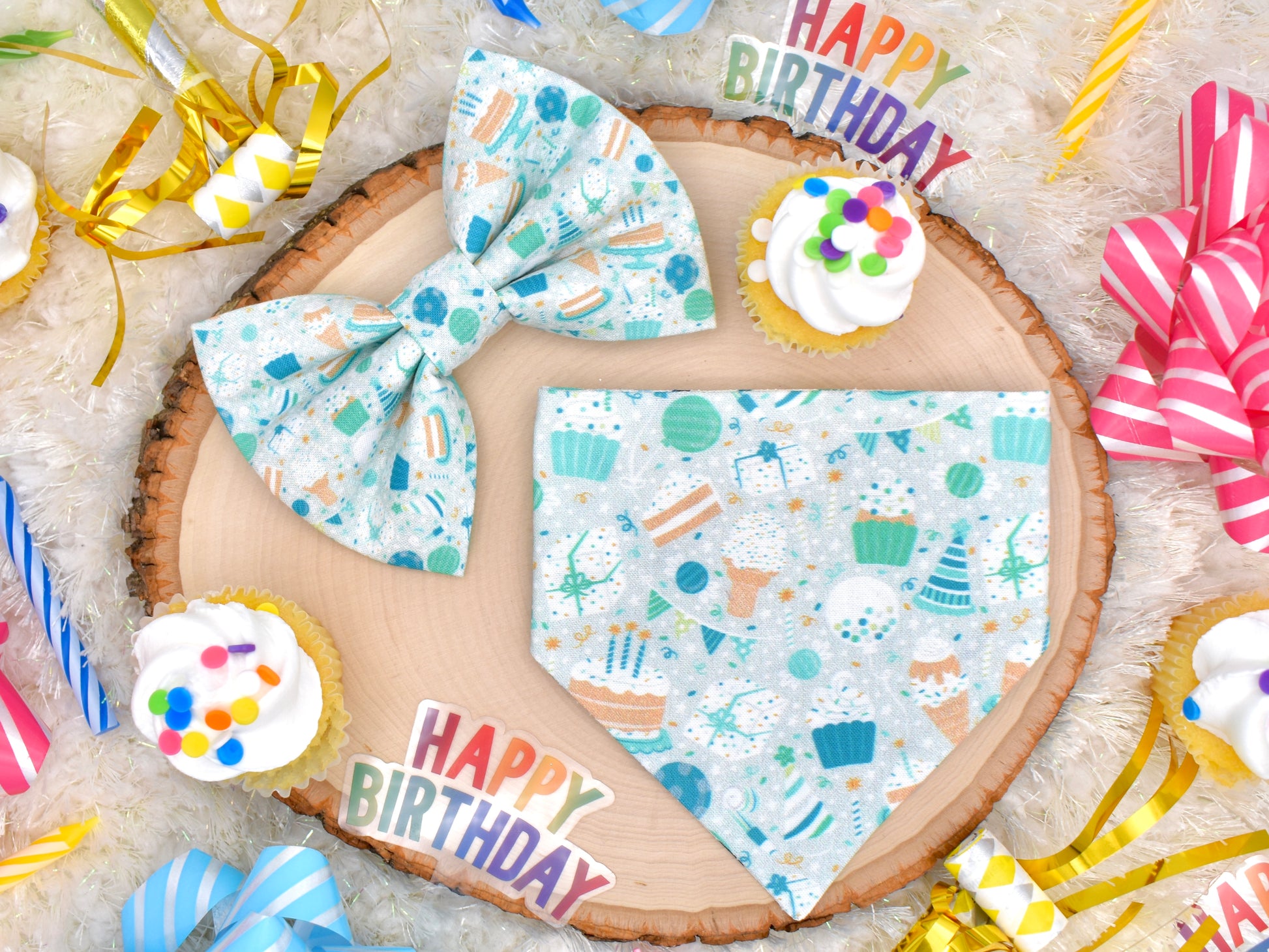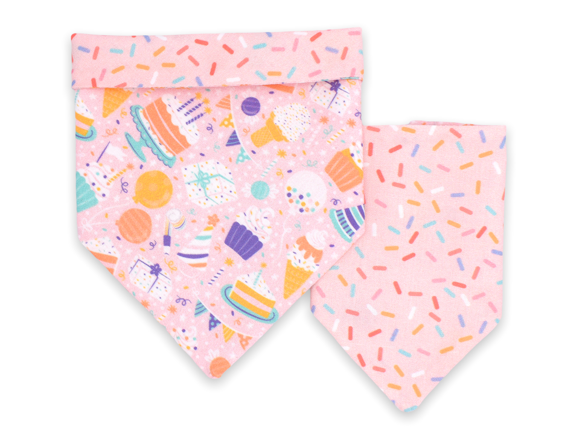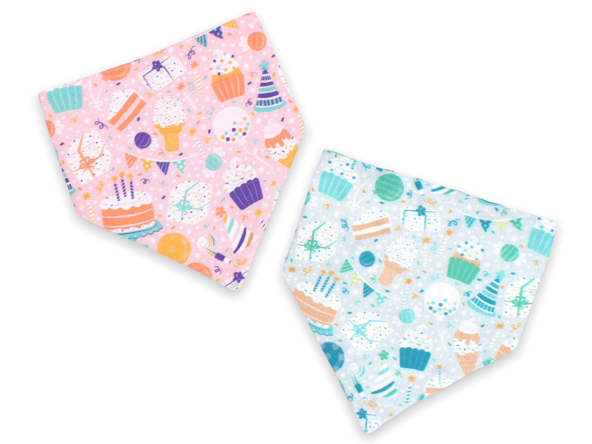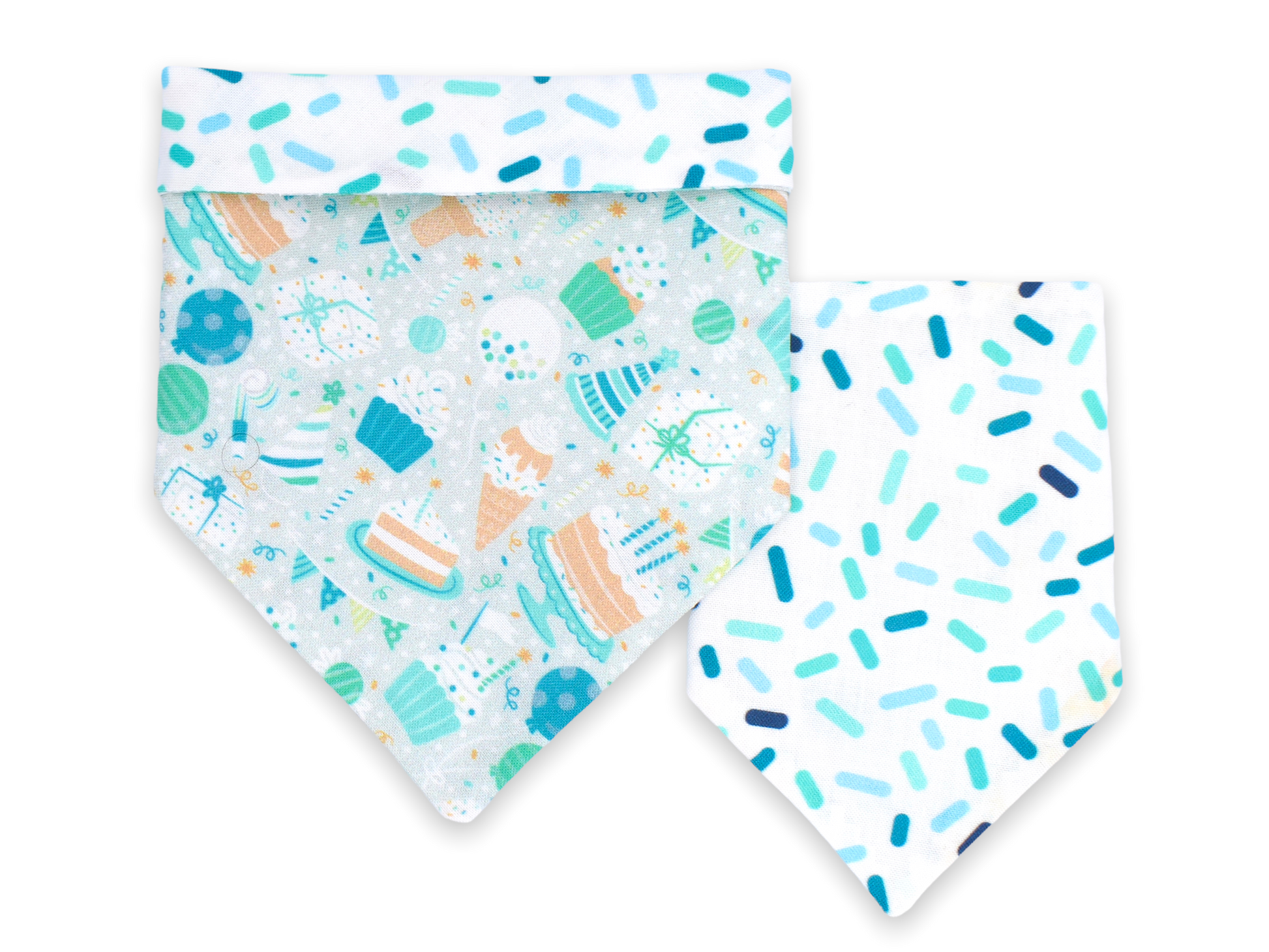 This style is dual-sided with a collar or theme-coordinated pattern on the reverse side, offering a two-for-one style option! This style can be worn by slipping your pet’s collar through the openings at the top of the bandana, and then clipping the collar around your pet’s neck. This style requires a collar for wear.