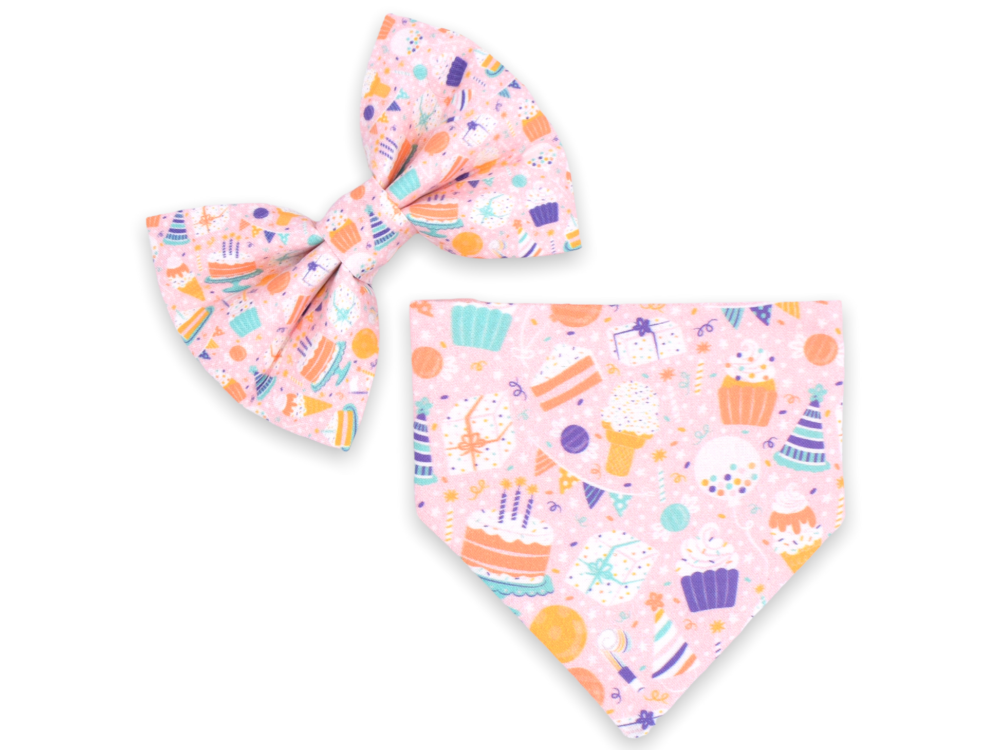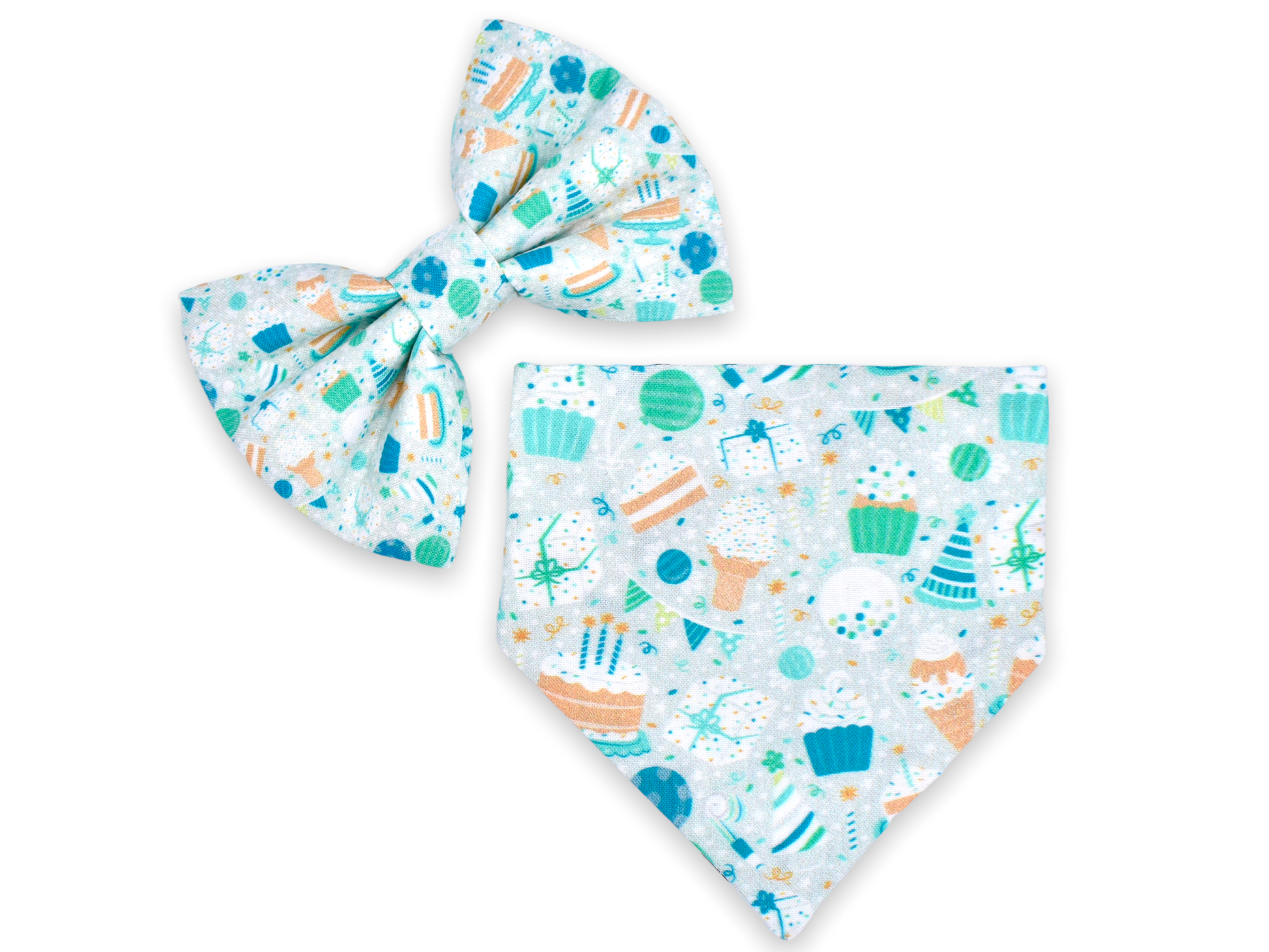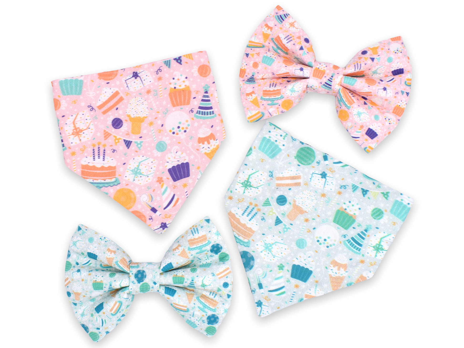 Accessories are not intended for rough wear. Bow ties with elastic collars and scrunchie-style bandanas completely circle your pet’s neck and are not made with a breakaway function. We do not recommend leaving your pet unsupervised while wearing any accessory. Spot clean mild detergent and lay flat to dry. If ironing, cover with thin cloth and use low heat and pressure.