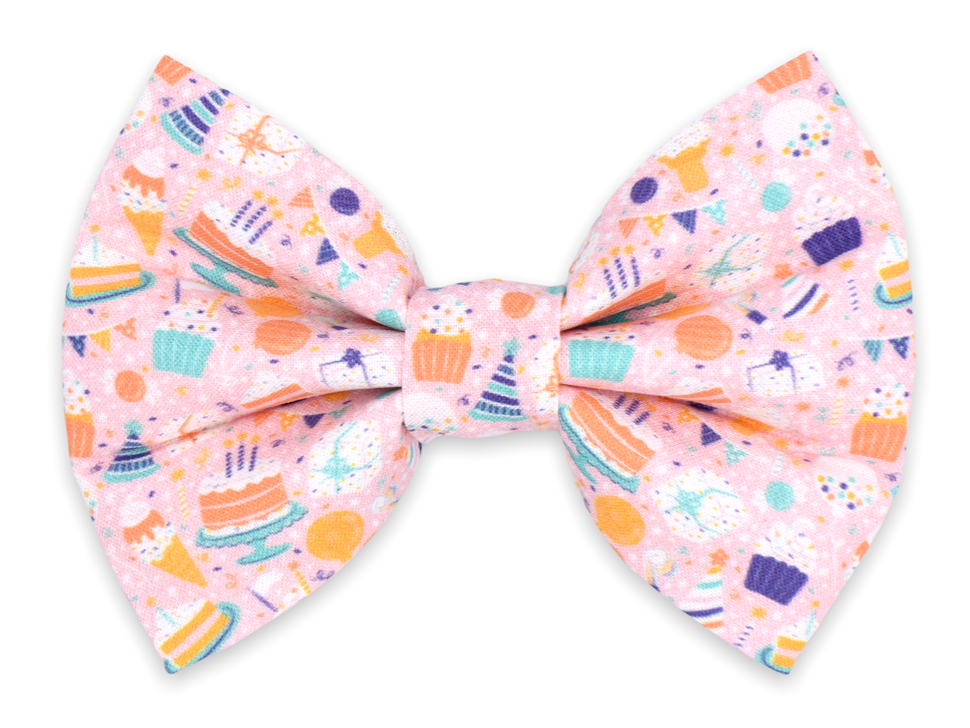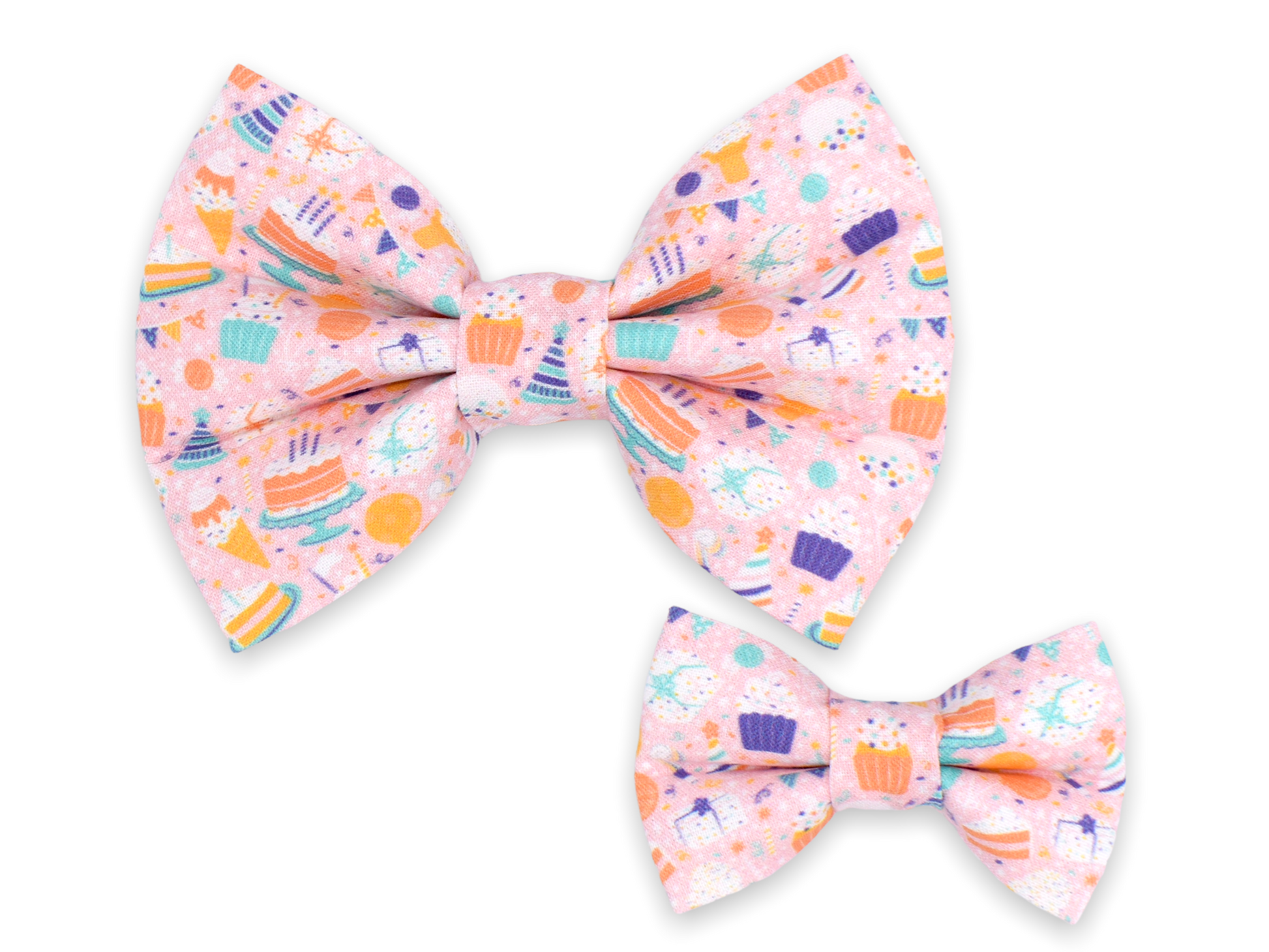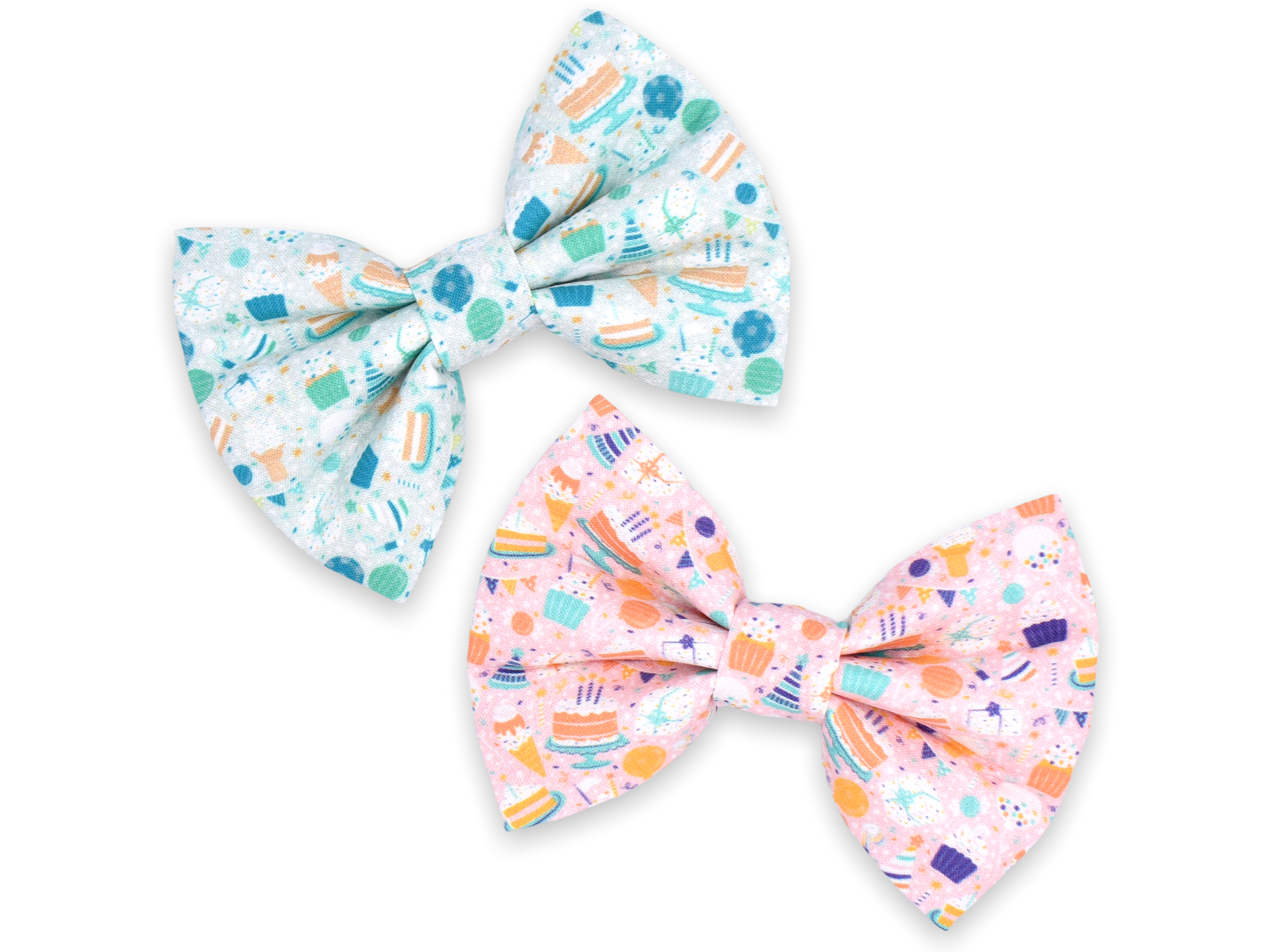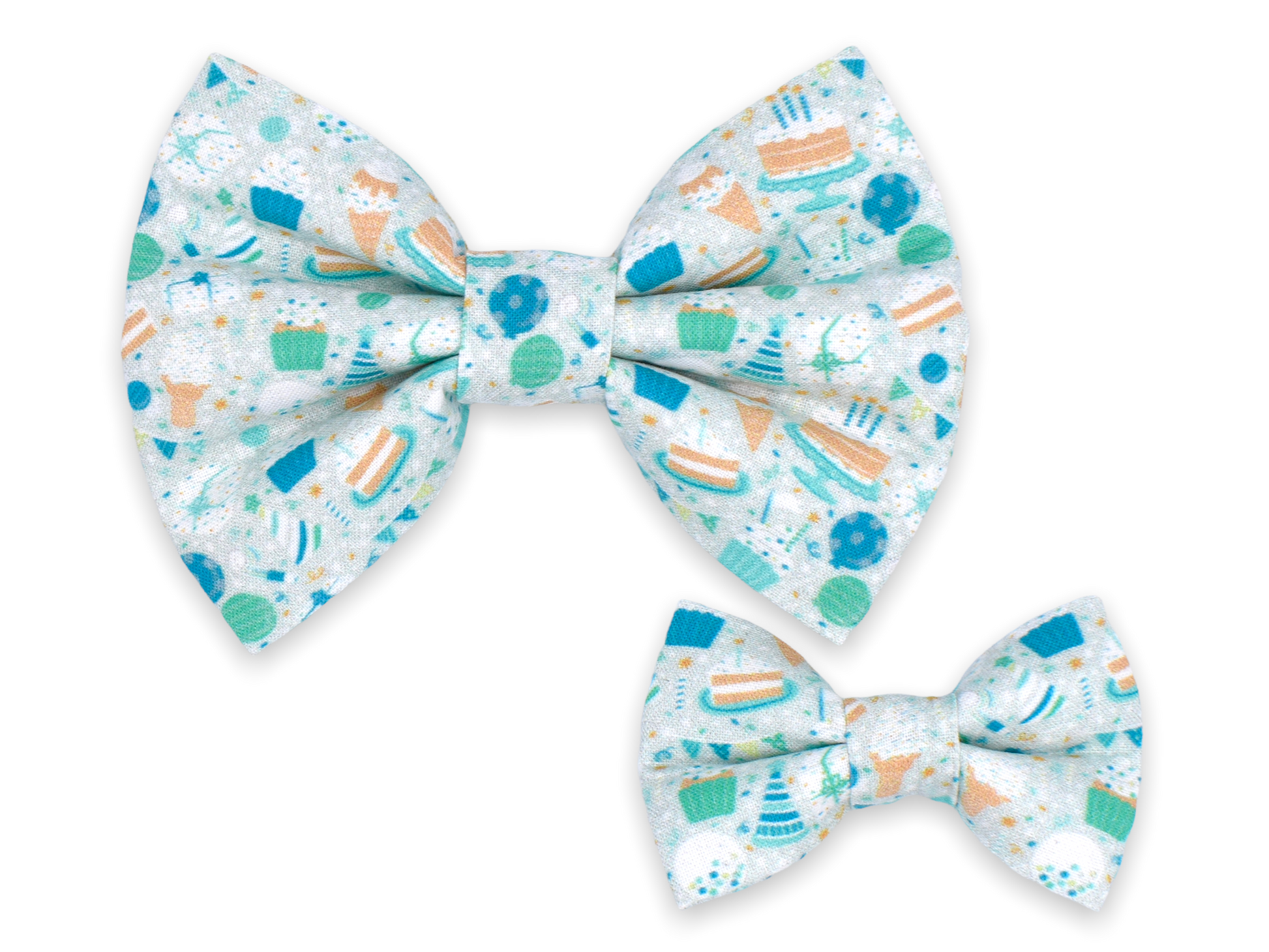 Our original style bow tie! This style features two elastic straps stitched to the backside of the bow tie for your pet’s collar to slide through. The elastic straps are triple-stitched to the bow tie for extra security. This style requires a collar for wear.
