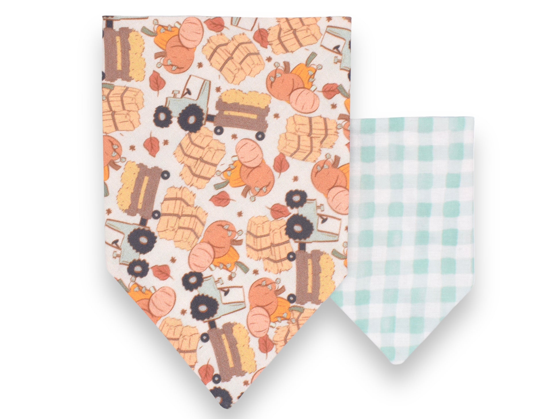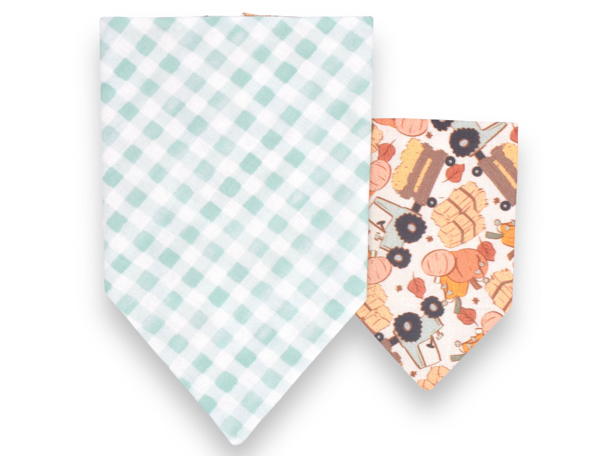 This style is dual-sided with a collar or theme-coordinated pattern on the reverse side, offering a two-for-one style option! This style can be worn by slipping your pet’s collar through the openings at the top of the bandana, and then clipping the collar around your pet’s neck. This style requires a collar for wear.