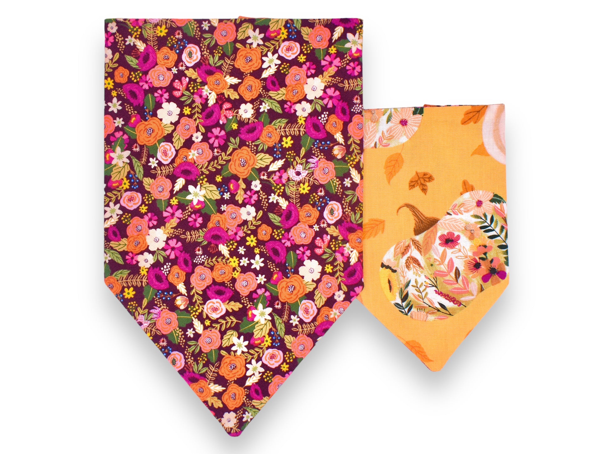 This style is dual-sided with a collar or theme-coordinated pattern on the reverse side, offering a two-for-one style option! This style can be worn by slipping your pet’s collar through the openings at the top of the bandana, and then clipping the collar around your pet’s neck. This style requires a collar for wear.