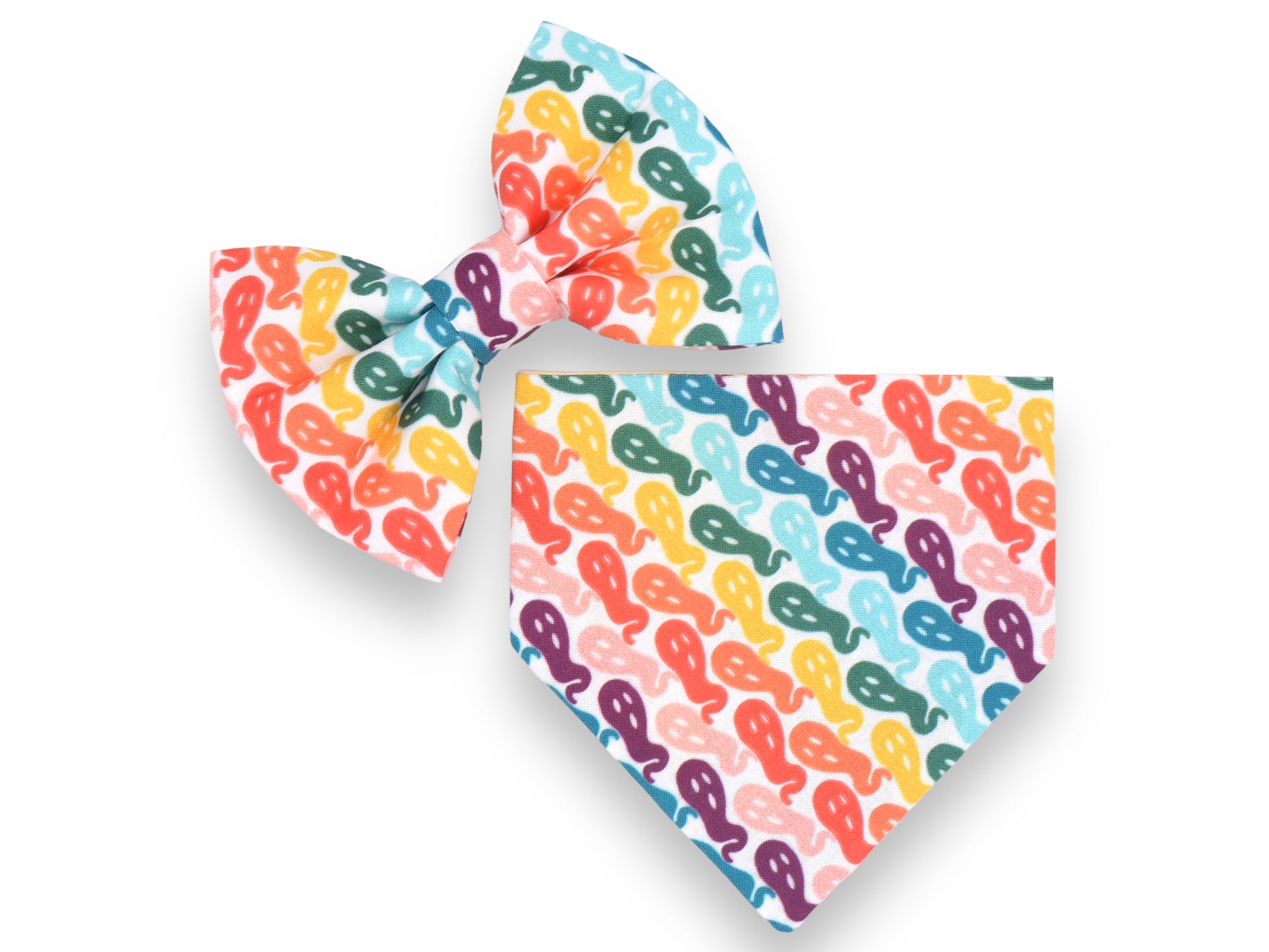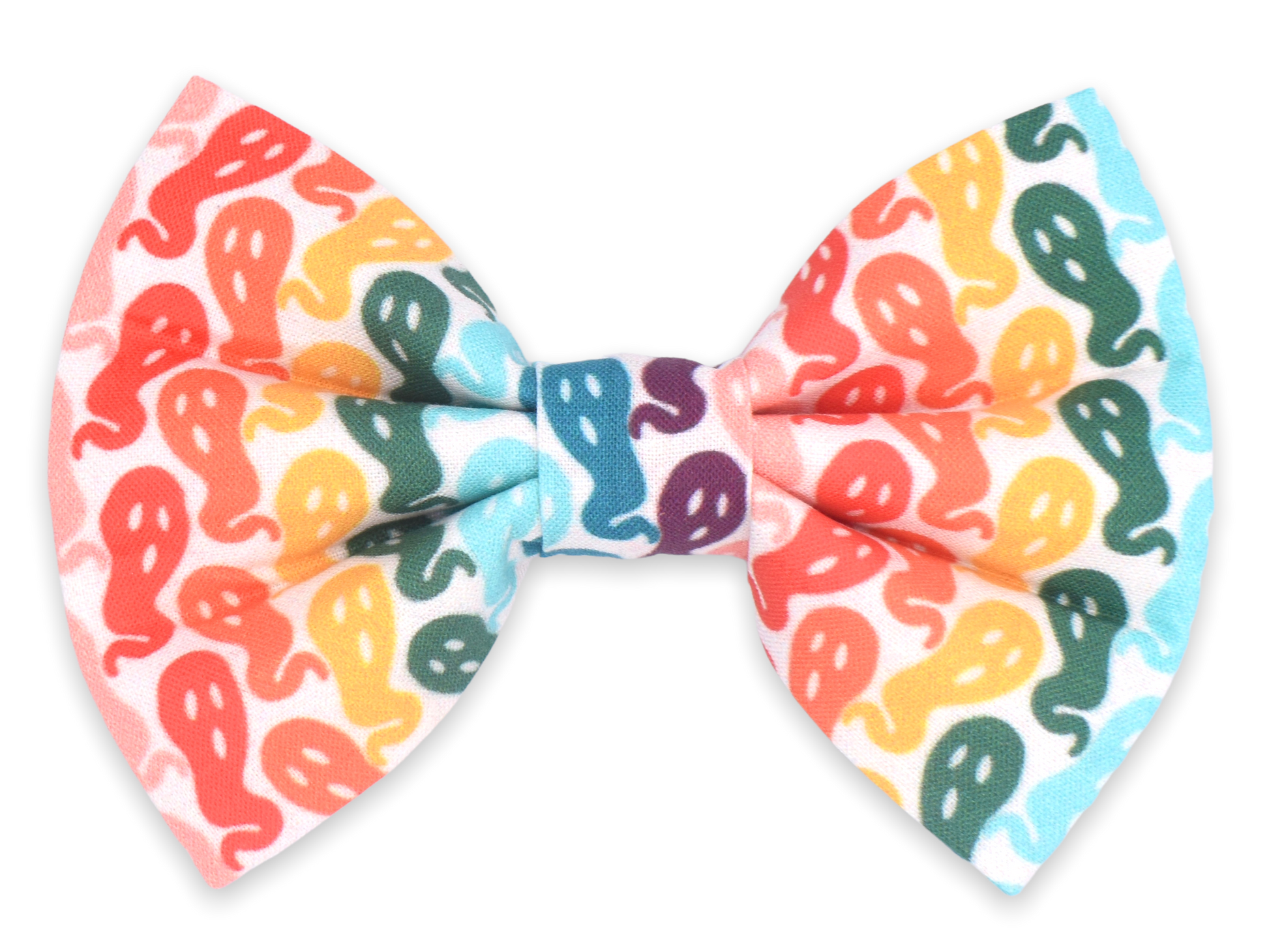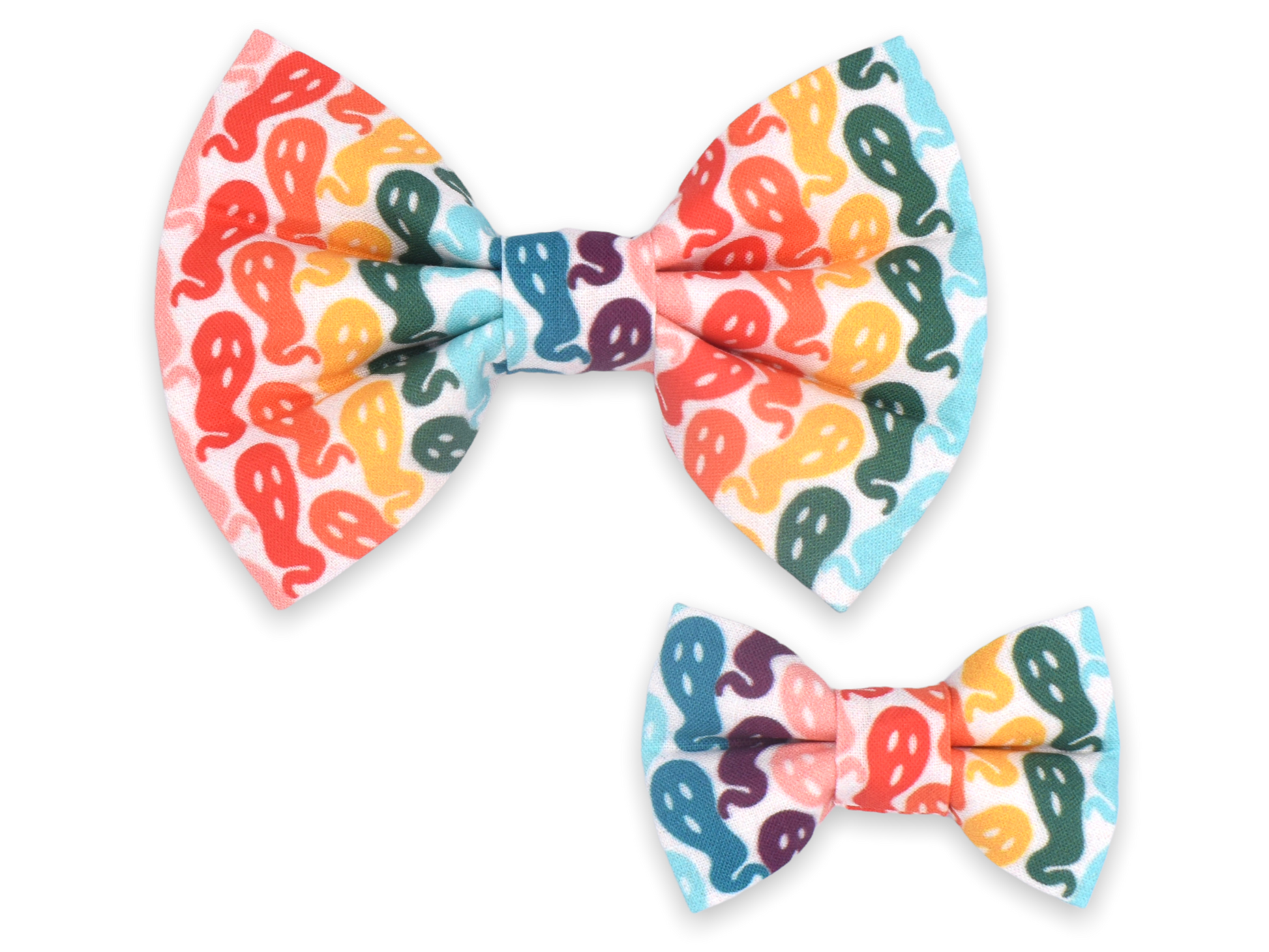 Our original style bow tie! This style features two elastic straps stitched to the backside of the bow tie for your pet’s collar to slide through. The elastic straps are triple-stitched to the bow tie for extra security. This style requires a collar for wear.