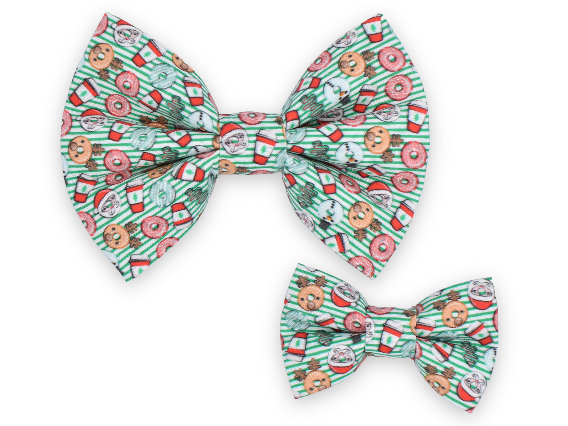 Our original style bow tie! This style features two elastic straps stitched to the backside of the bow tie for your pet’s collar to slide through. The elastic straps are triple-stitched to the bow tie for extra security. This style requires a collar for wear.