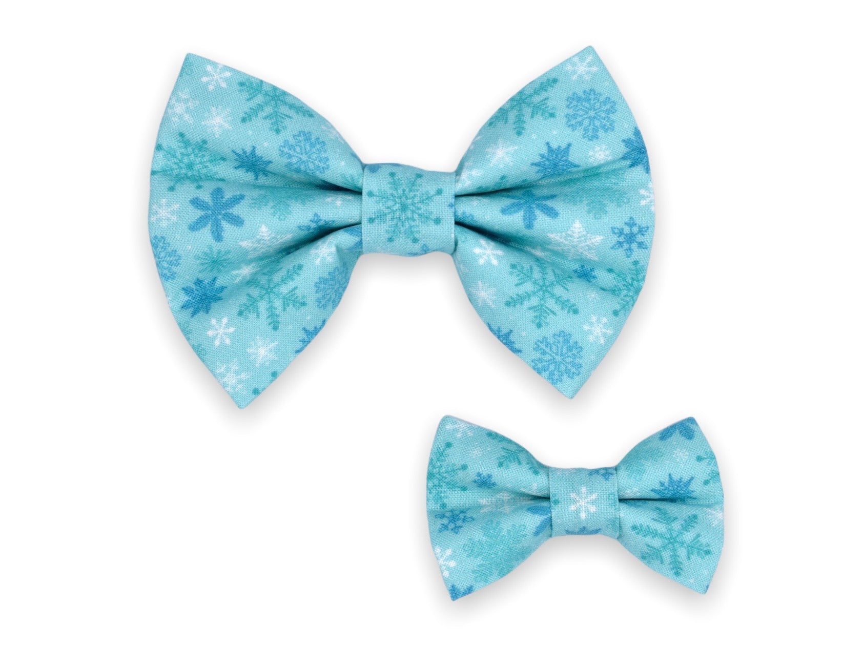 Our original style bow tie! This style features two elastic straps stitched to the backside of the bow tie for your pet’s collar to slide through. The elastic straps are triple-stitched to the bow tie for extra security. This style requires a collar for wear.