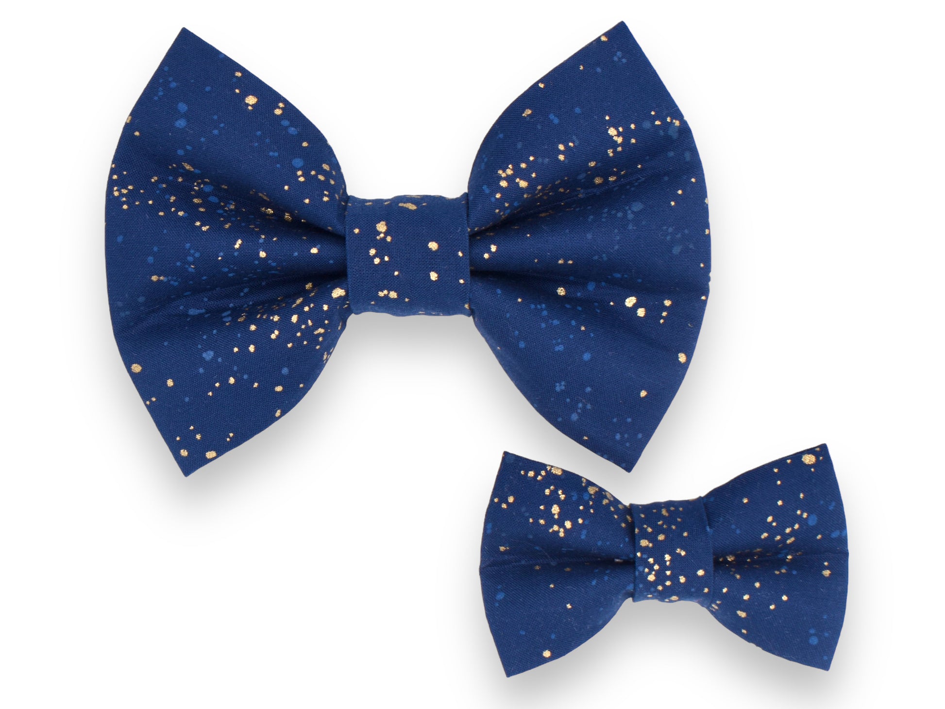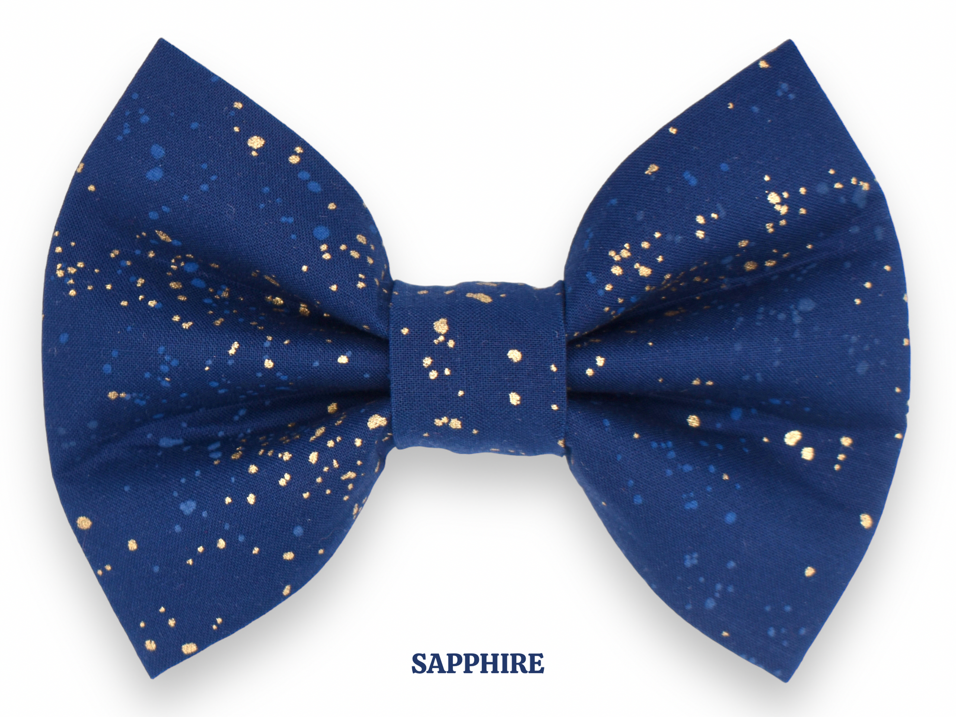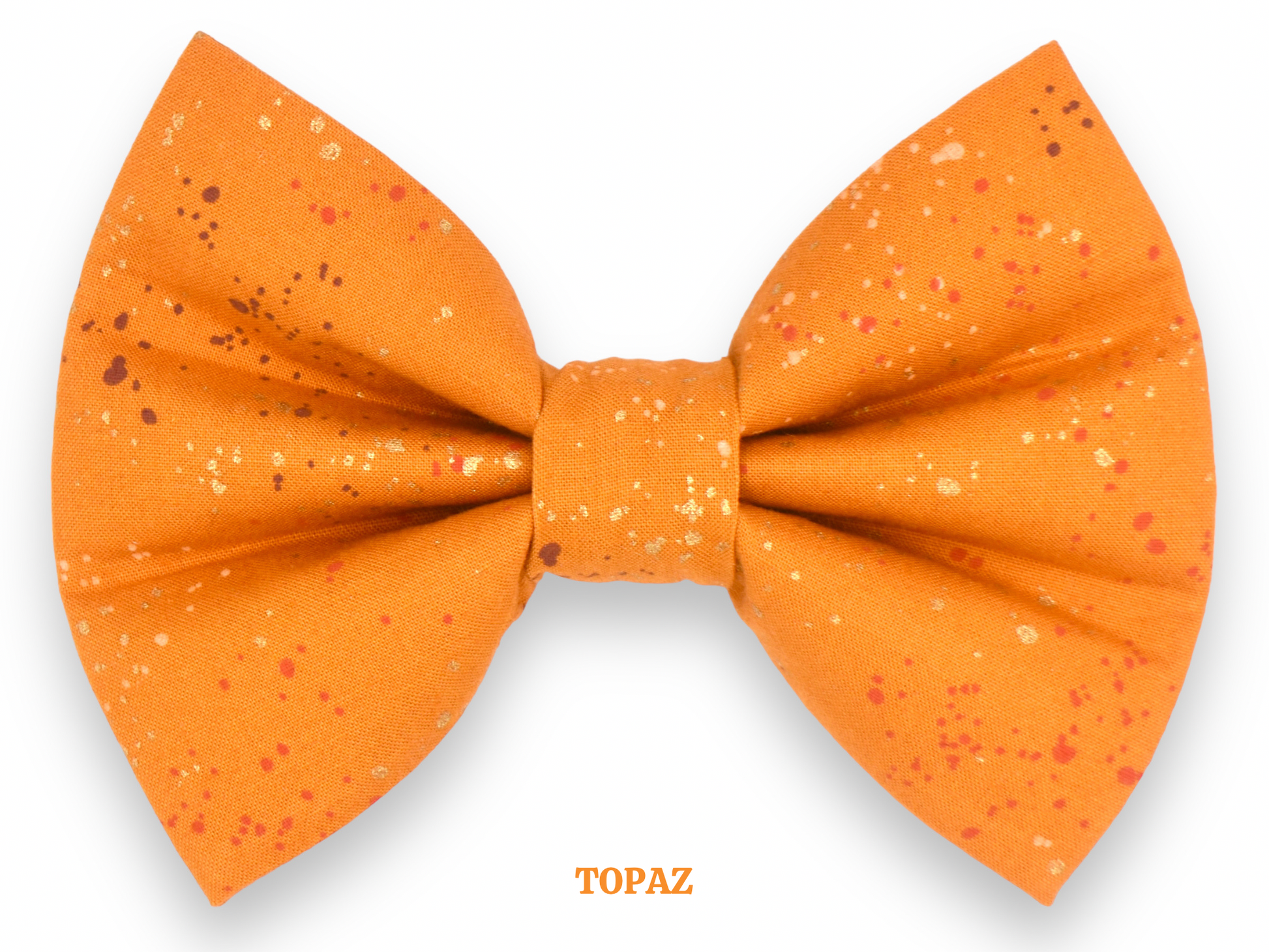 Our original style bow tie! This style features two elastic straps stitched to the backside of the bow tie for your pet’s collar to slide through. The elastic straps are triple-stitched to the bow tie for extra security. This style requires a collar for wear.