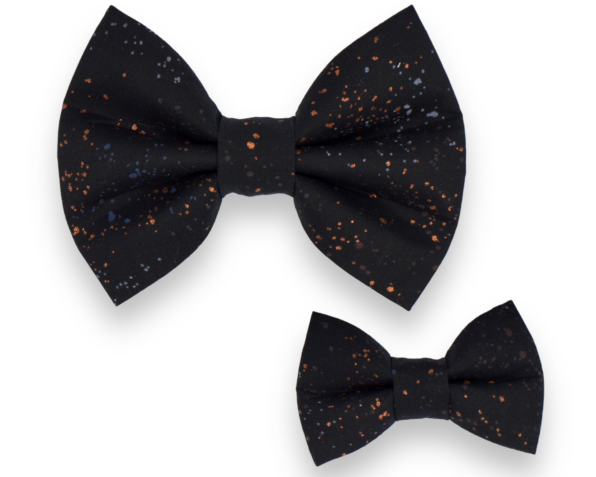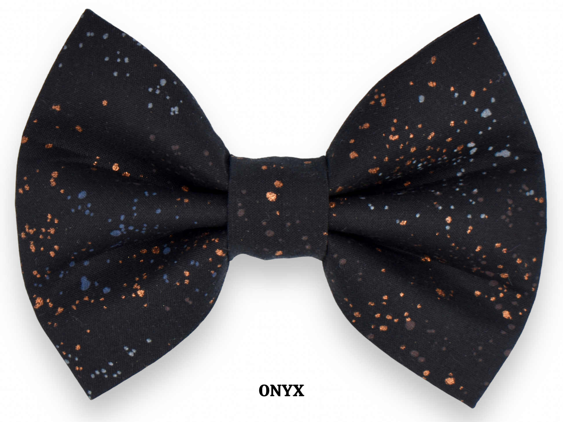 Items shown in photos are sizes Large & Small. Pattern placement will vary. These bow ties features metallic accents. Follow all care instructions to ensure the longevity of your accessories.