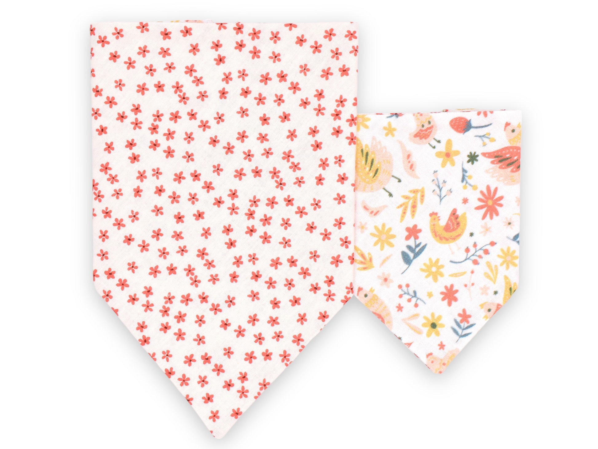 This style is dual-sided with a collar or theme-coordinated pattern on the reverse side, offering a two-for-one style option! This style can be worn by slipping your pet’s collar through the openings at the top of the bandana, and then clipping the collar around your pet’s neck. This style requires a collar for wear.