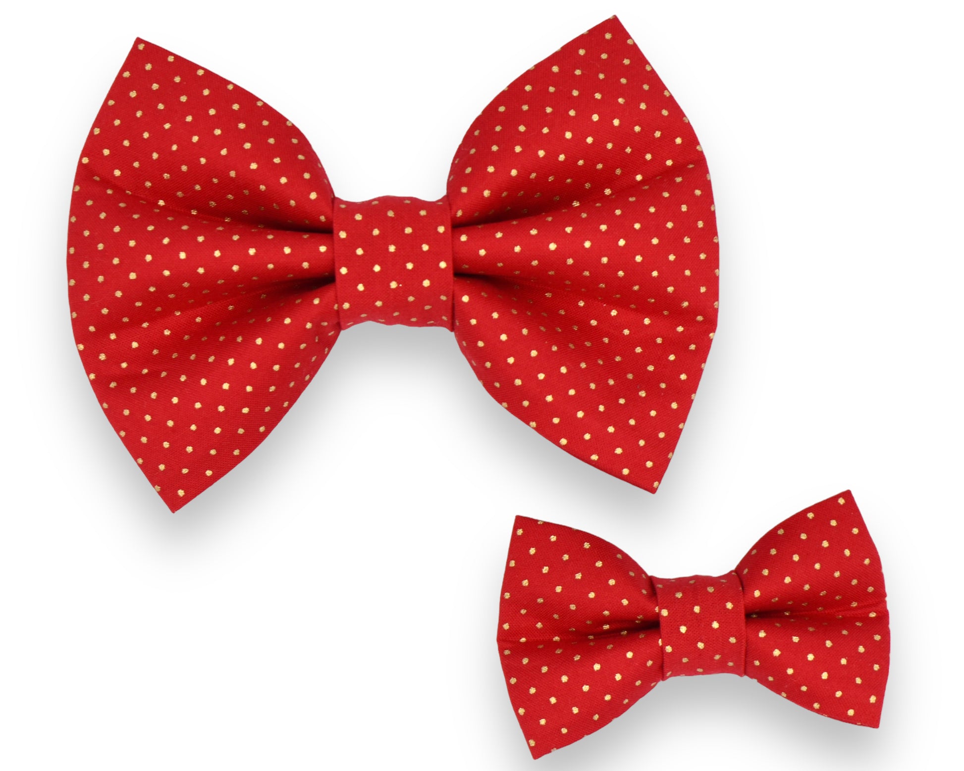 Our original style bow tie! This style features two elastic straps stitched to the backside of the bow tie for your pet’s collar to slide through. The elastic straps are triple-stitched to the bow tie for extra security. This style requires a collar for wear.
