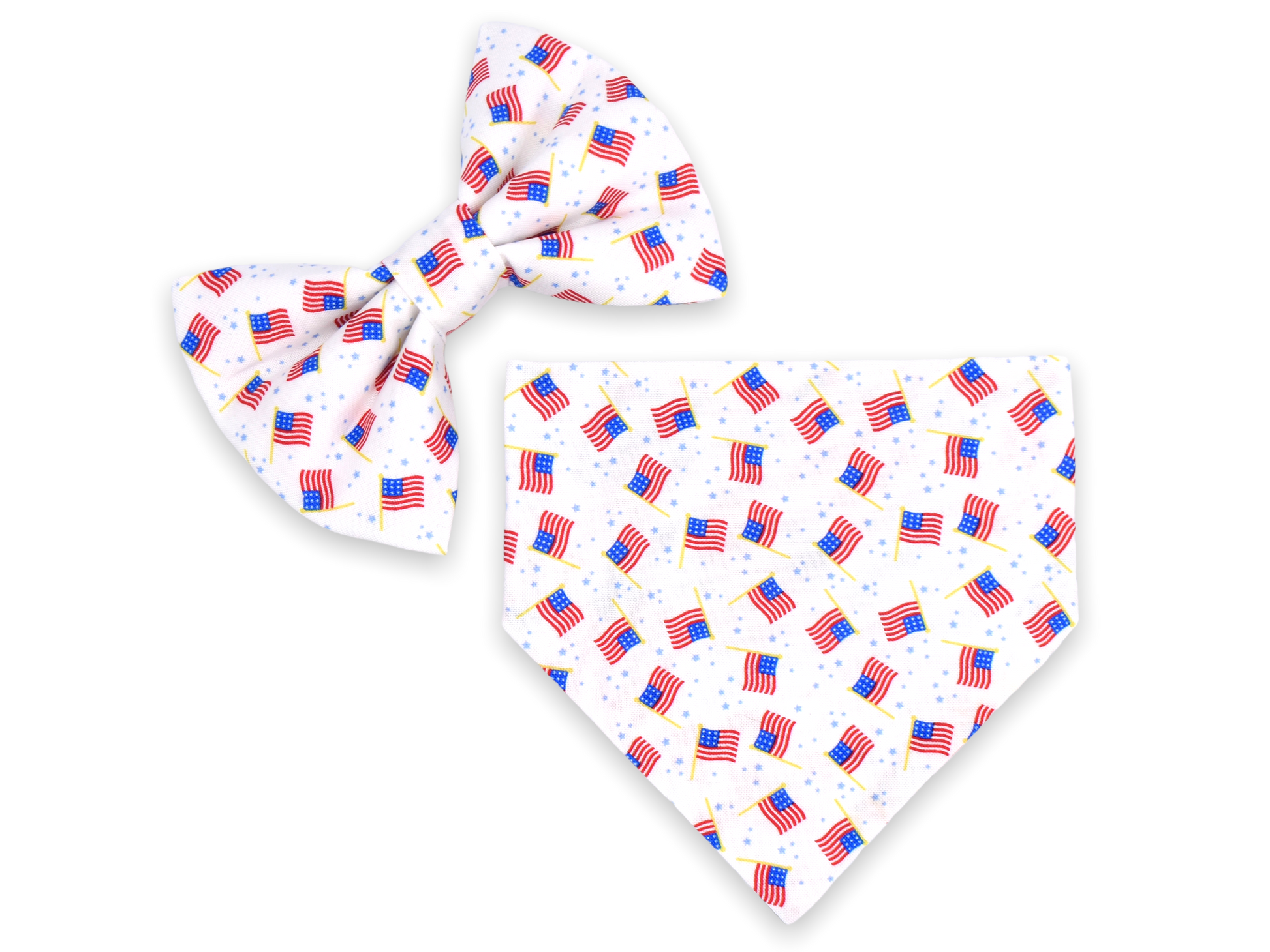 Accessories are not intended for rough wear. Bow ties with elastic collars and scrunchie-style bandanas completely circle your pet’s neck and are not made with a breakaway function. We do not recommend leaving your pet unsupervised while wearing any accessory. Spot clean mild detergent and lay flat to dry. If ironing, cover with thin cloth and use low heat and pressure.